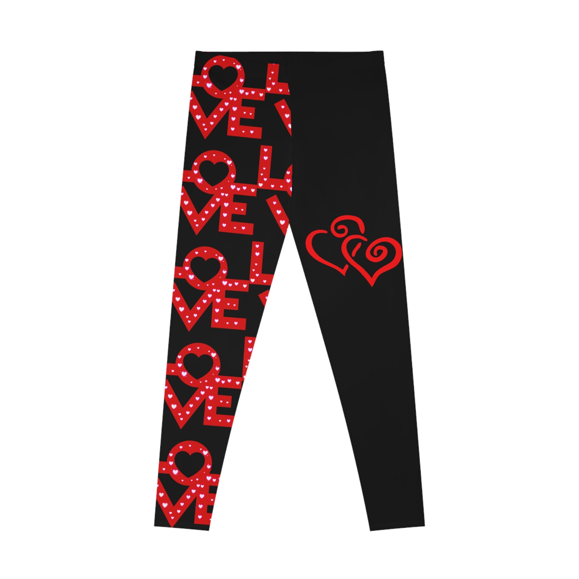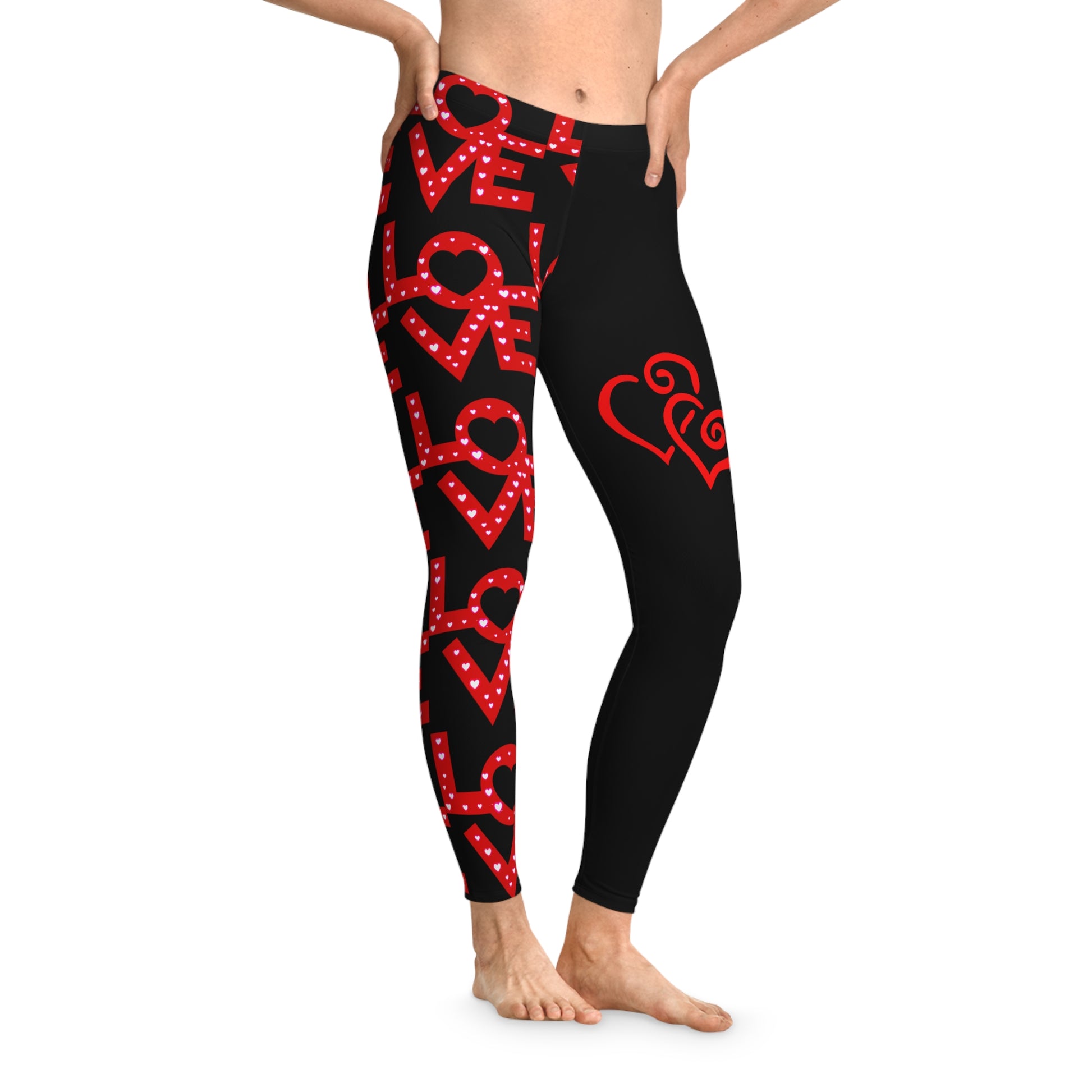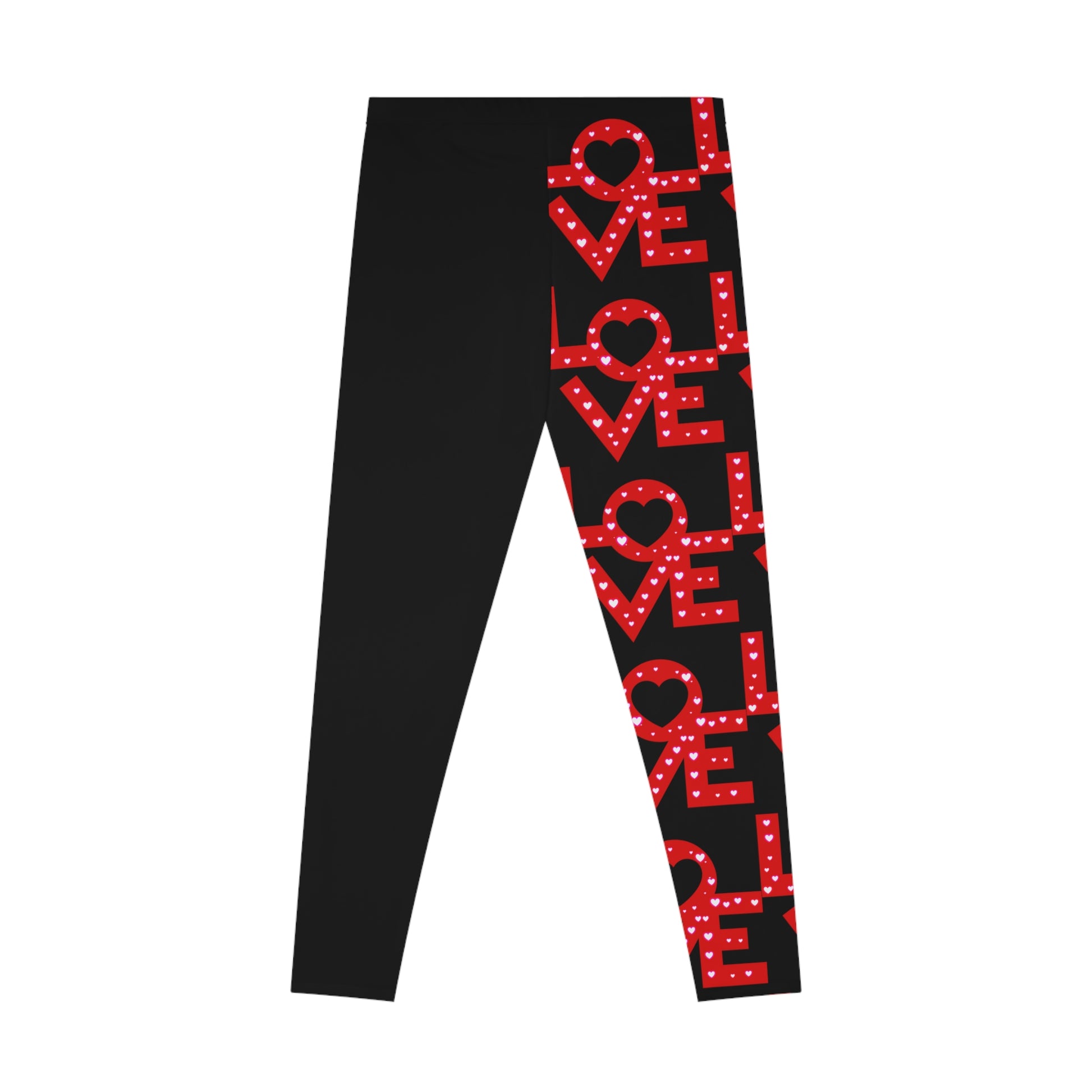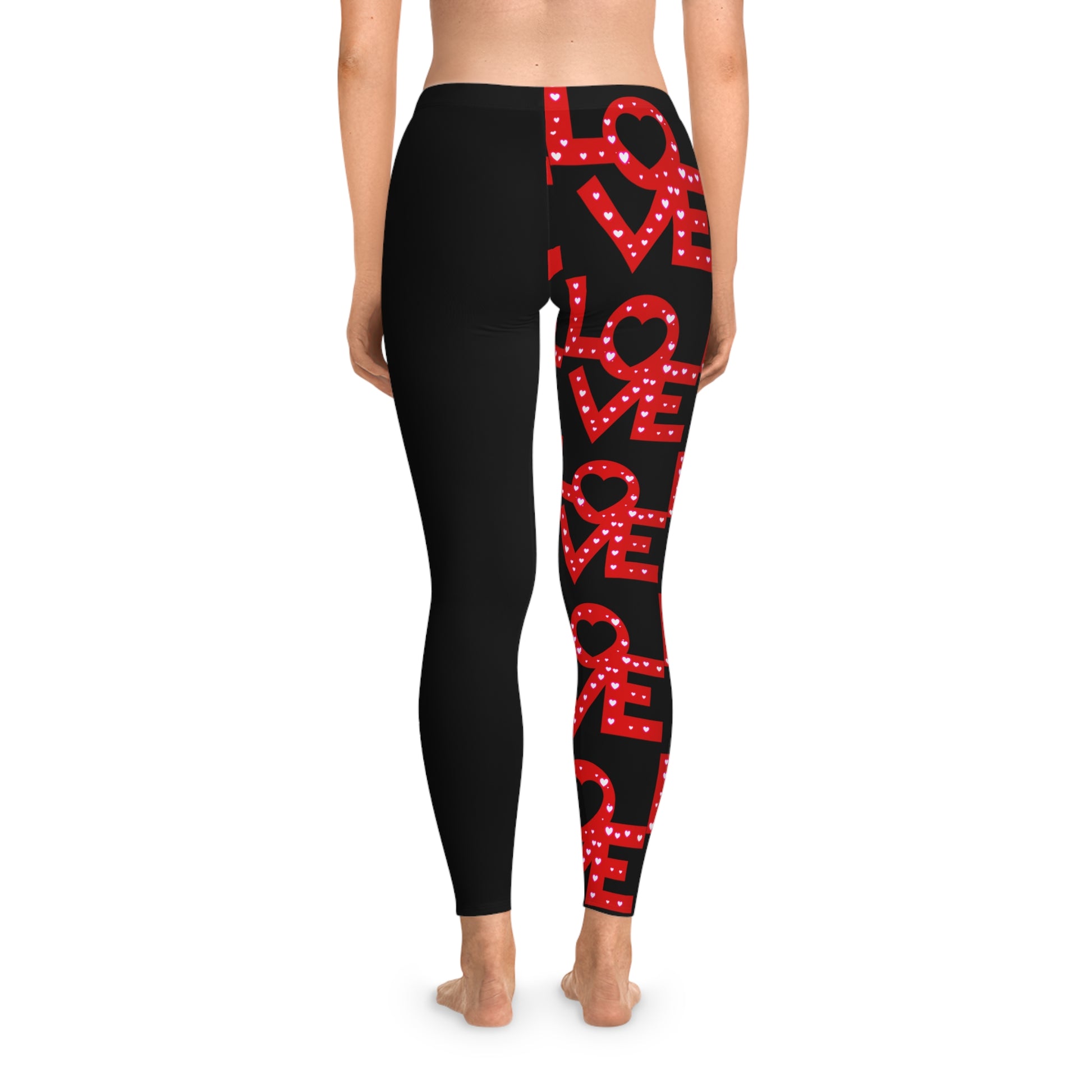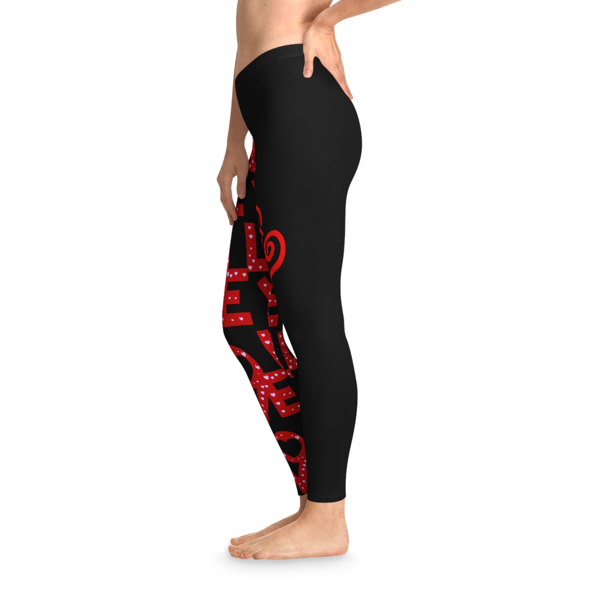 Love, Stretchy Leggings, Valentines Day Gift, Gift For Her, Black Leggings
