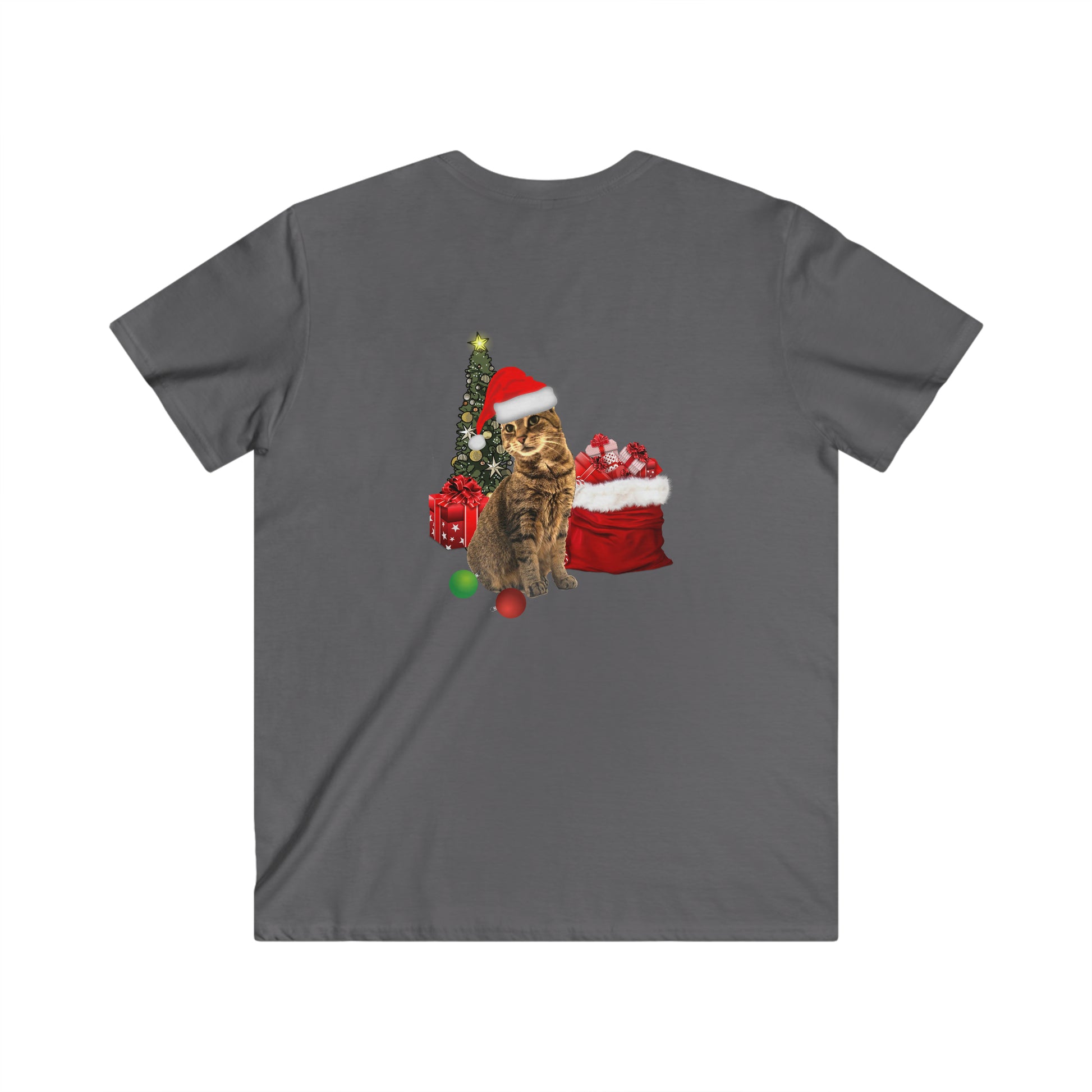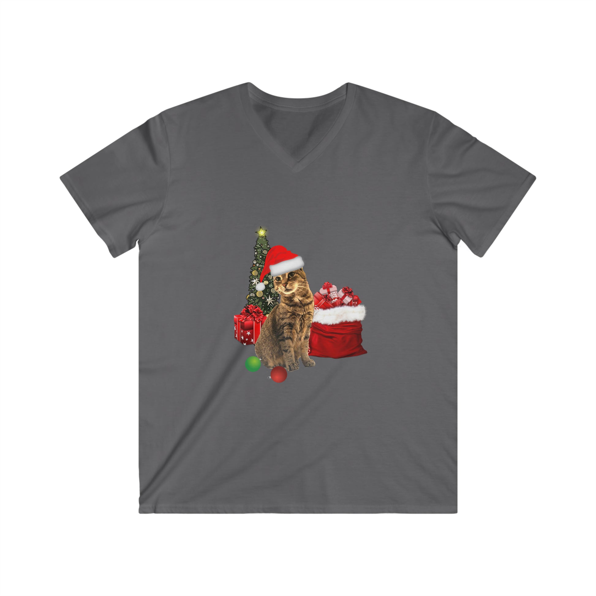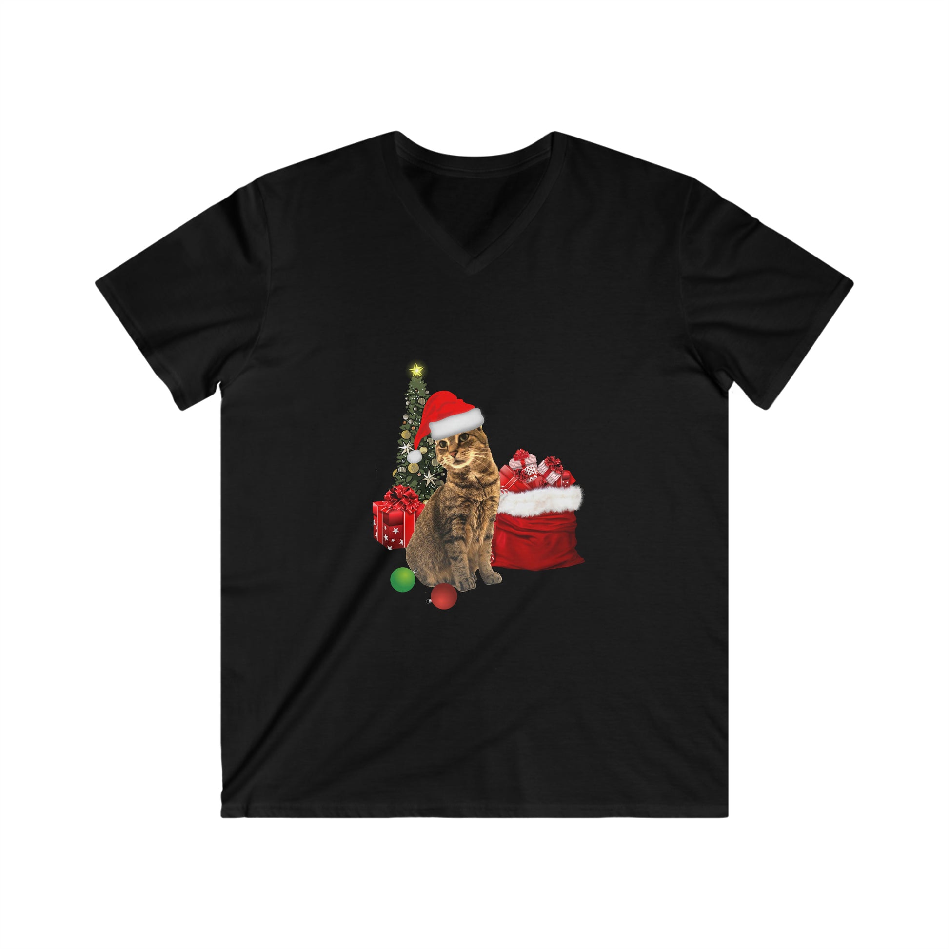 Men's Fitted V-Neck Short Sleeve Tee Christmas Cat Christmas Top