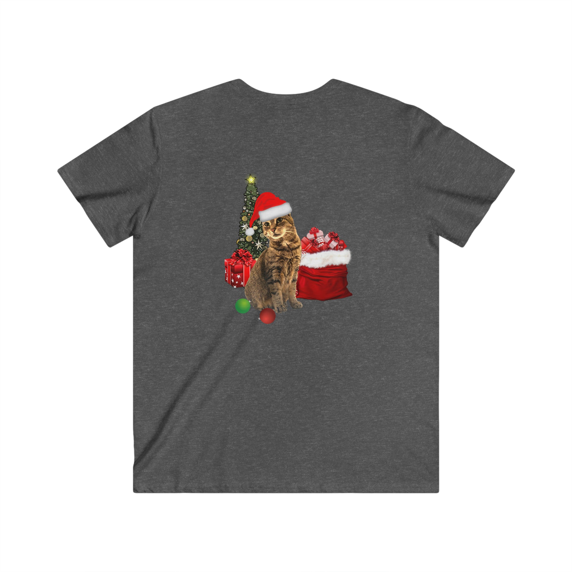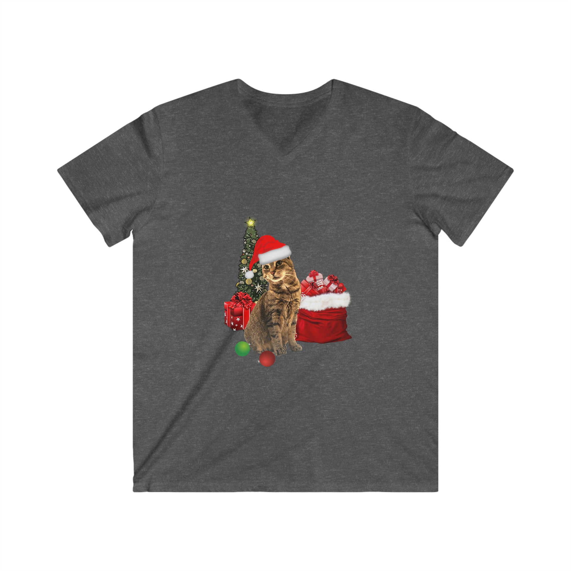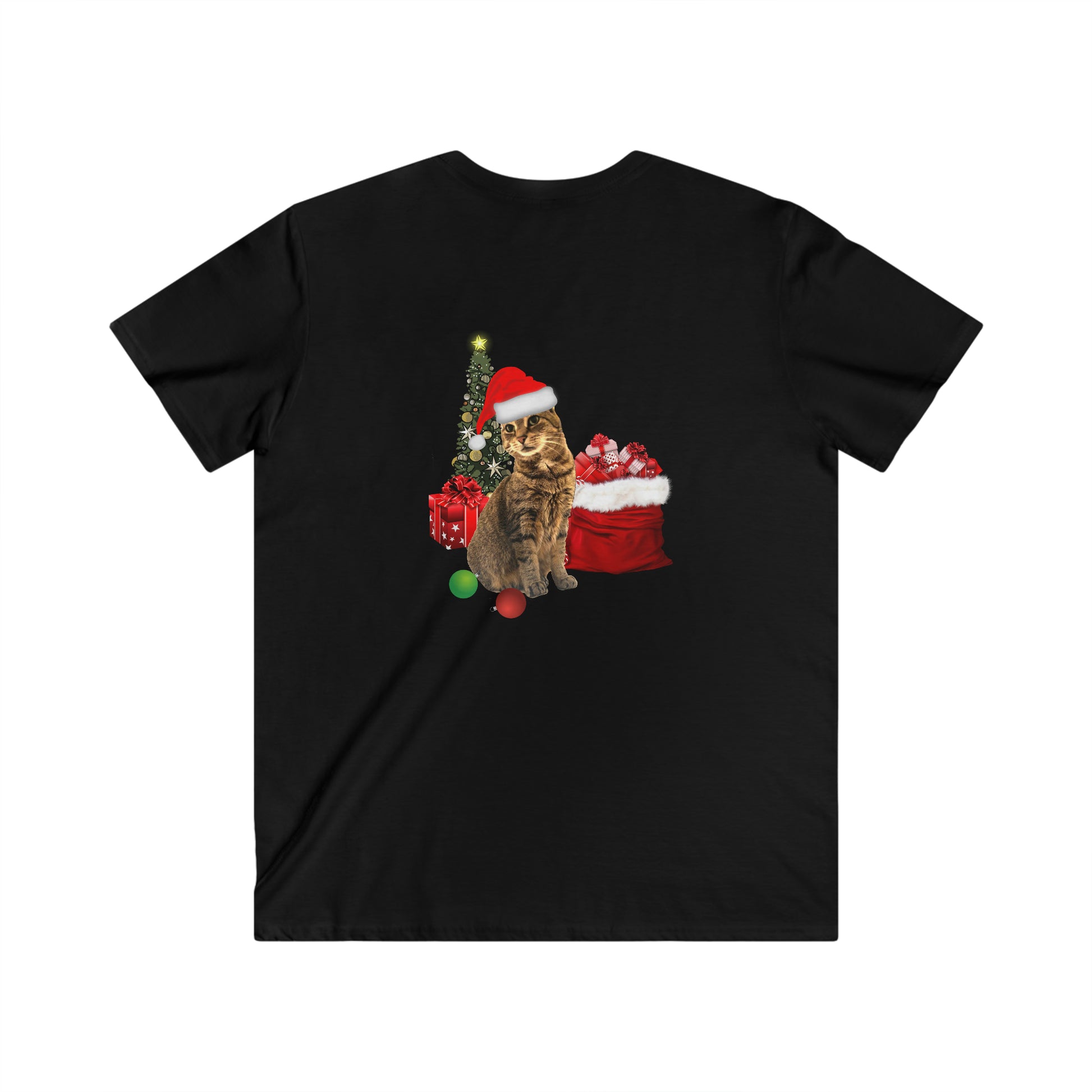 Men's Fitted V-Neck Short Sleeve Tee Christmas Cat Christmas Top