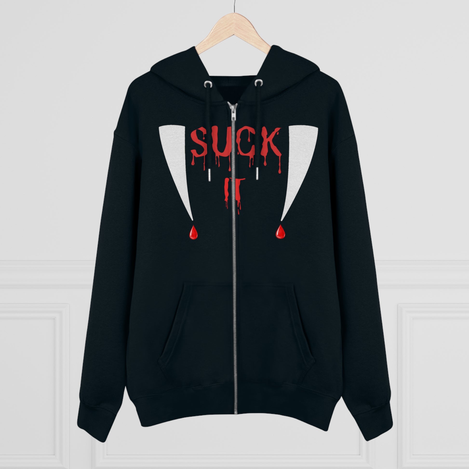 Men's Suck It Vampire Fangs Halloween Zip Up Hoodie