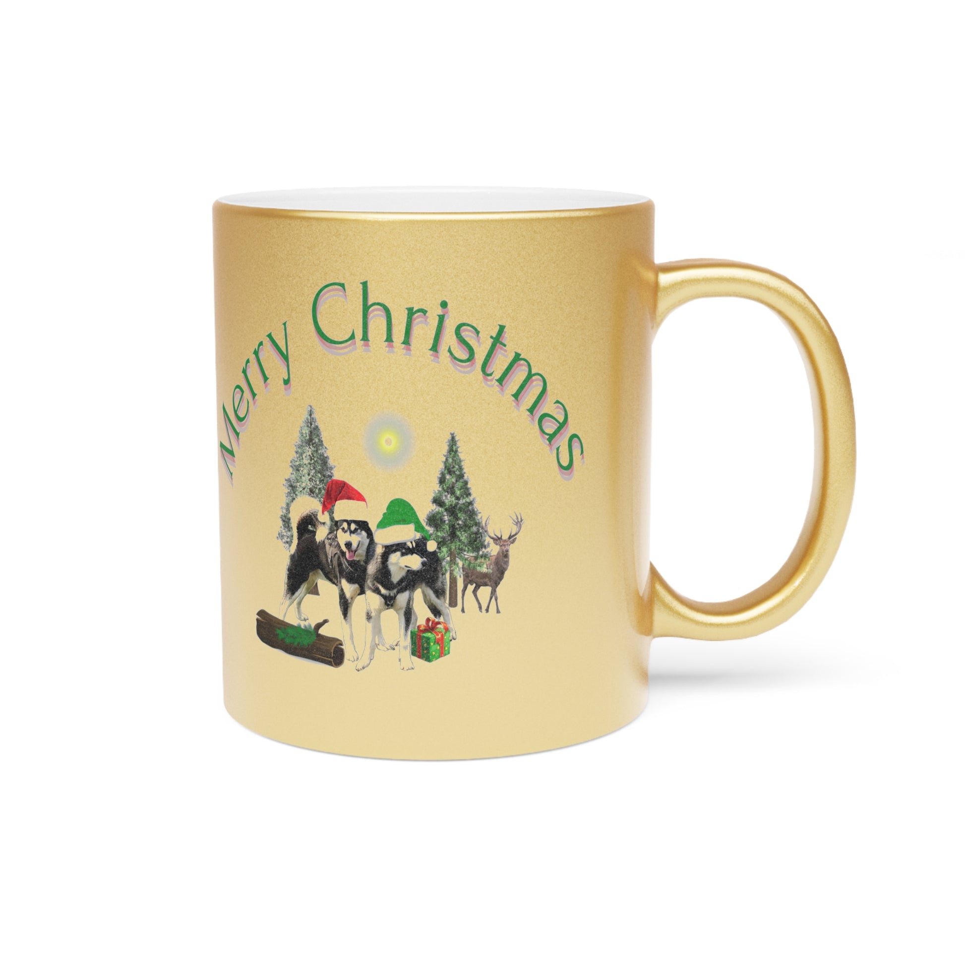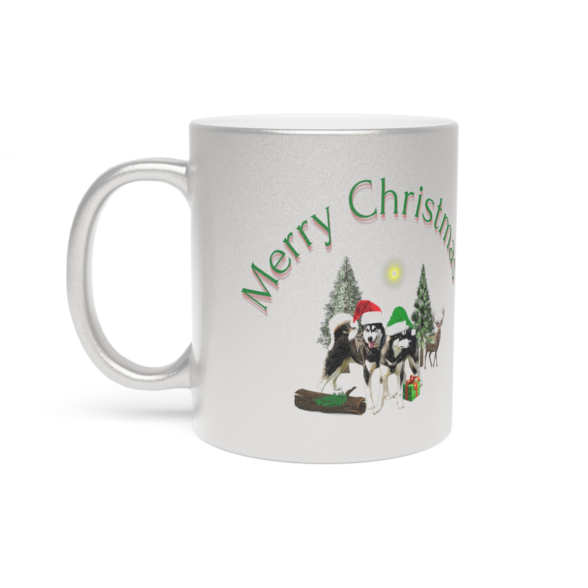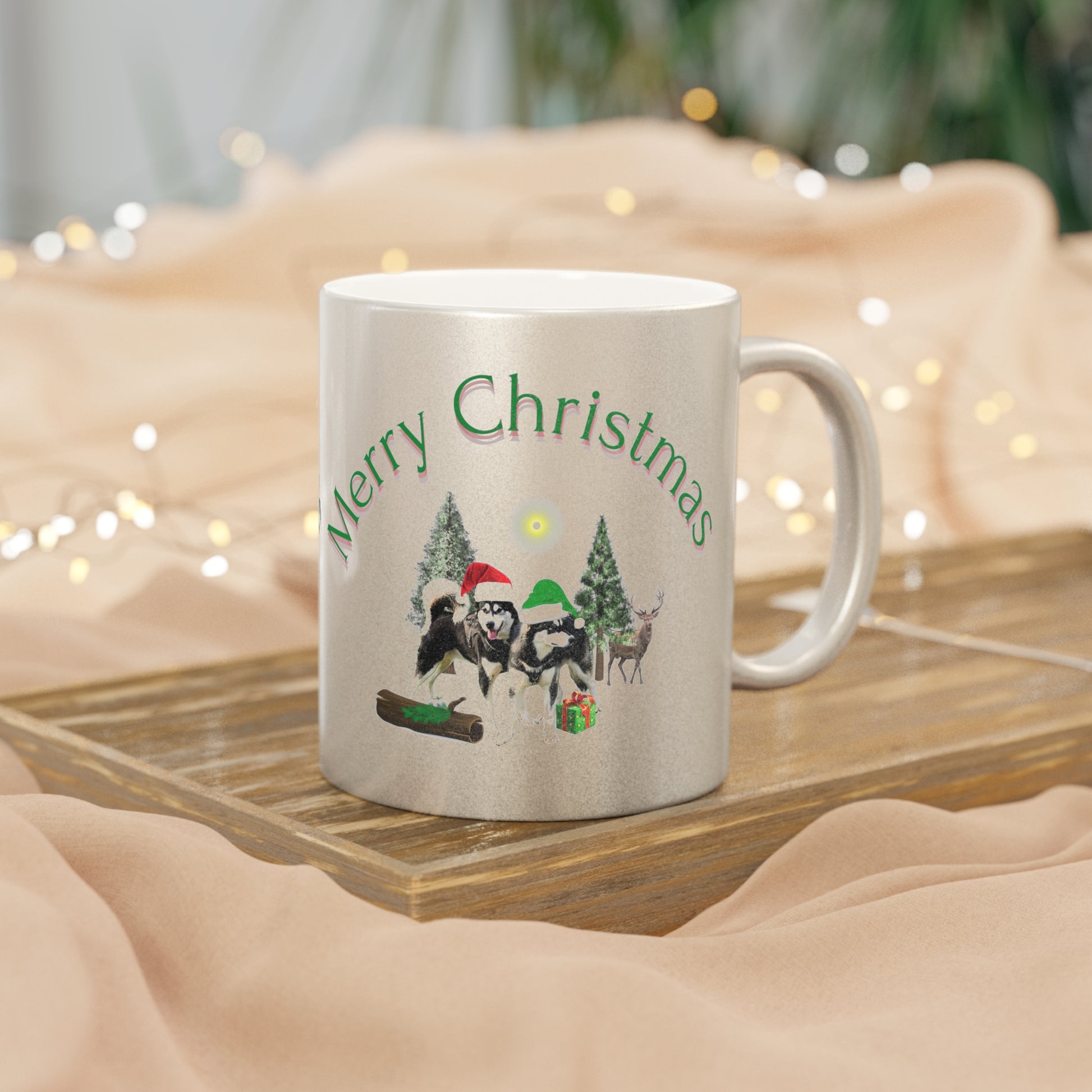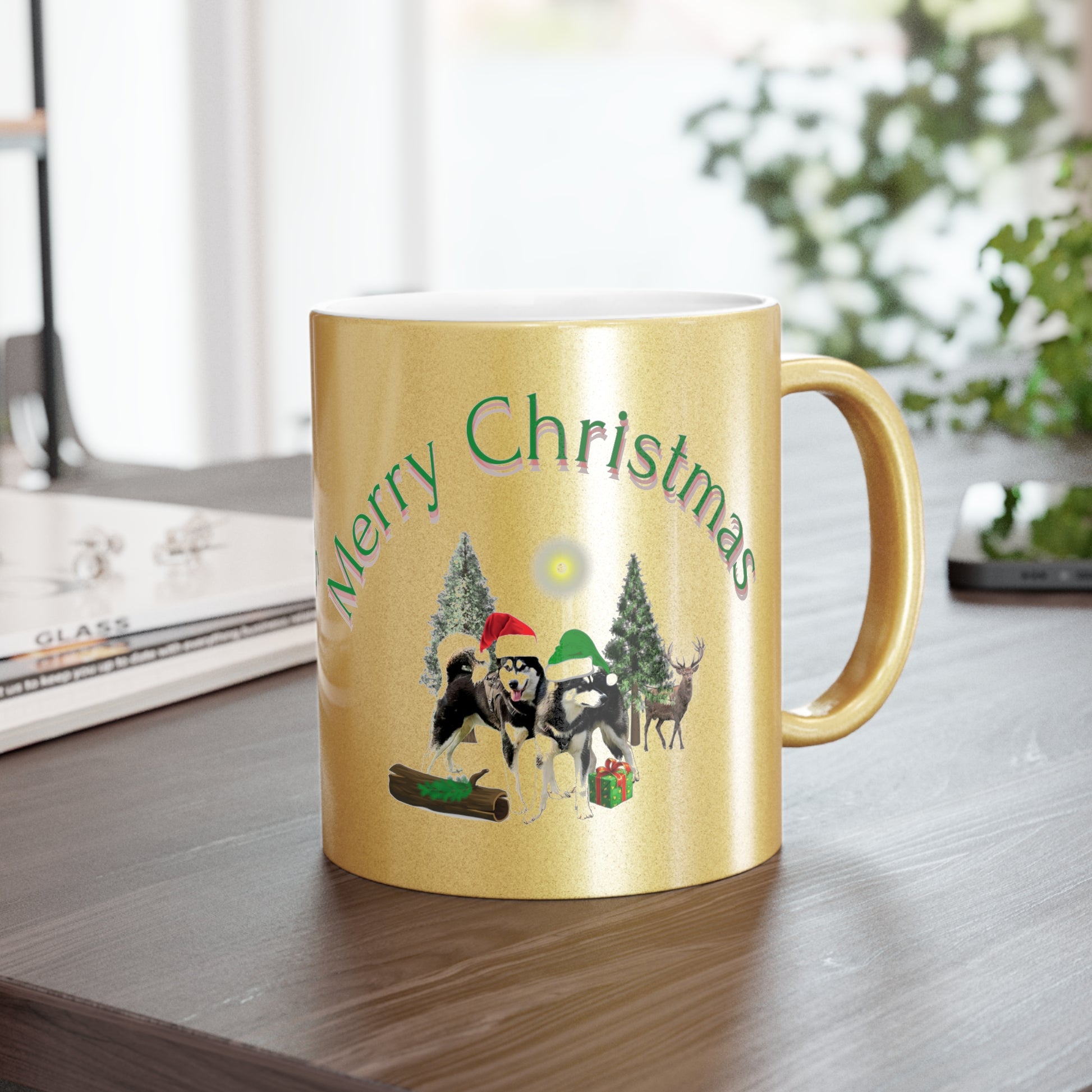 Merry Christmas Malamutes Metallic Mug (Silver\Gold)