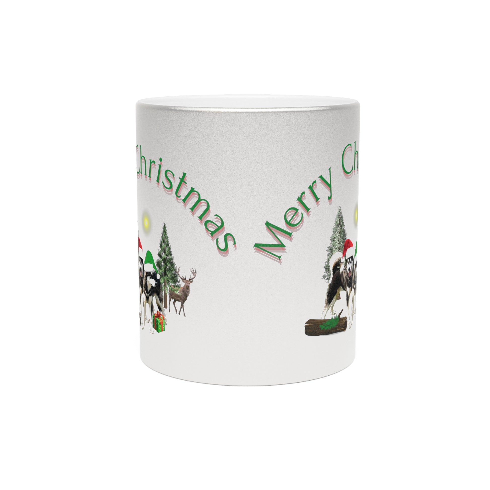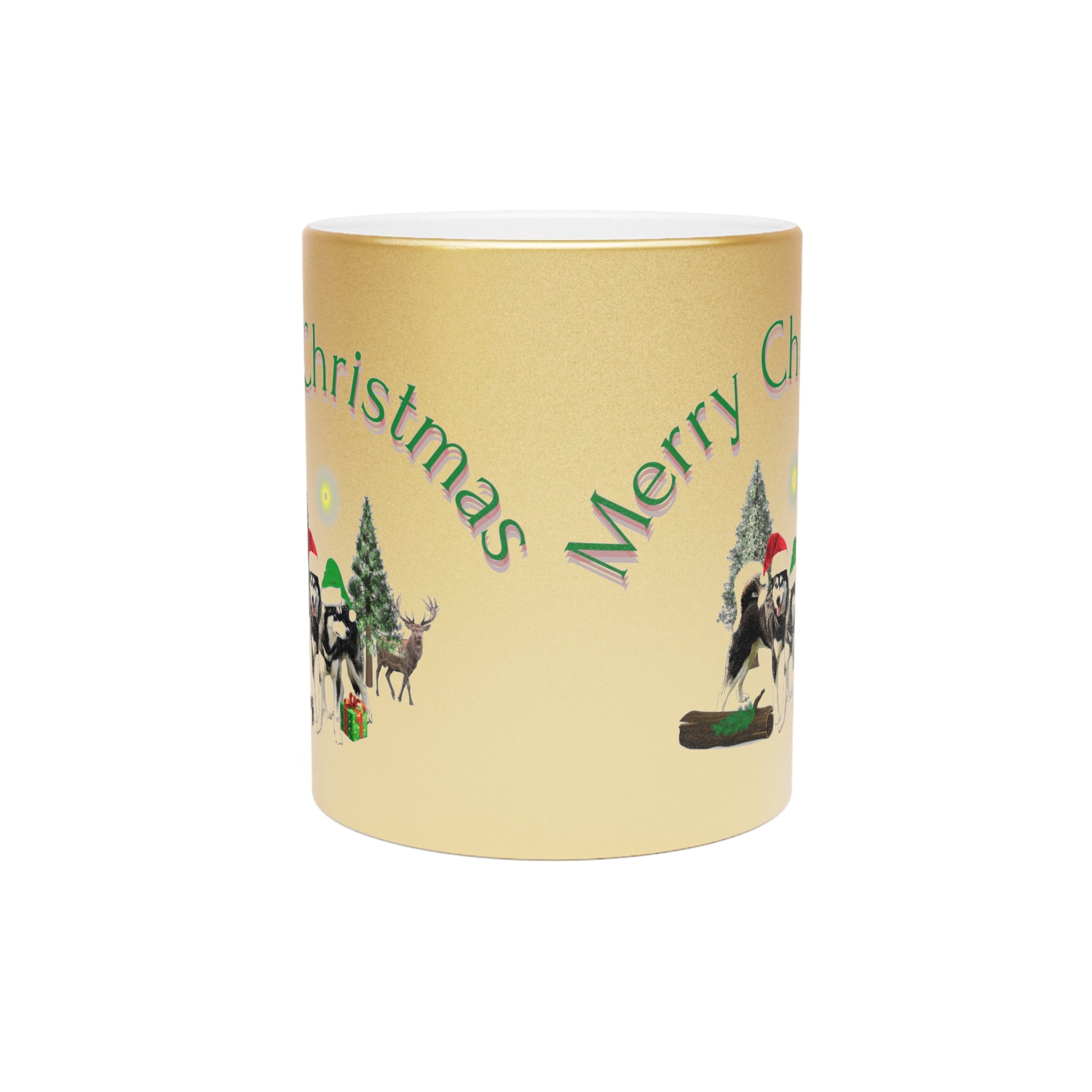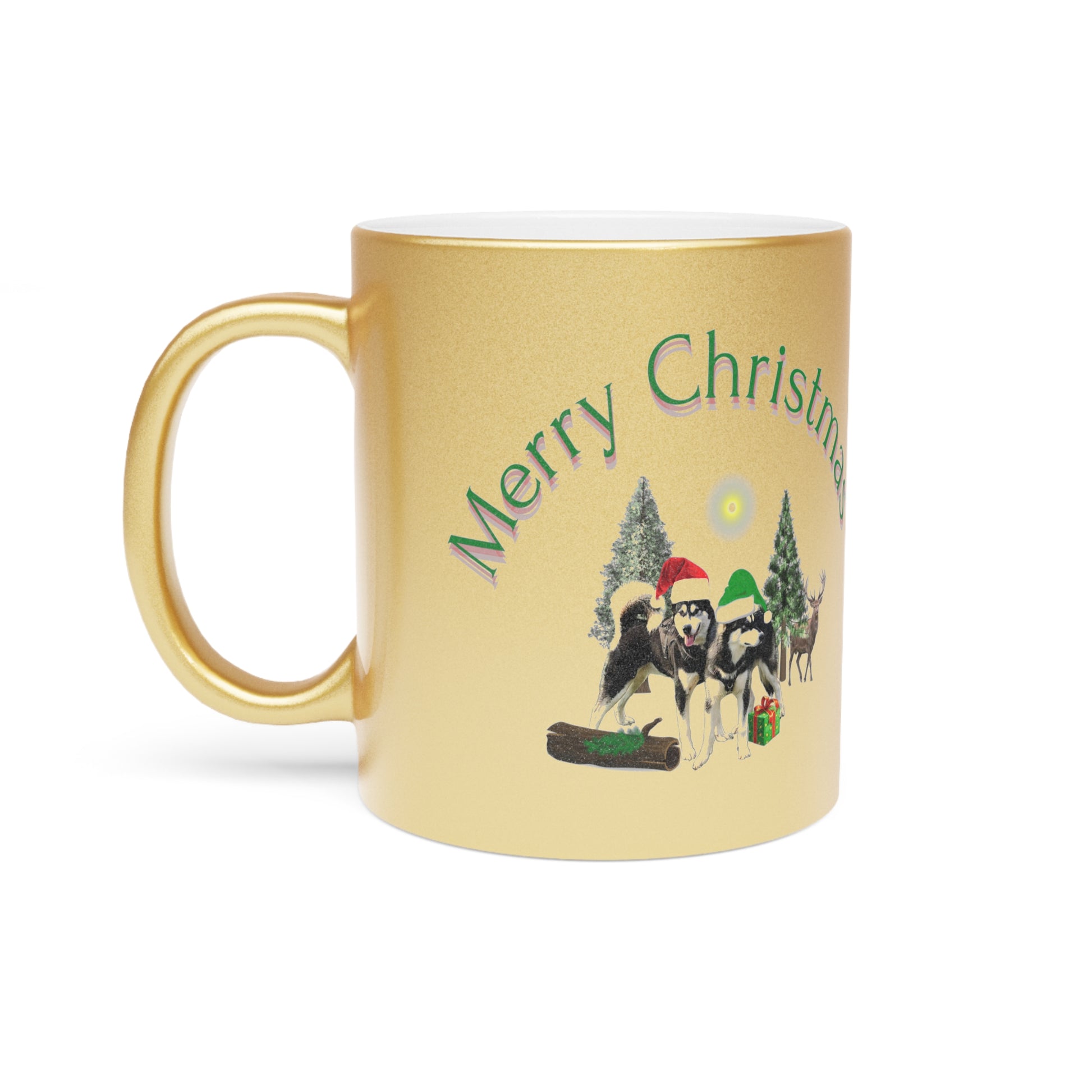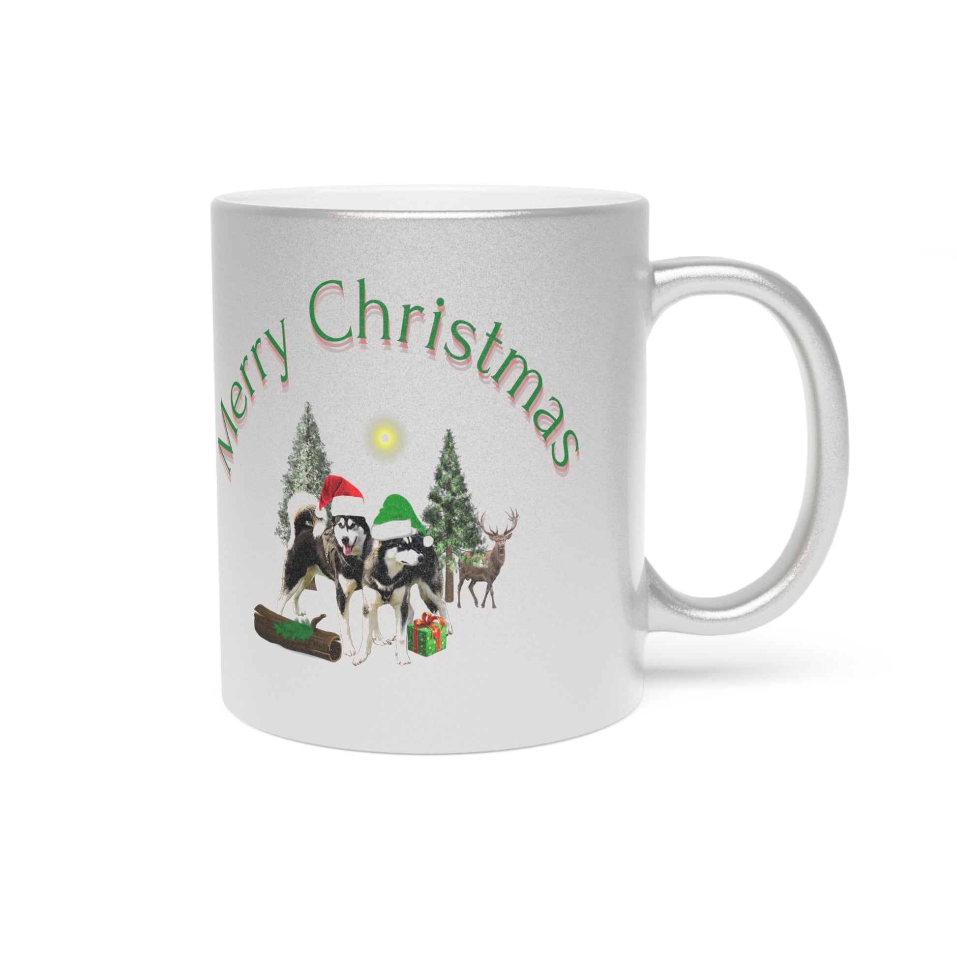 Merry Christmas Malamutes Metallic Mug (Silver\Gold)