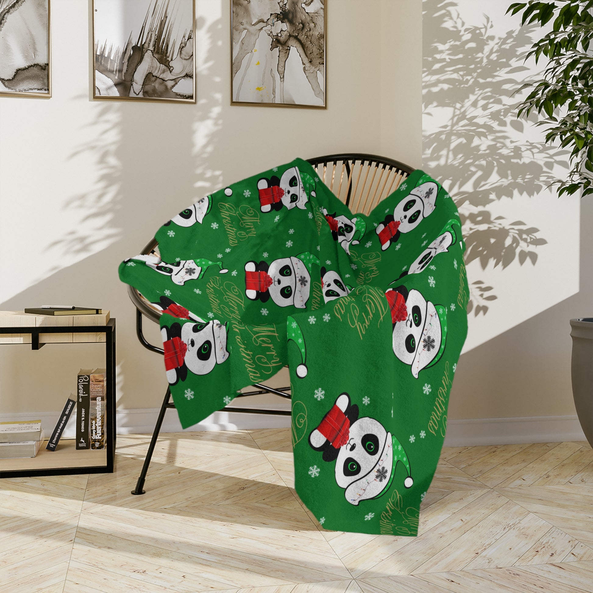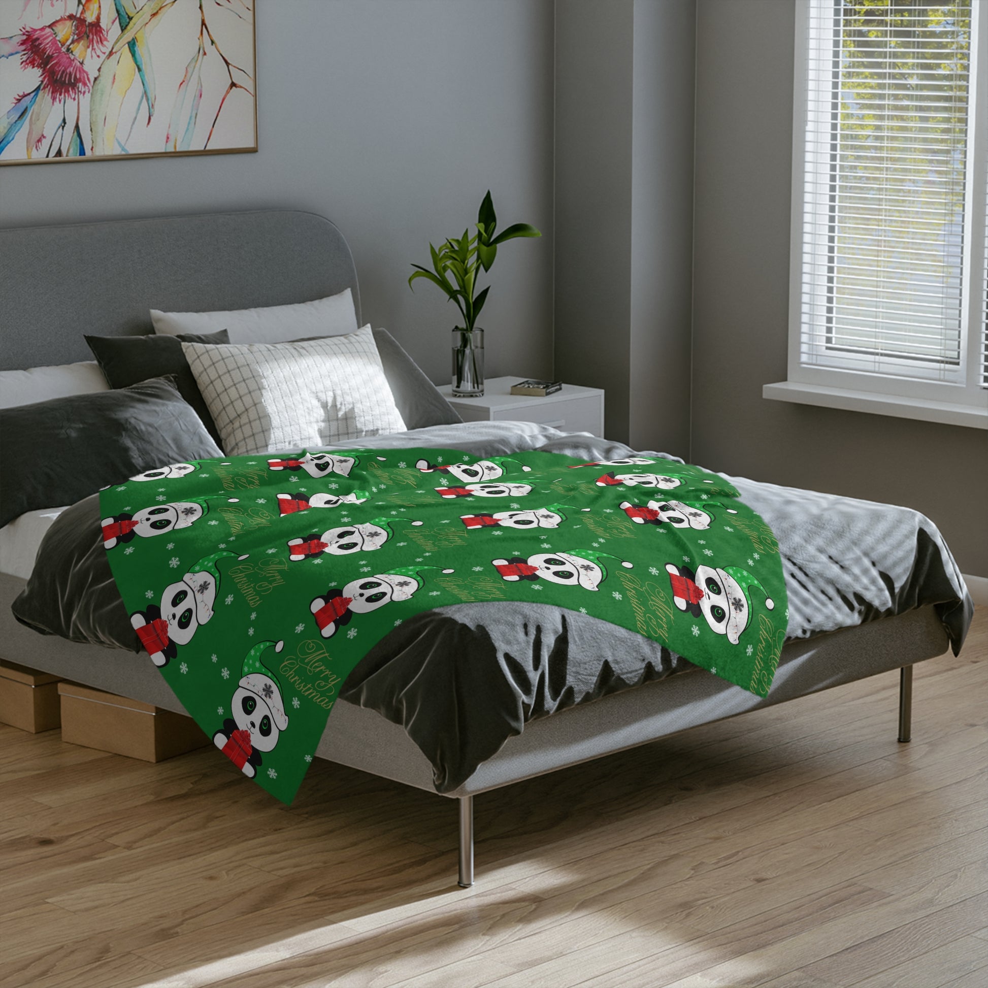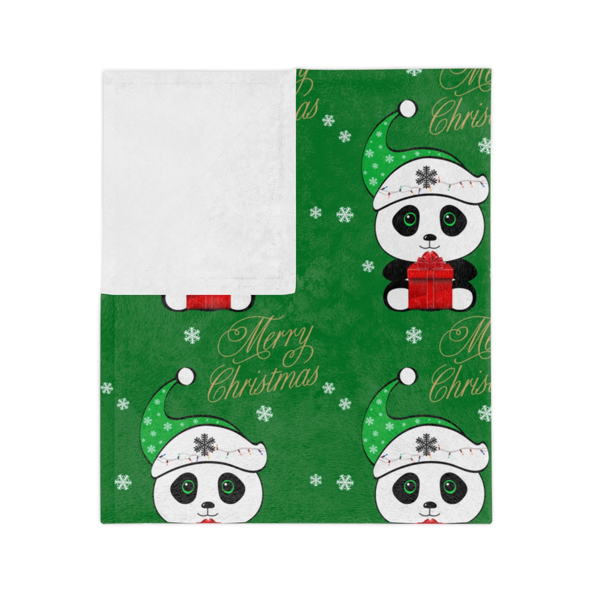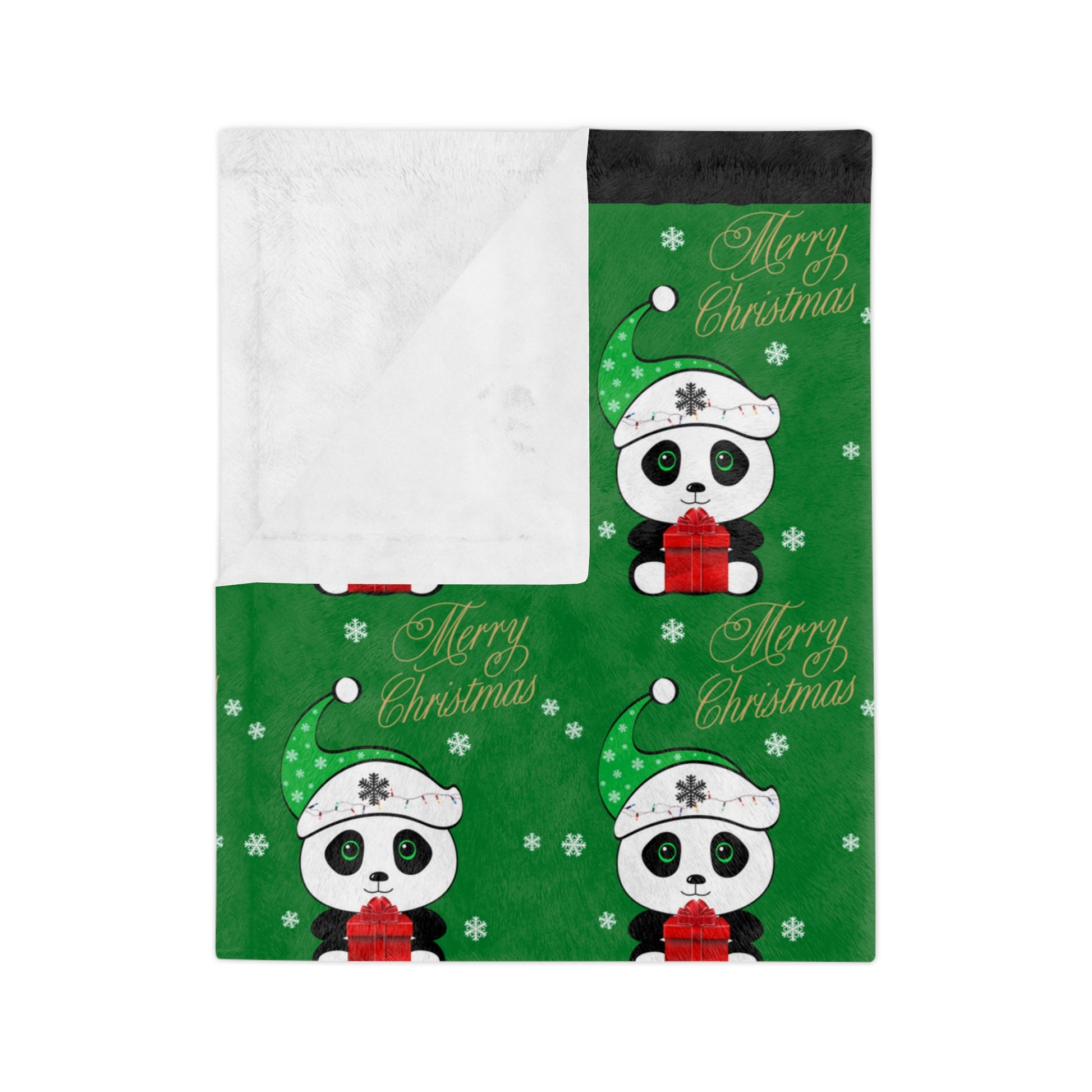 Merry Christmas Panda Velveteen Minky Blanket