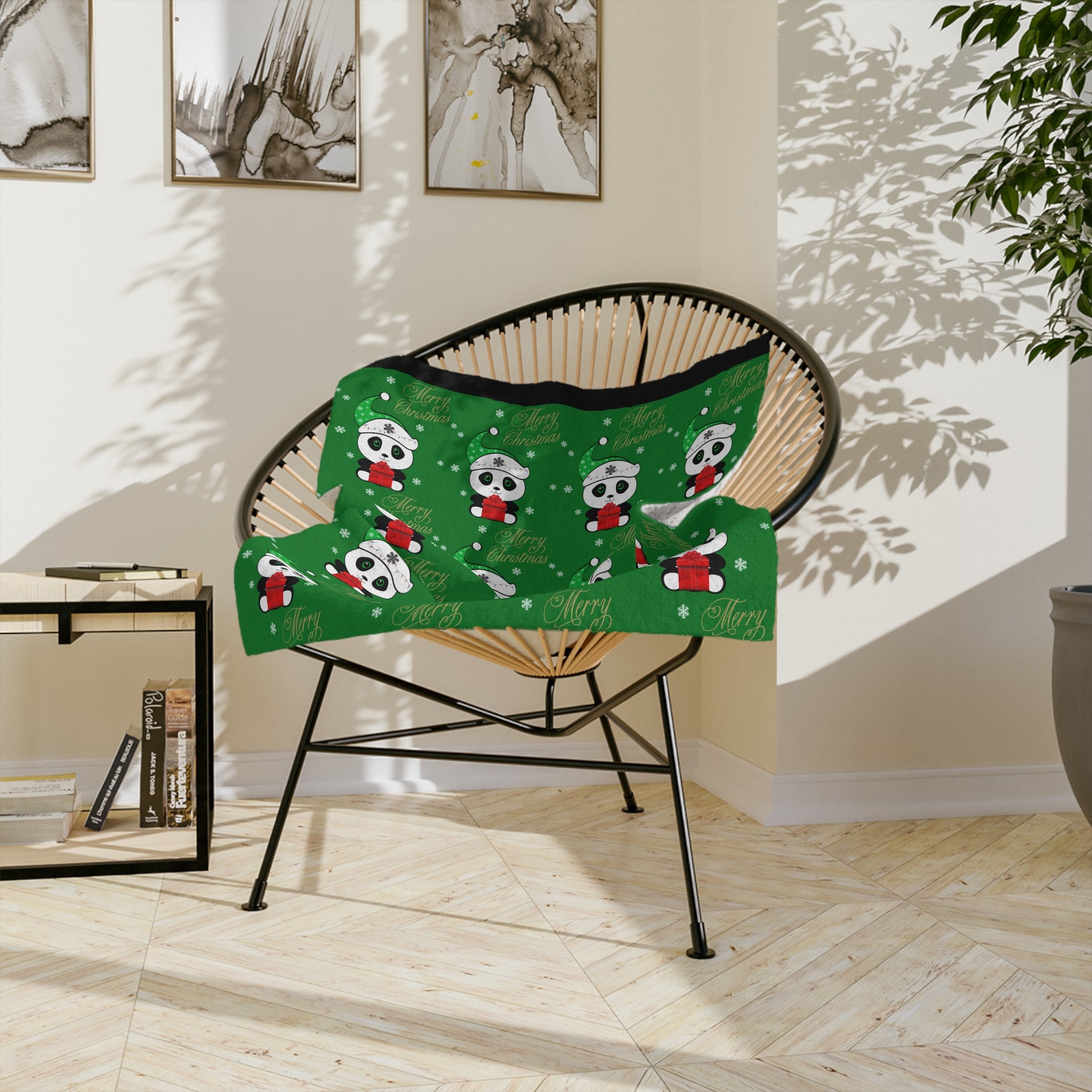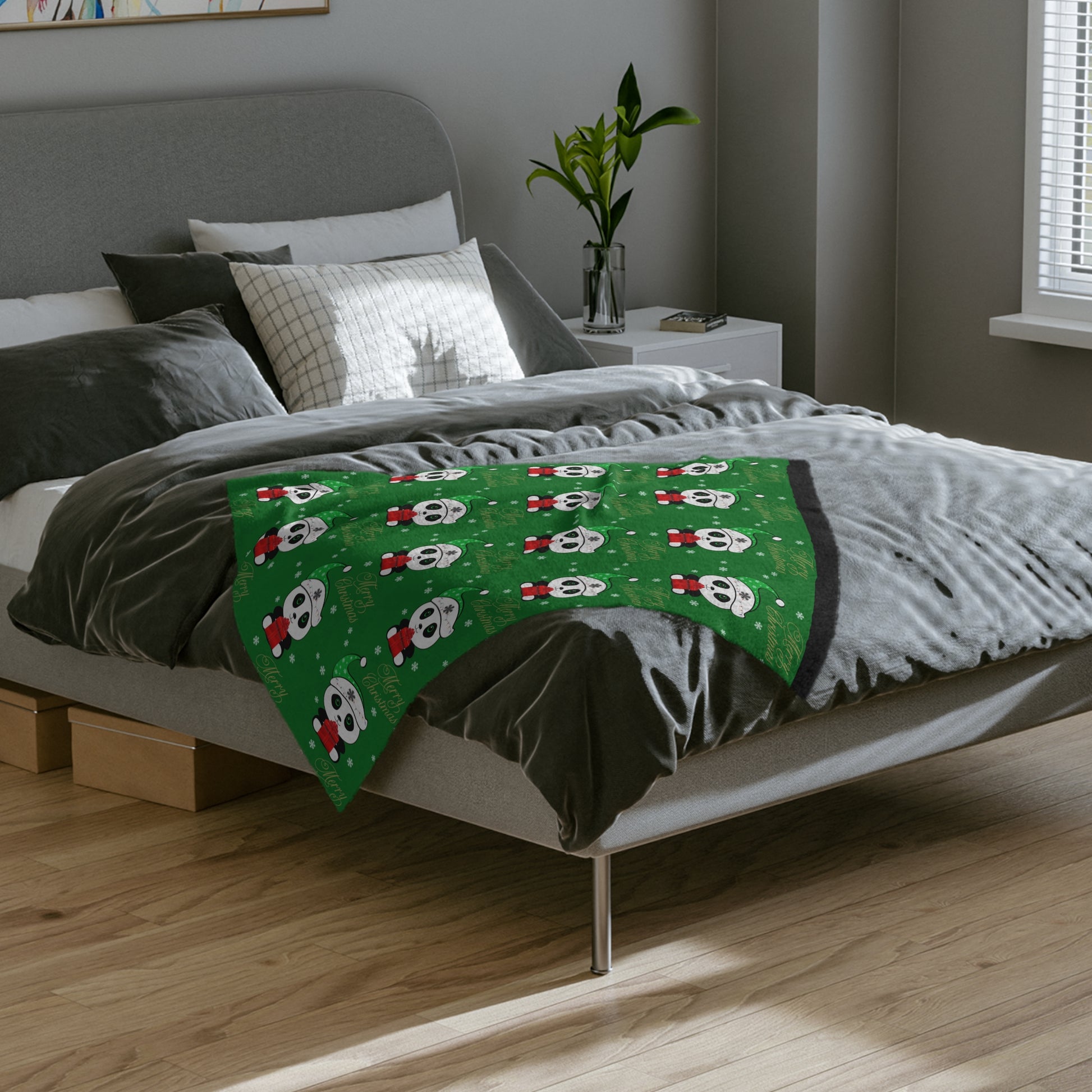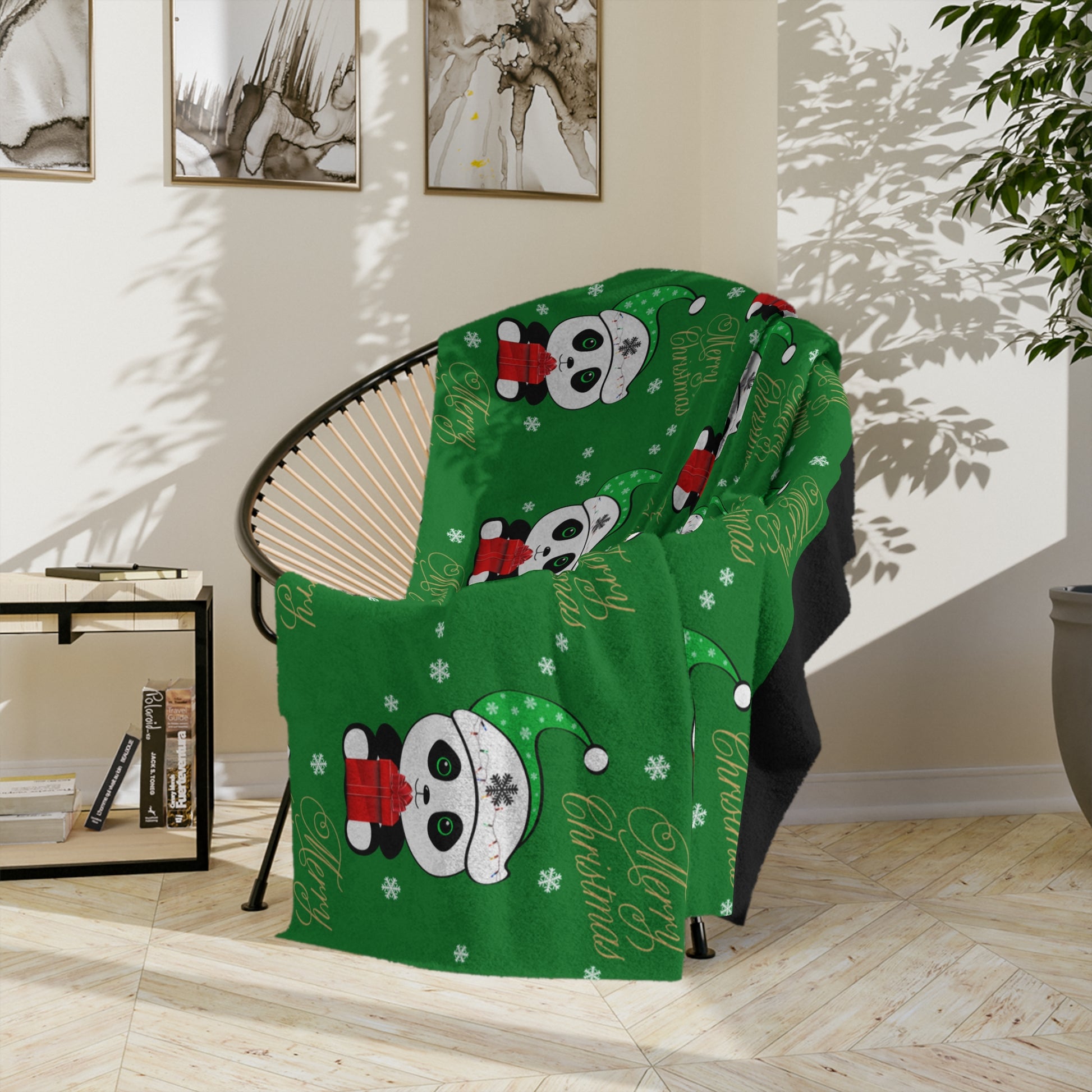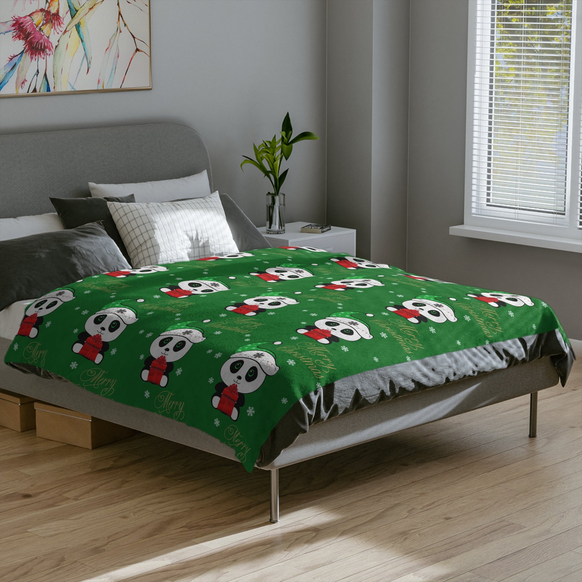 Merry Christmas Panda Velveteen Minky Blanket