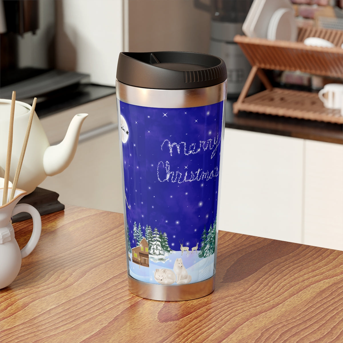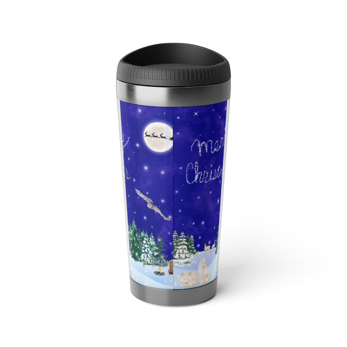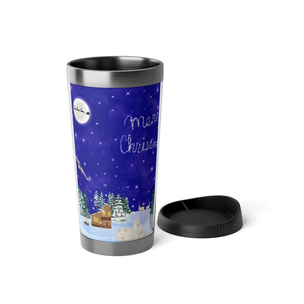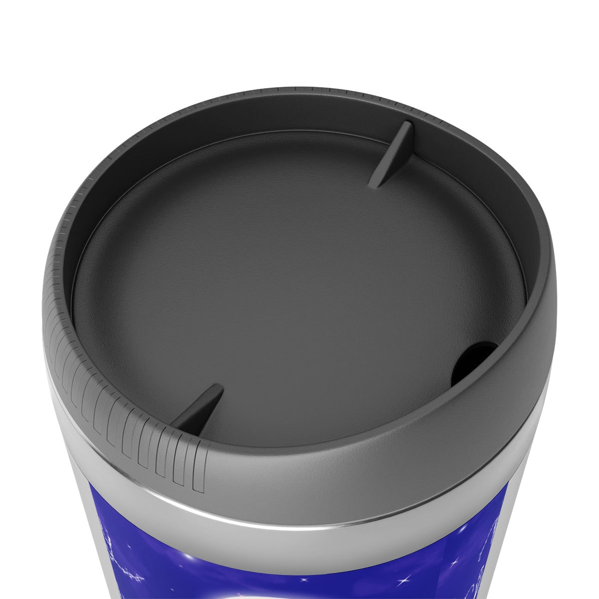 These mugs are perfect for those who love drinking their beverages on the go and want to reduce the waste produced by disposable cups. Your designs will be printed on the paper insert between the stainless steel interior and plastic exterior. They come in one size –18oz – which will hold a strong cup of joe or anything else the tastebuds desire. Secure it with the plastic lid. Hand-wash only.