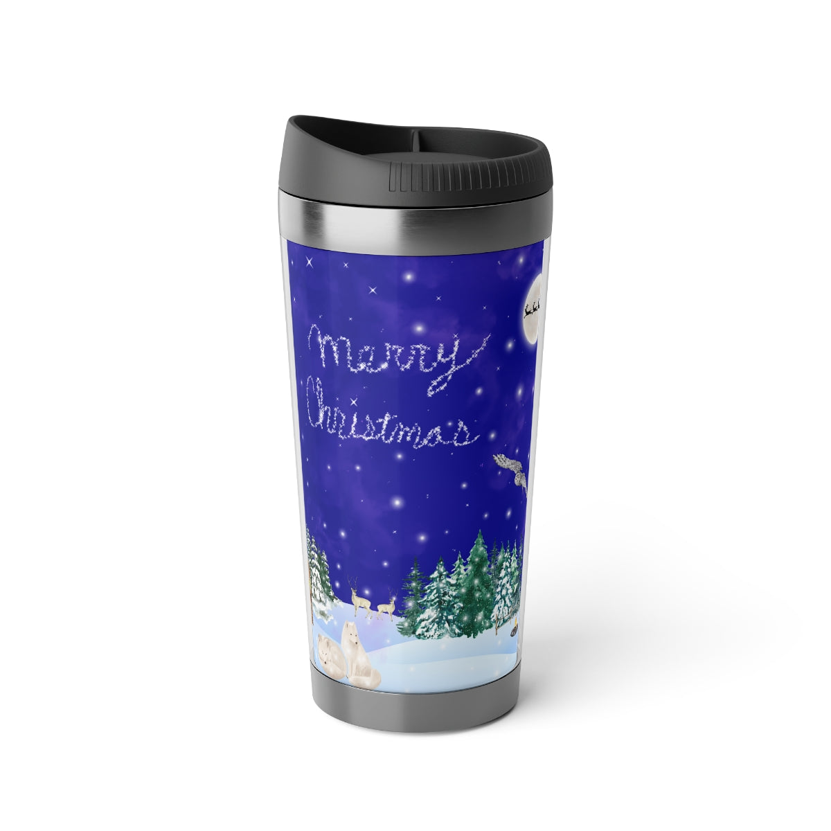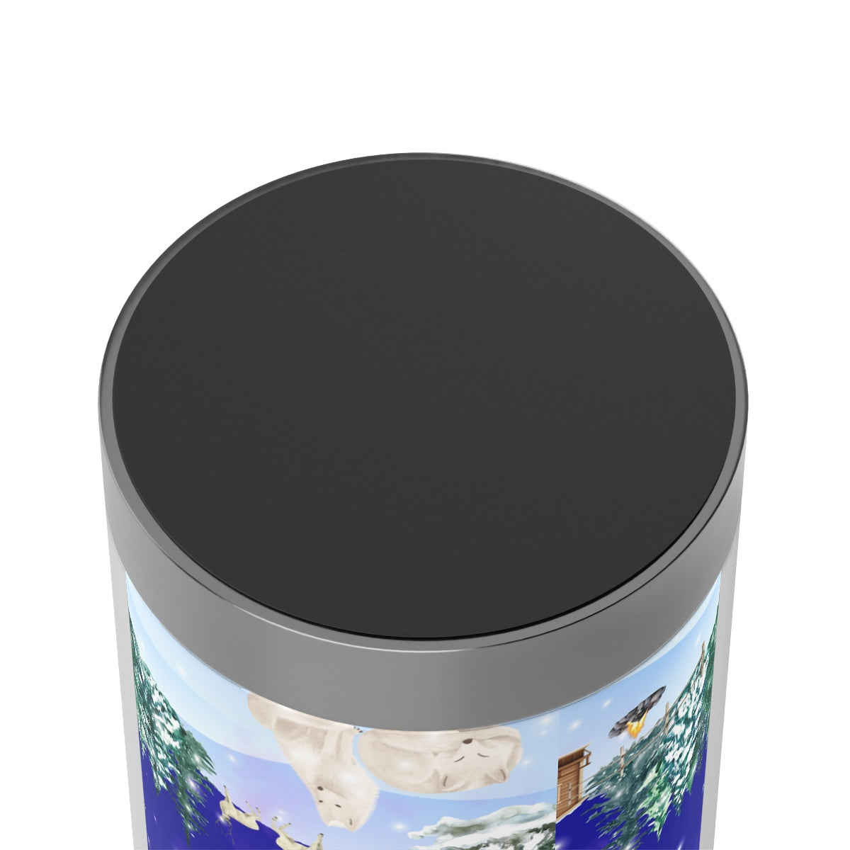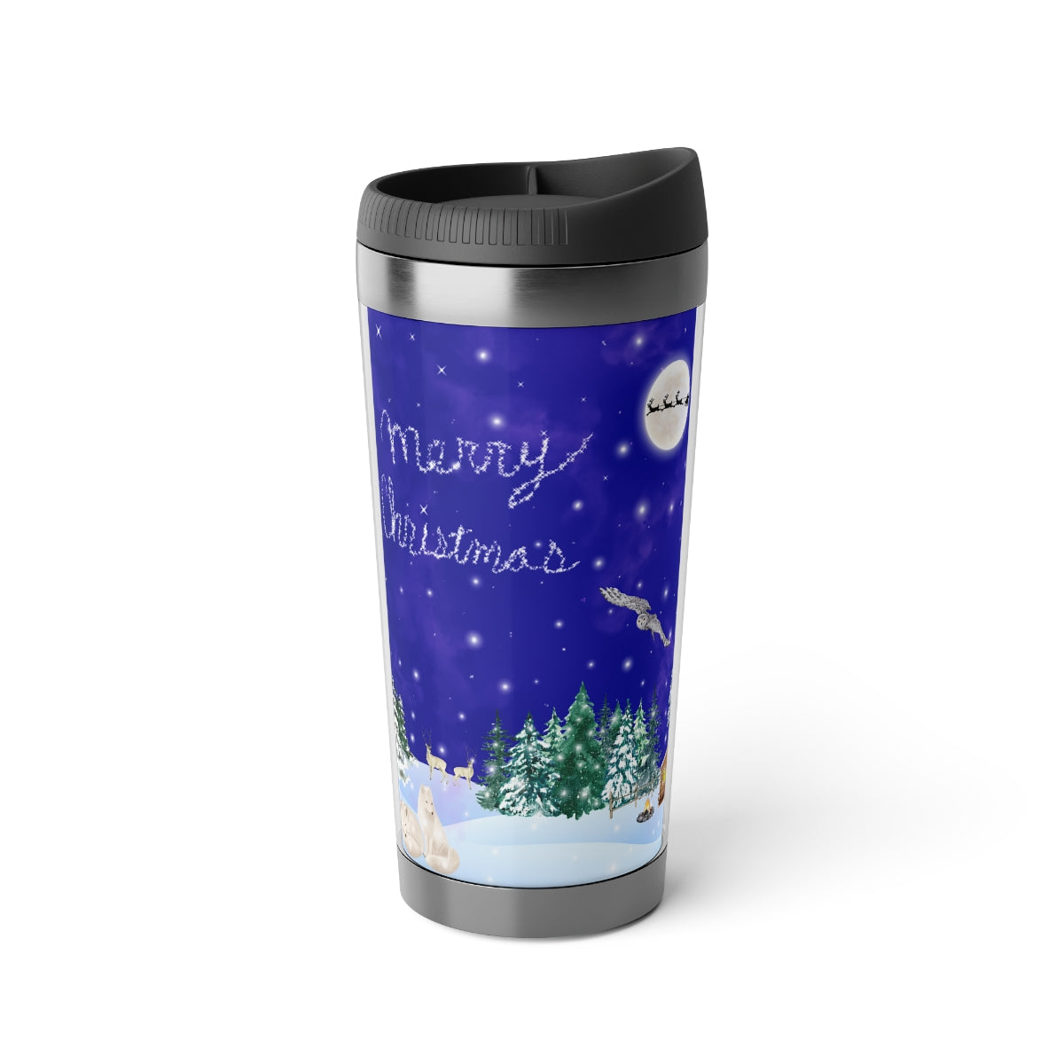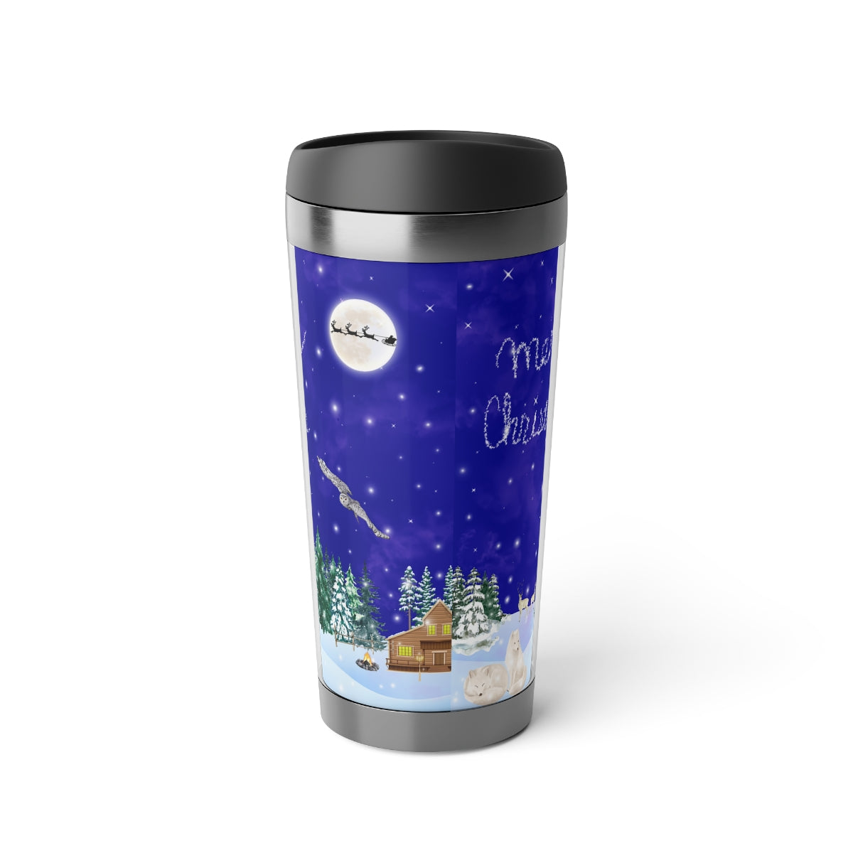These mugs are perfect for those who love drinking their beverages on the go and want to reduce the waste produced by disposable cups. Your designs will be printed on the paper insert between the stainless steel interior and plastic exterior. They come in one size –18oz – which will hold a strong cup of joe or anything else the tastebuds desire. Secure it with the plastic lid. Hand-wash only.