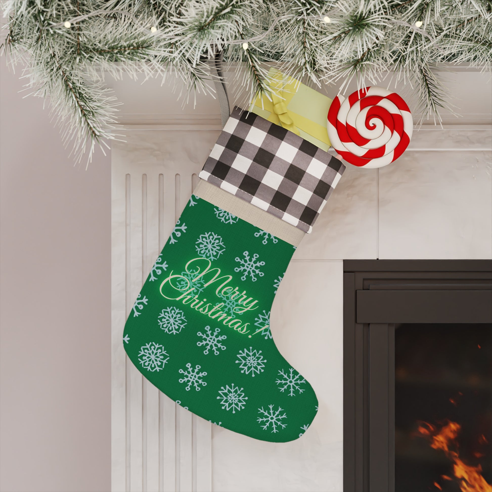 Take the favorite tradition of gift-giving this Christmas to the next level with these Christmas stockings. This burlap Christmas stocking adds a personalized touch to any tree, fireplace, or stair railing. Let this personalized burlap Christmas stocking be filled with candy, treats and small gifts.
