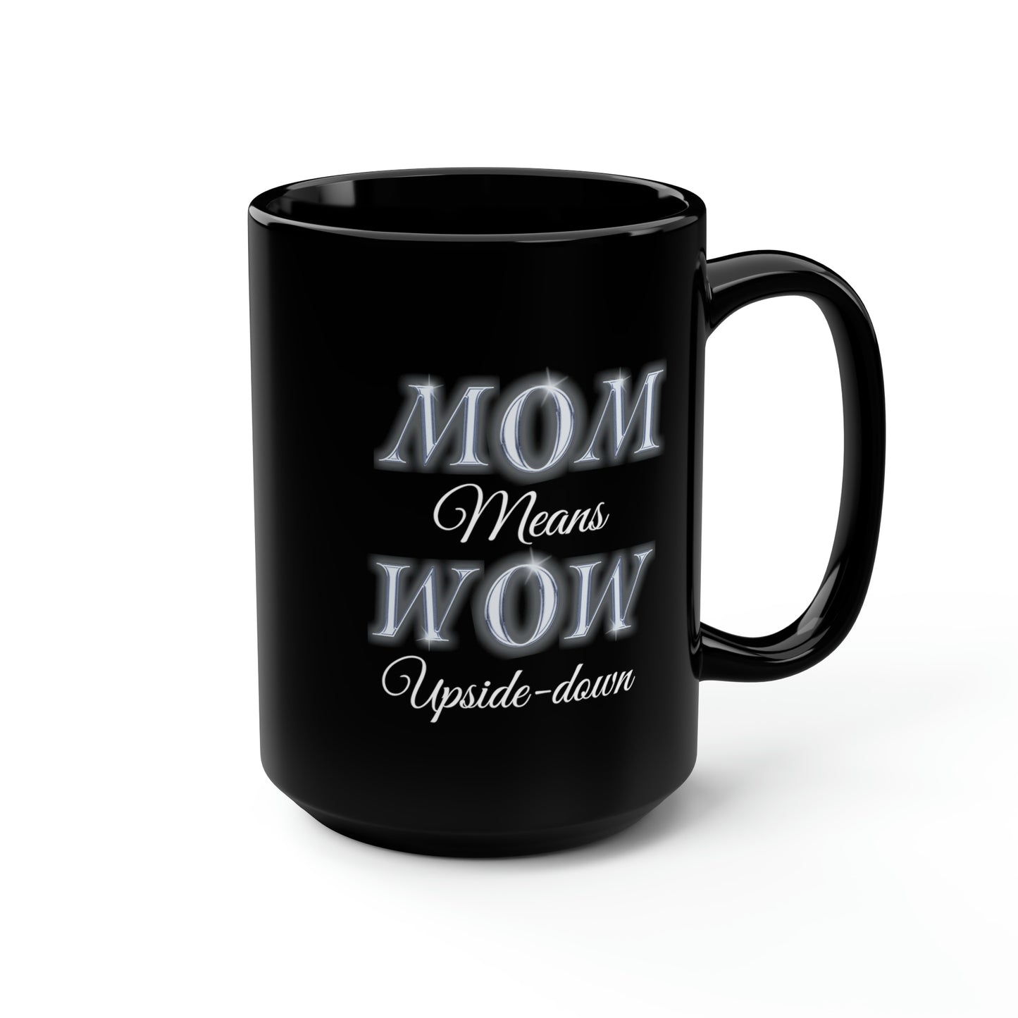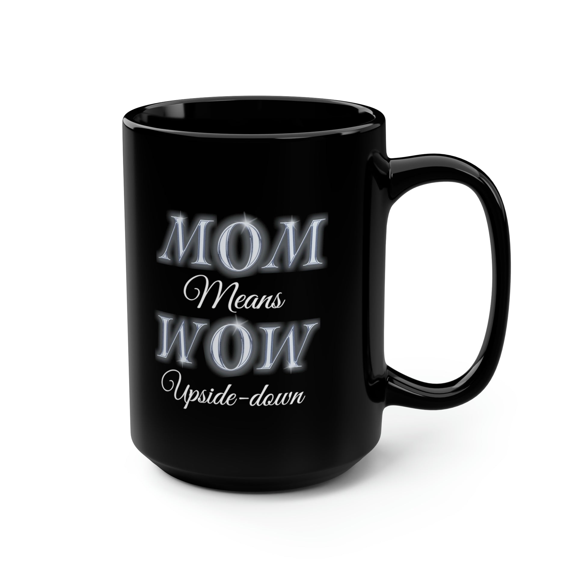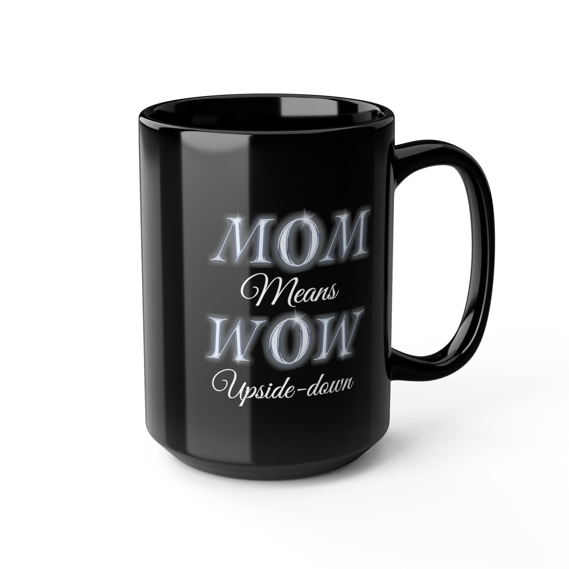 Mom Means Wow Upside Down, Black Mug, 15oz, Mothers Day Gift Idea