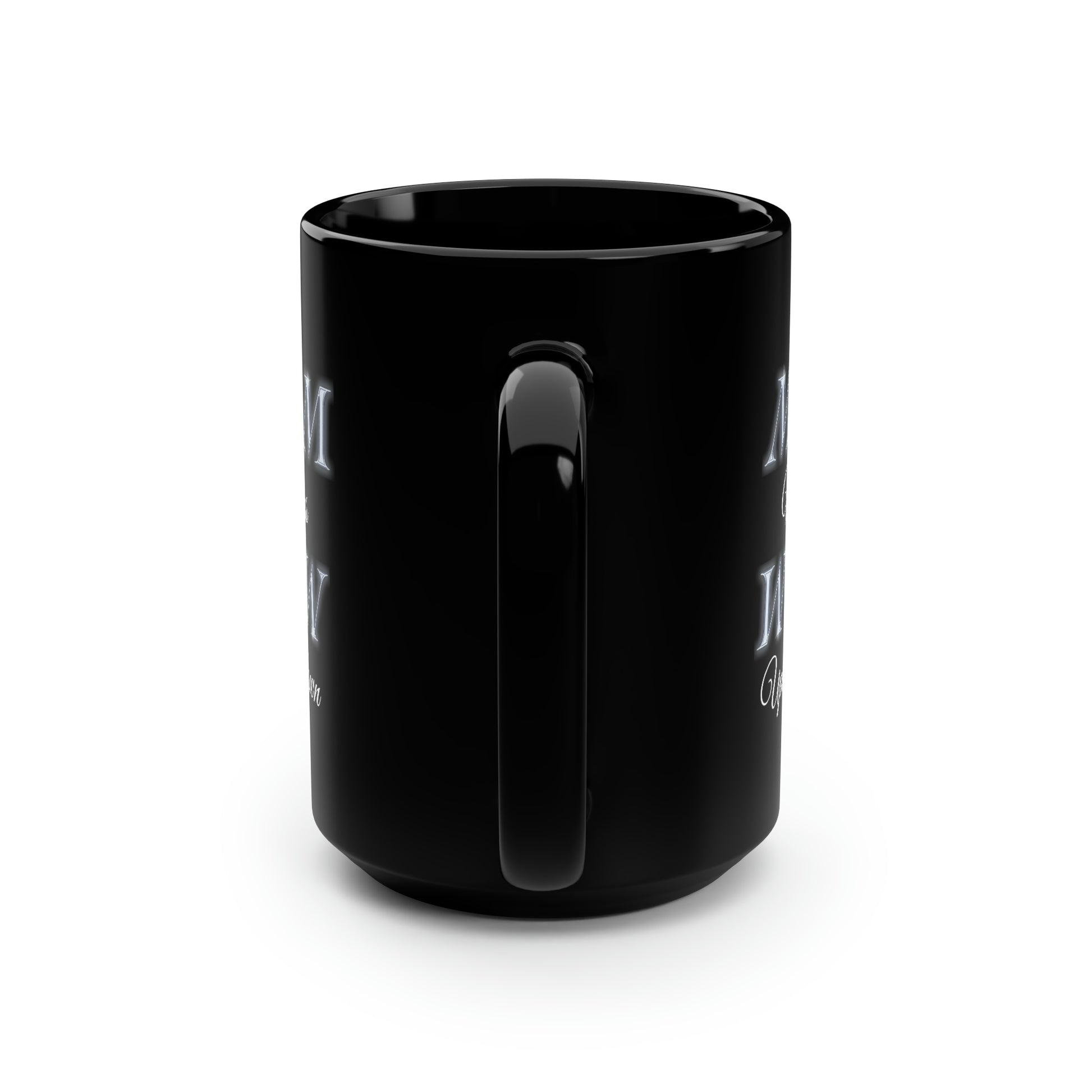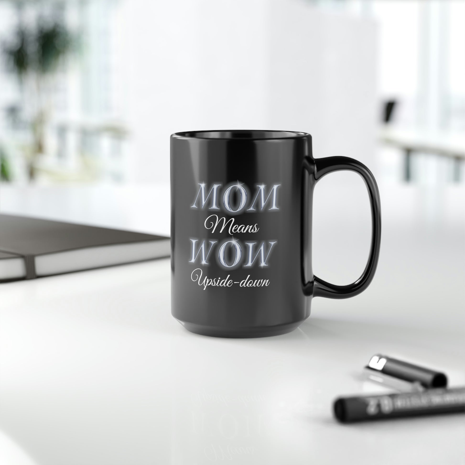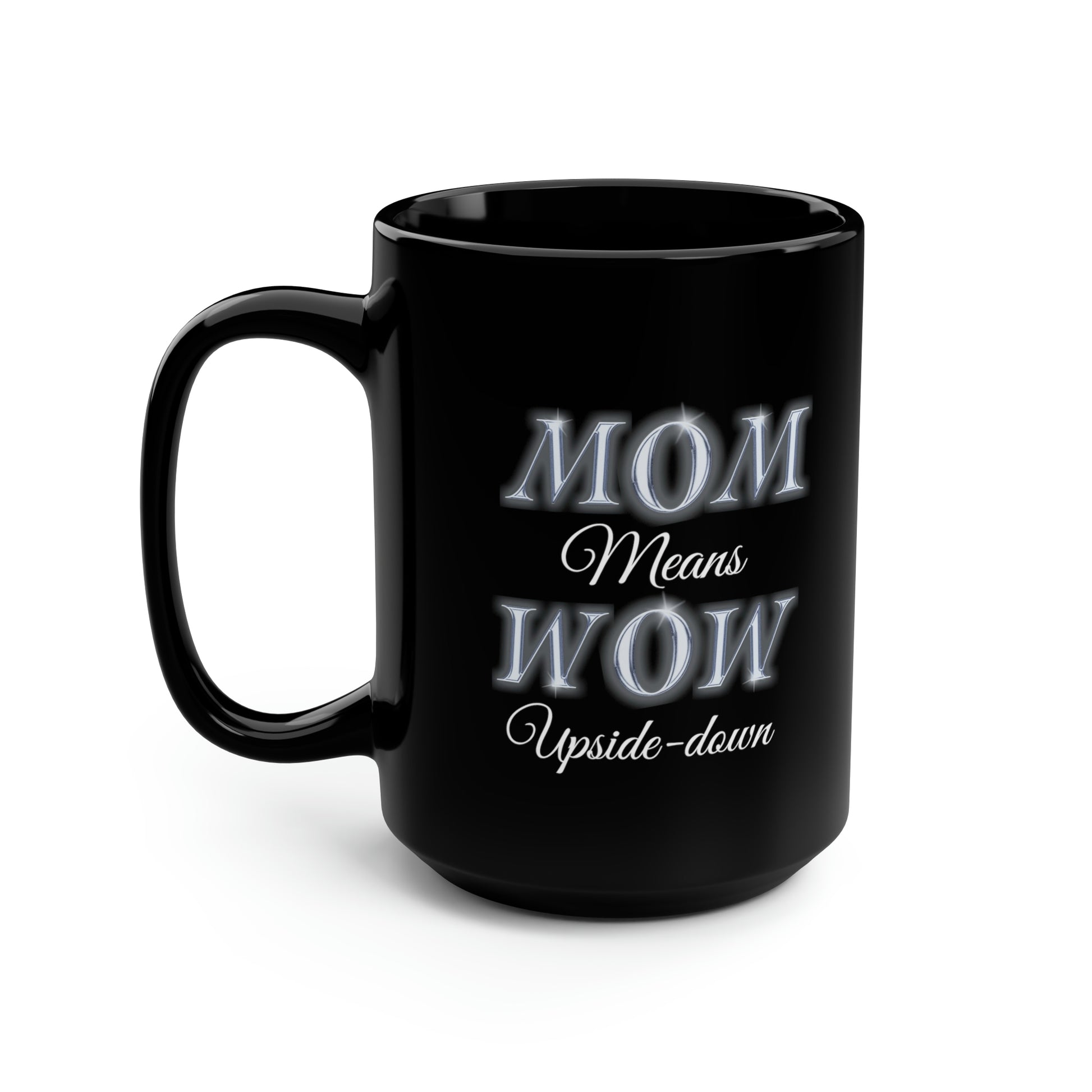Mom Means Wow Upside Down, Black Mug, 15oz, Mothers Day Gift Idea