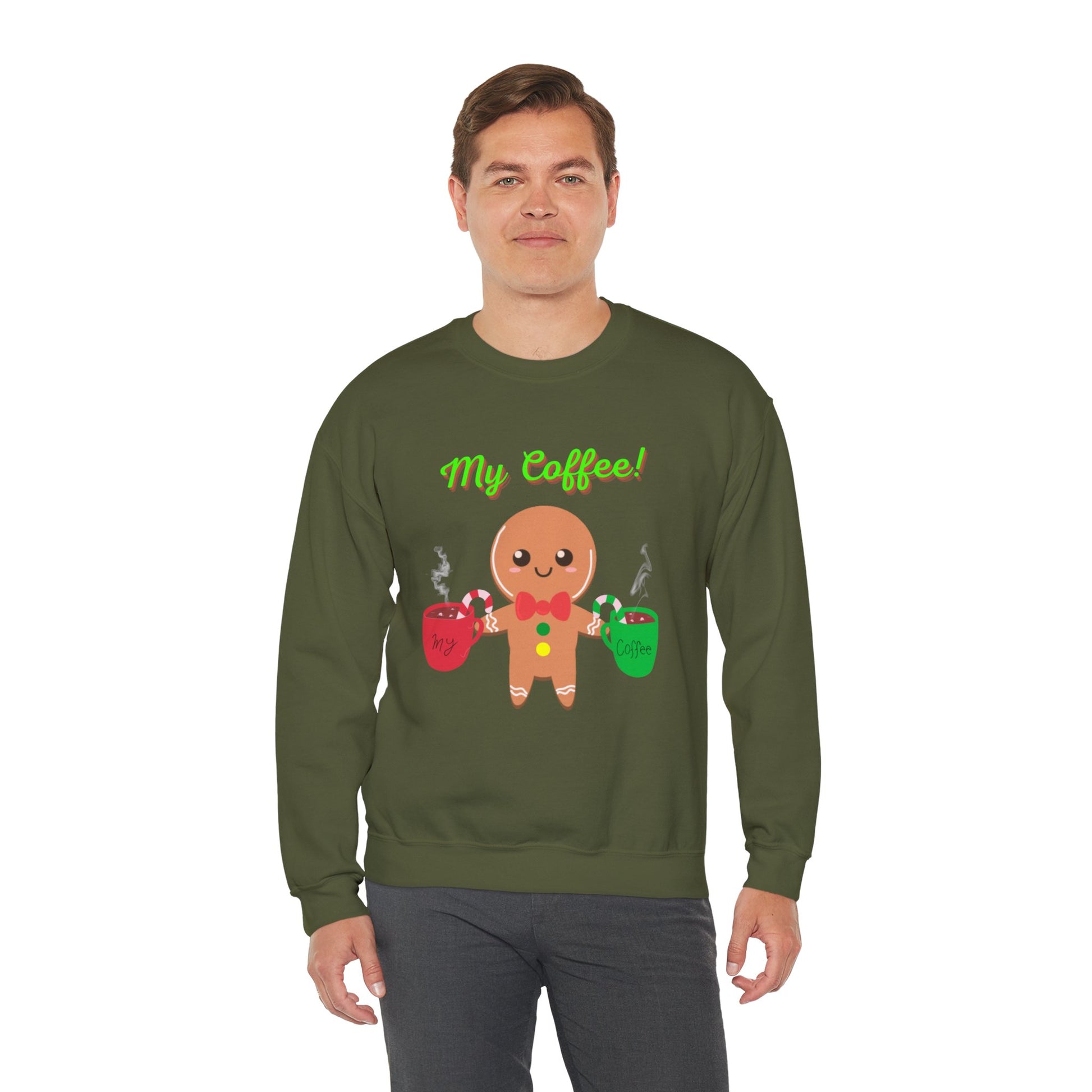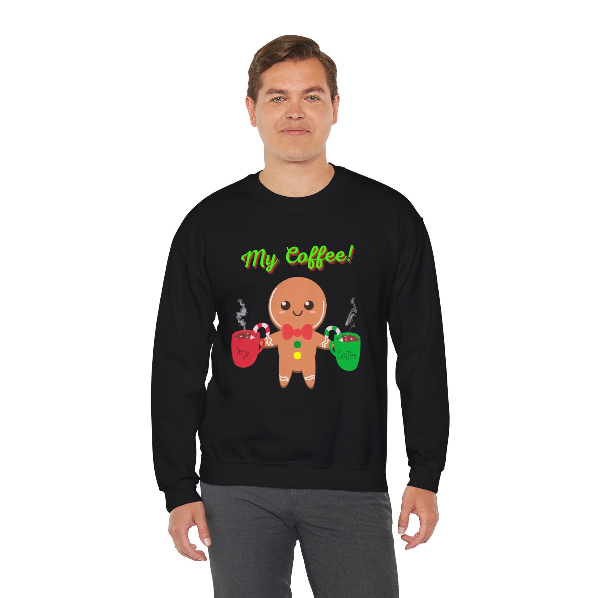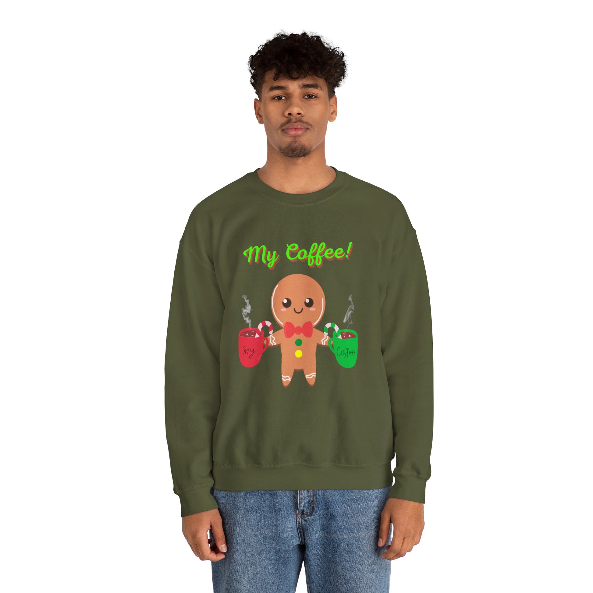 My Coffee Christmas Crewneck Sweatshirt, Gingerbread Man, Mens Gift, Womens Gift, Coffee Lover Shirt