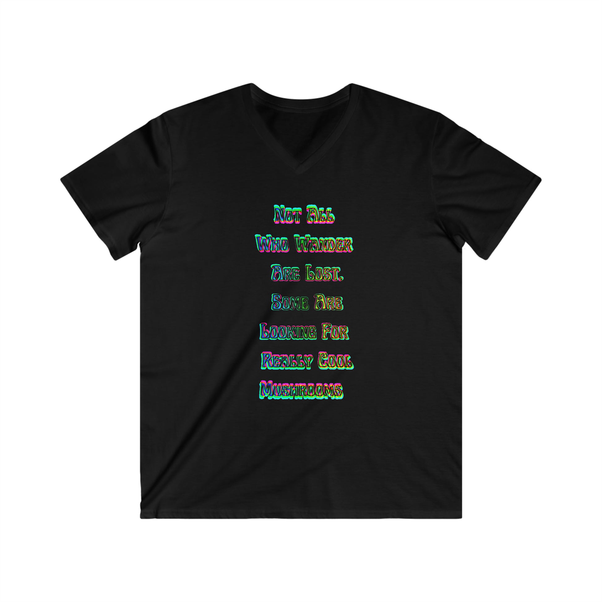 Mycologist Shirt, Not All Who Wander Are Lost, Men's Fitted V-Neck Short Sleeve Tee, Mushroom Lover Gift