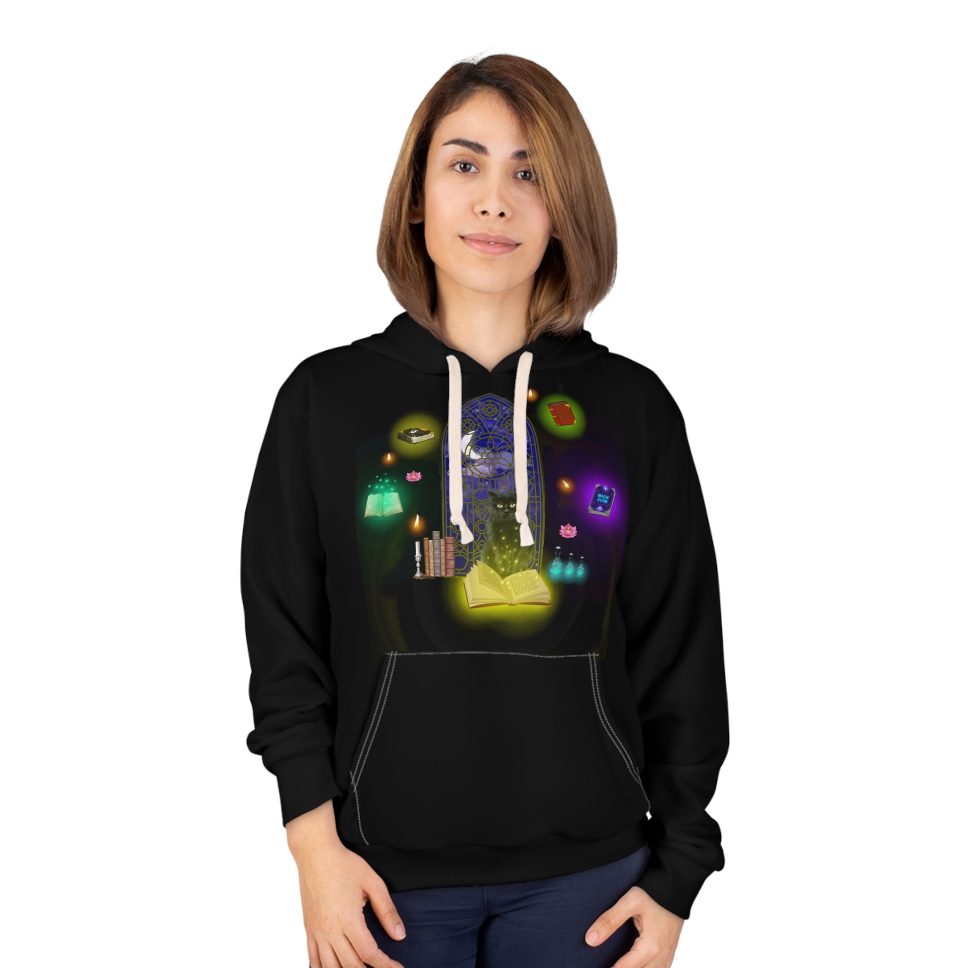 Mystic Black Cat Halloween Pullover Hoodie Black