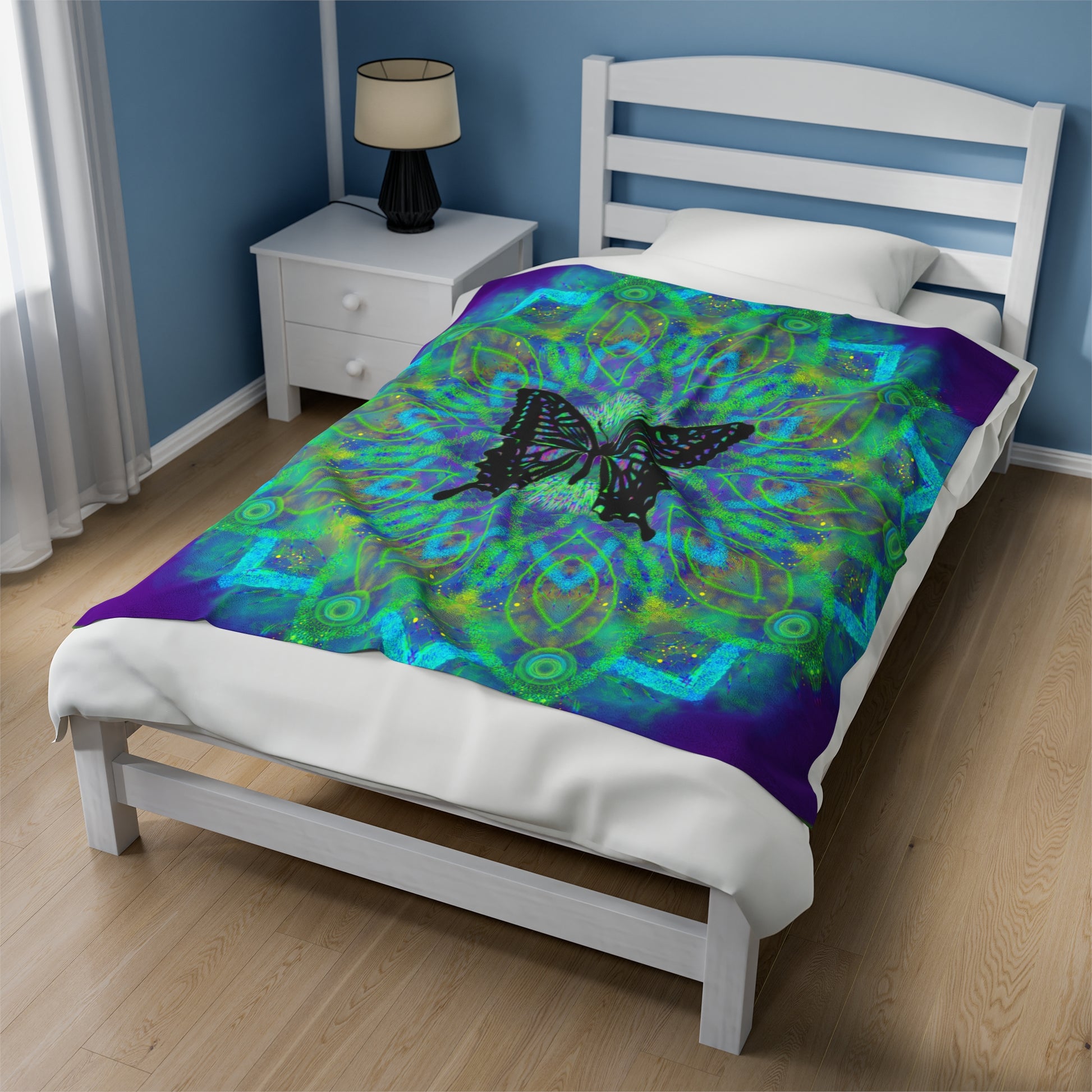 Mystic Butterfly Mandala Velveteen Plush Blanket