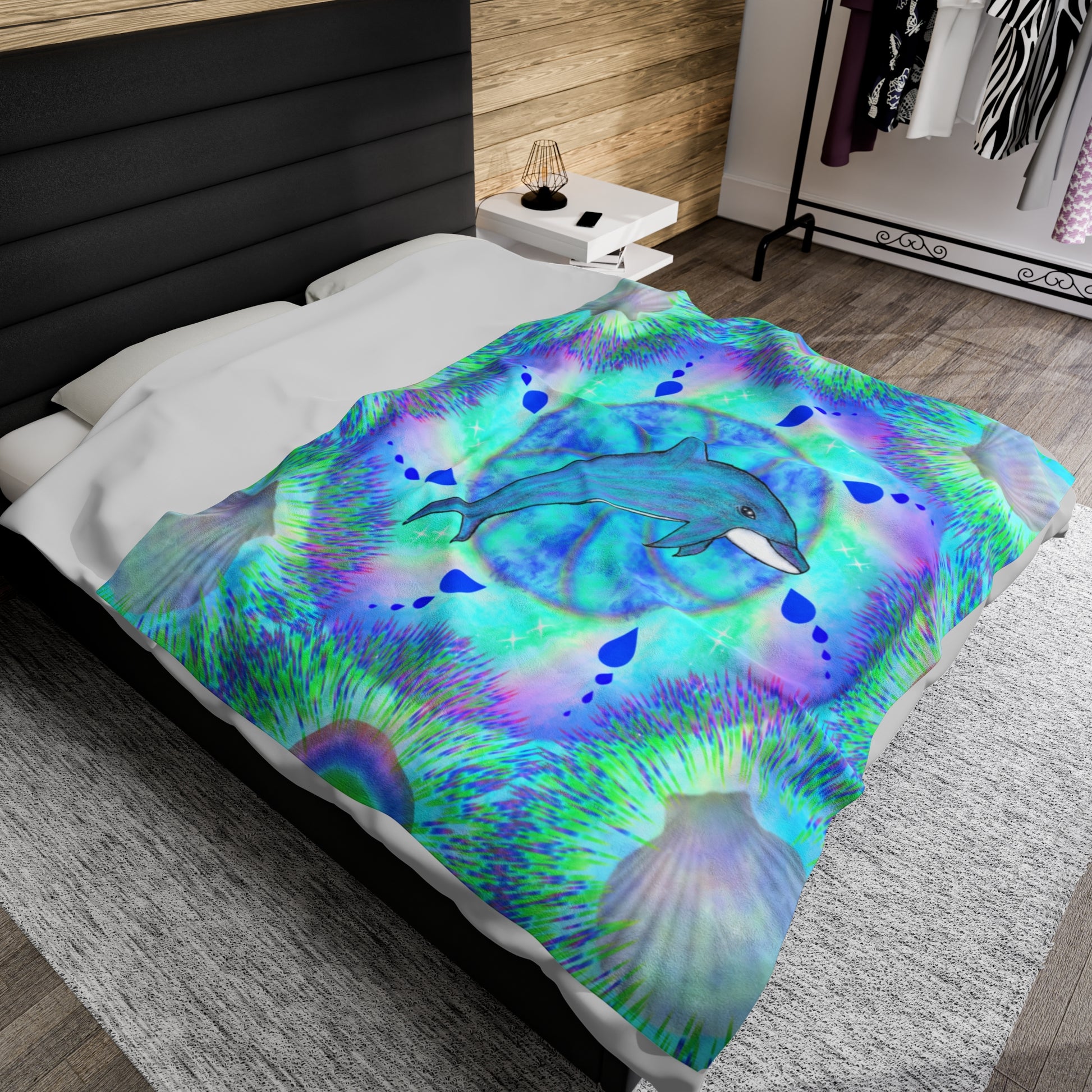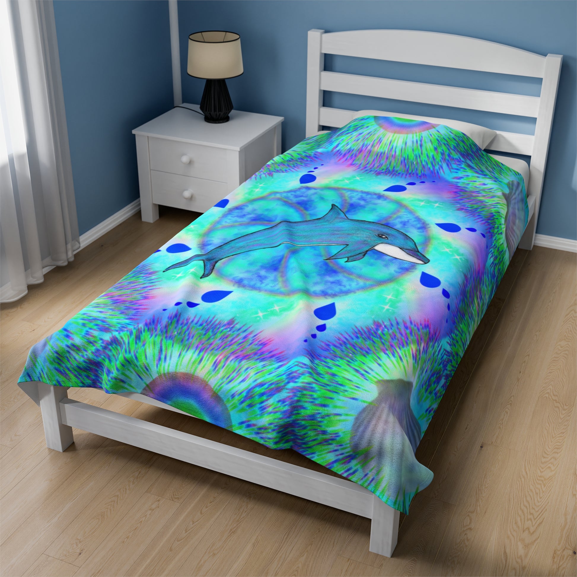 Mystic Dolphin Mandala Velveteen Plush Blanket