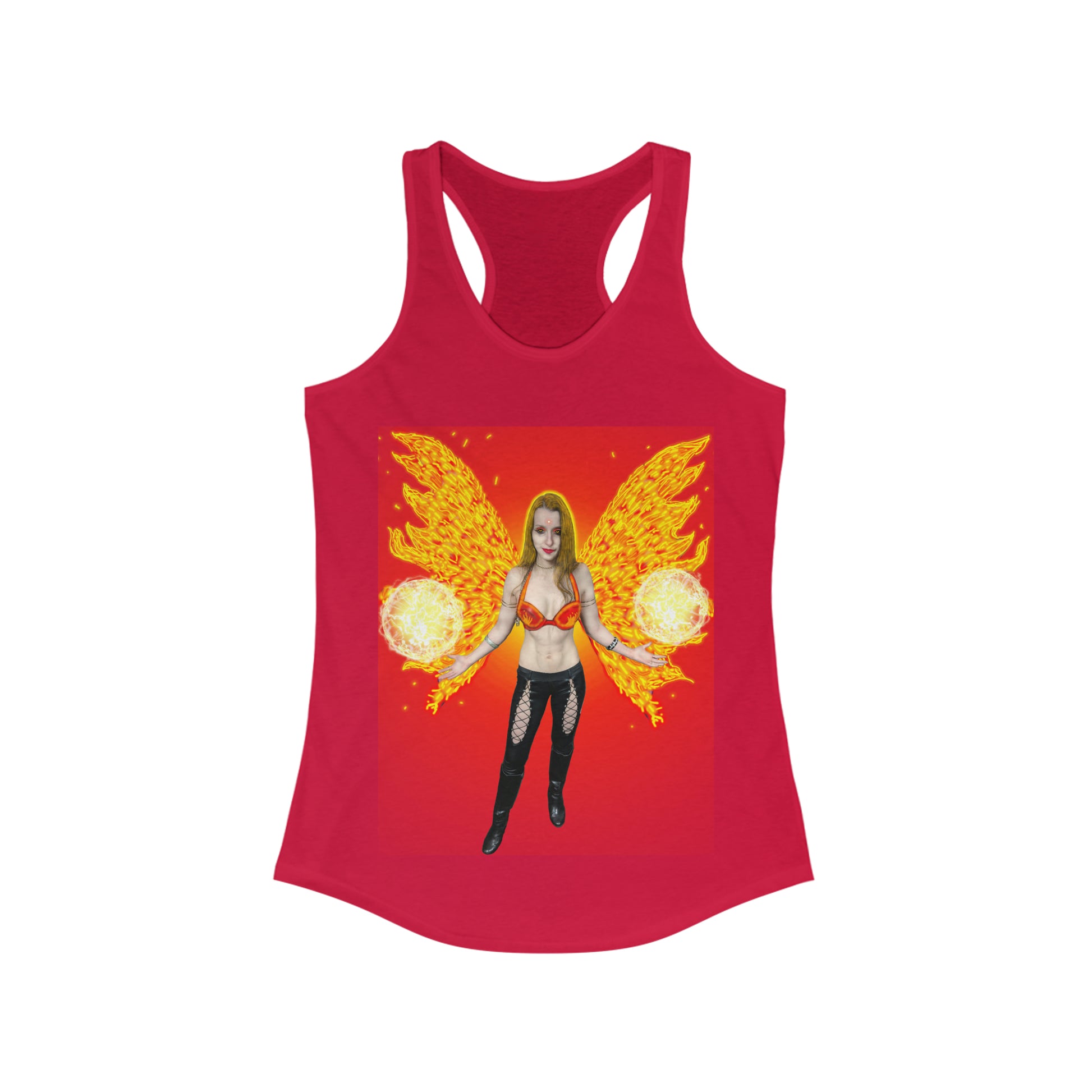 A high-quality print of this slim fit tank-top will turn heads. Bystanders won't be disappointed - the racerback cut looks good on any woman's shoulders.