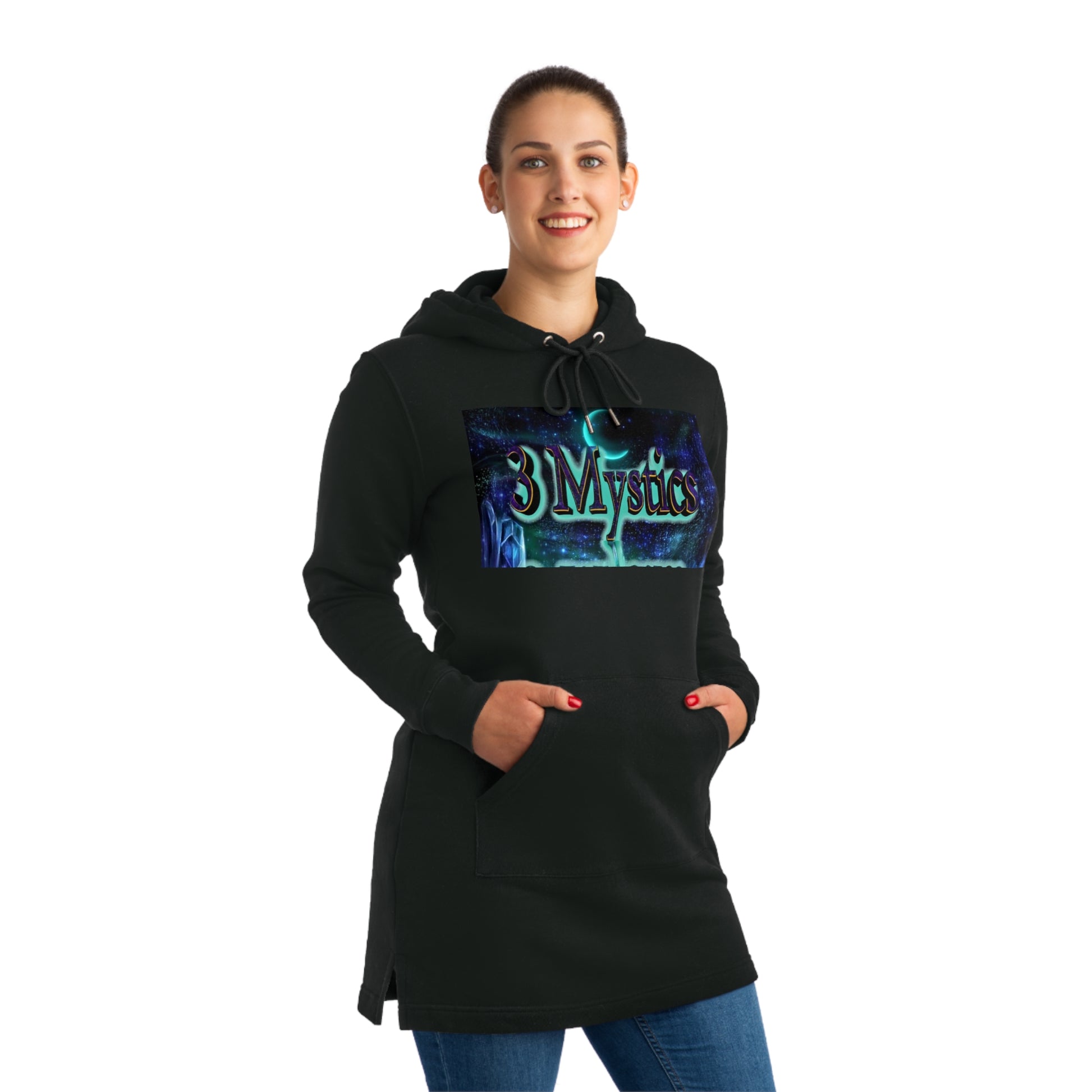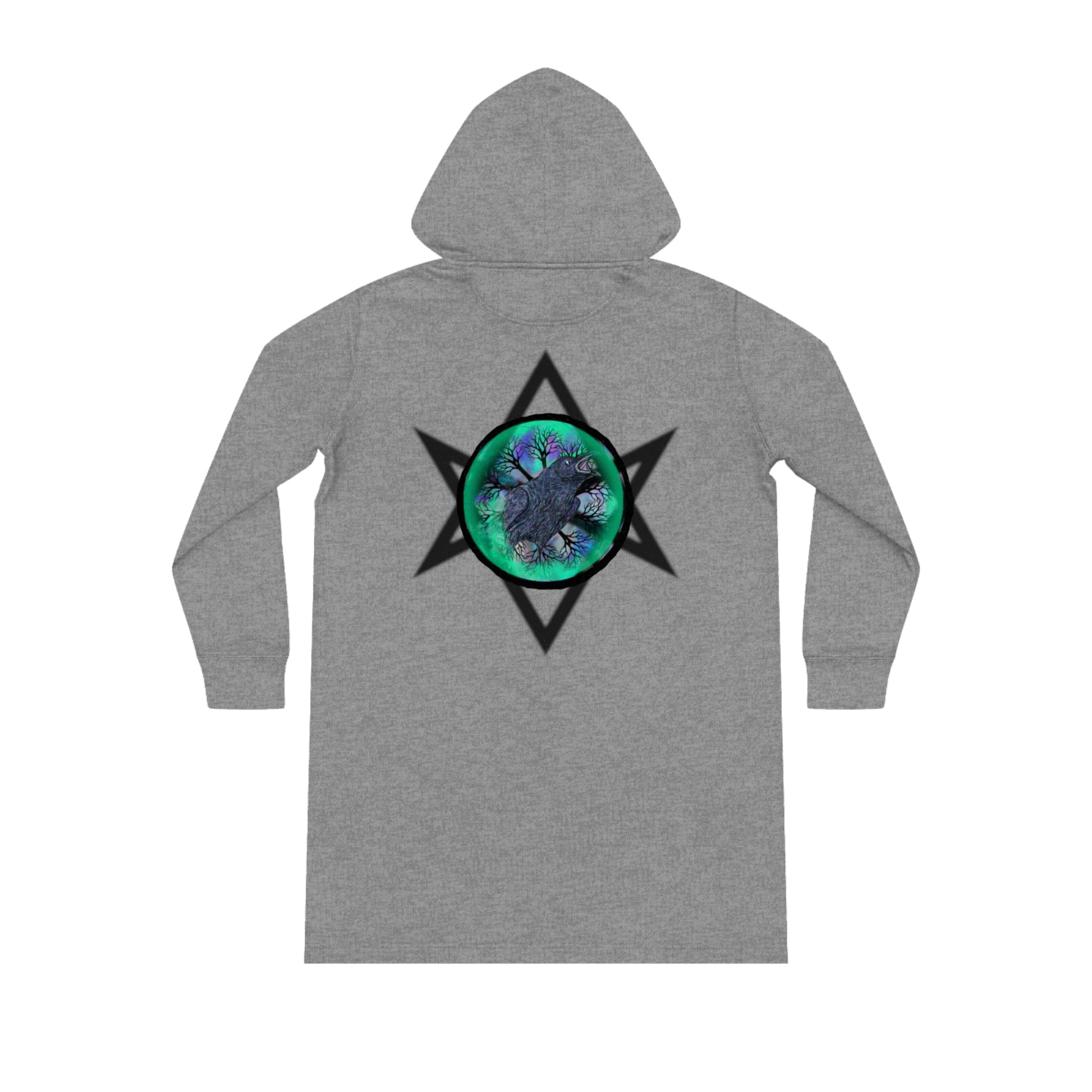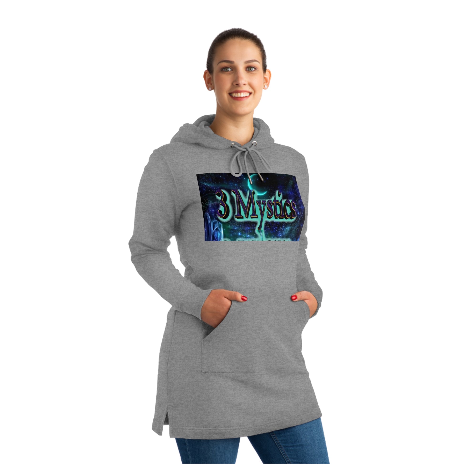 This hoodie dress combines some of the most universally loved features of hoodies & dresses into a unique garment packed with personality. Made with 85% organic, ring-spun, combed cotton, and 15% recycled polyester, this hoodie dress brings an eco-friendly, feel-good uniqueness to any wardrobe. Features round drawcords in matching body color with metal tipping & eyelets.