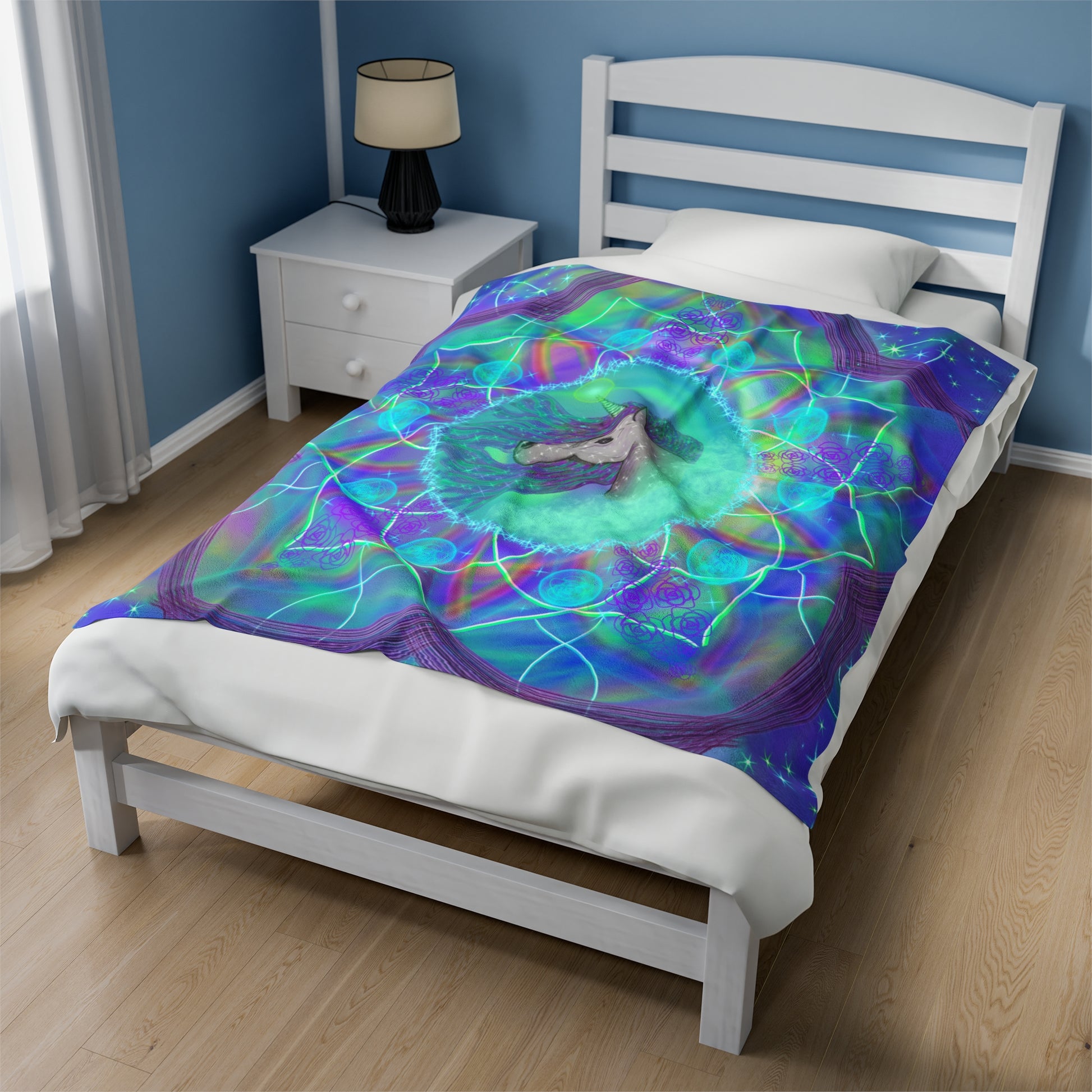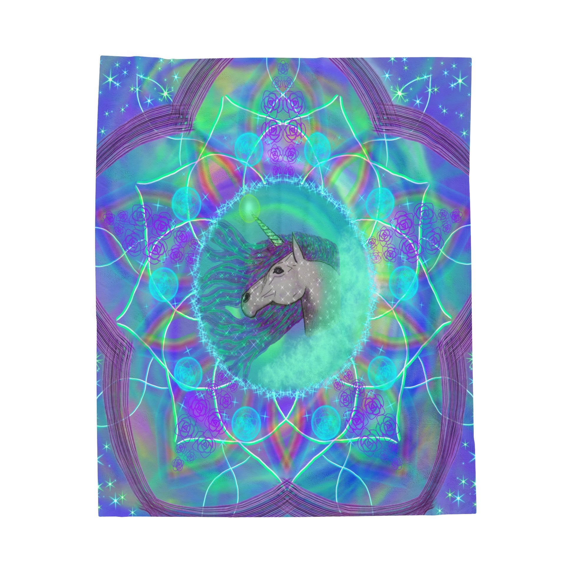 Mystic Unicorn Mandala Velveteen Plush Blanket