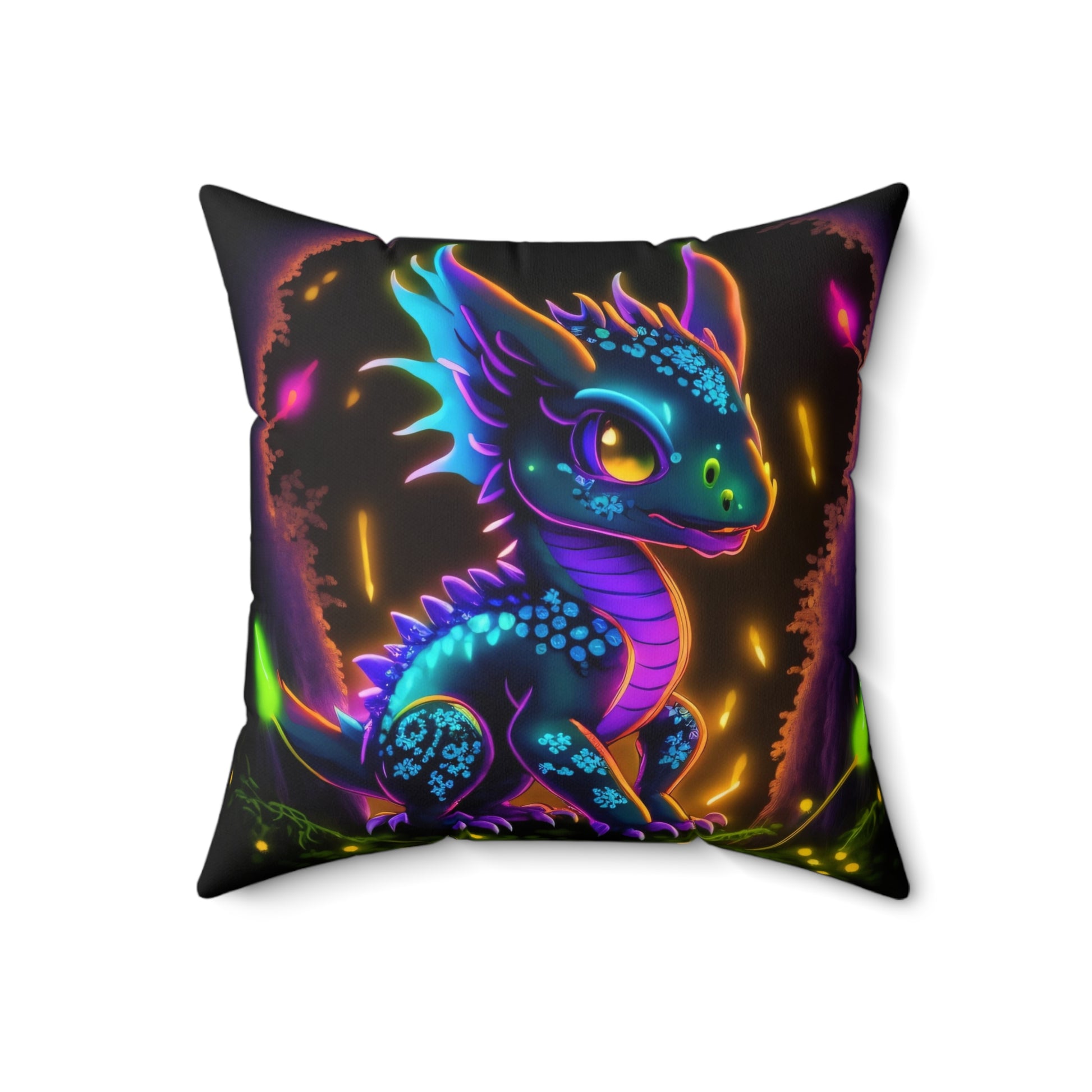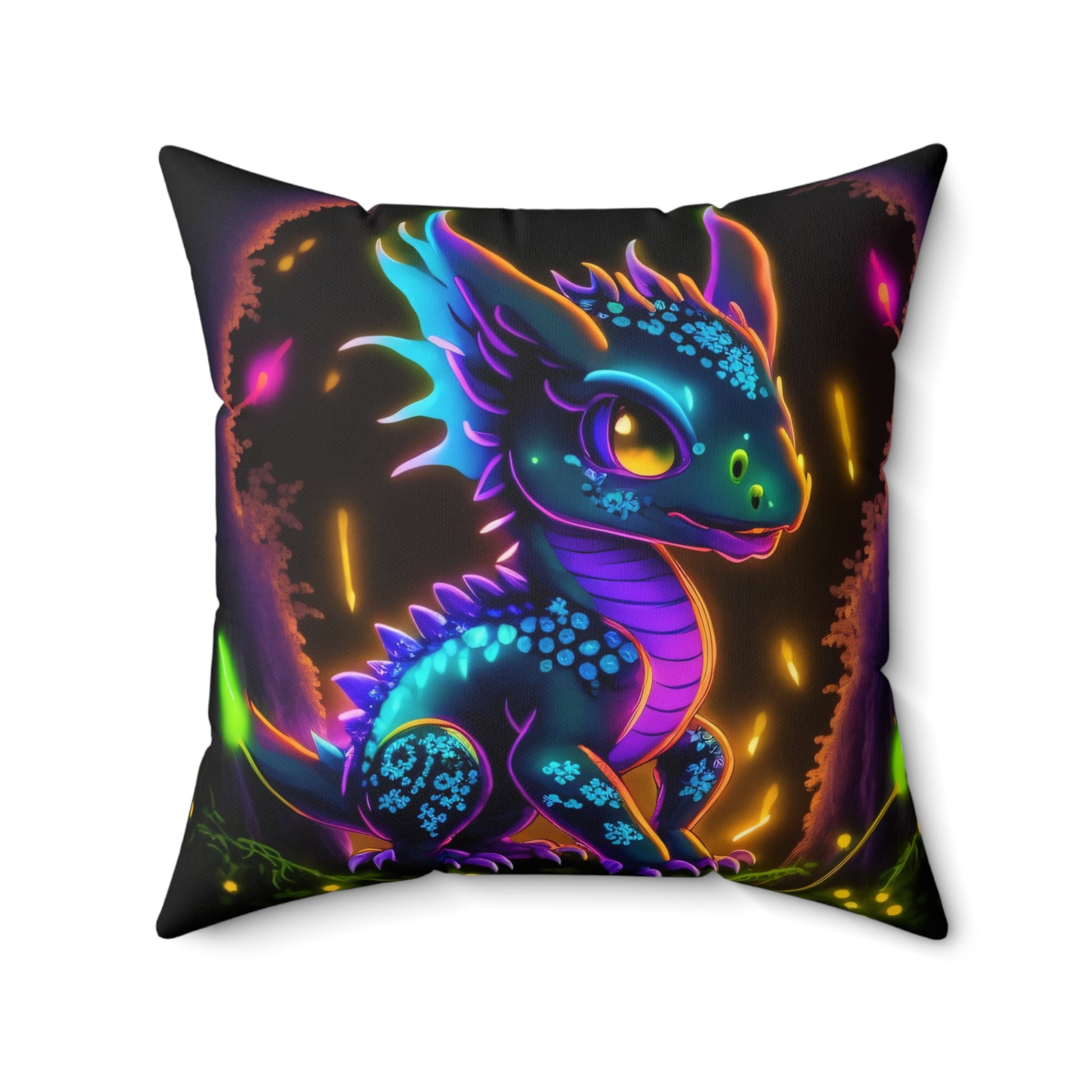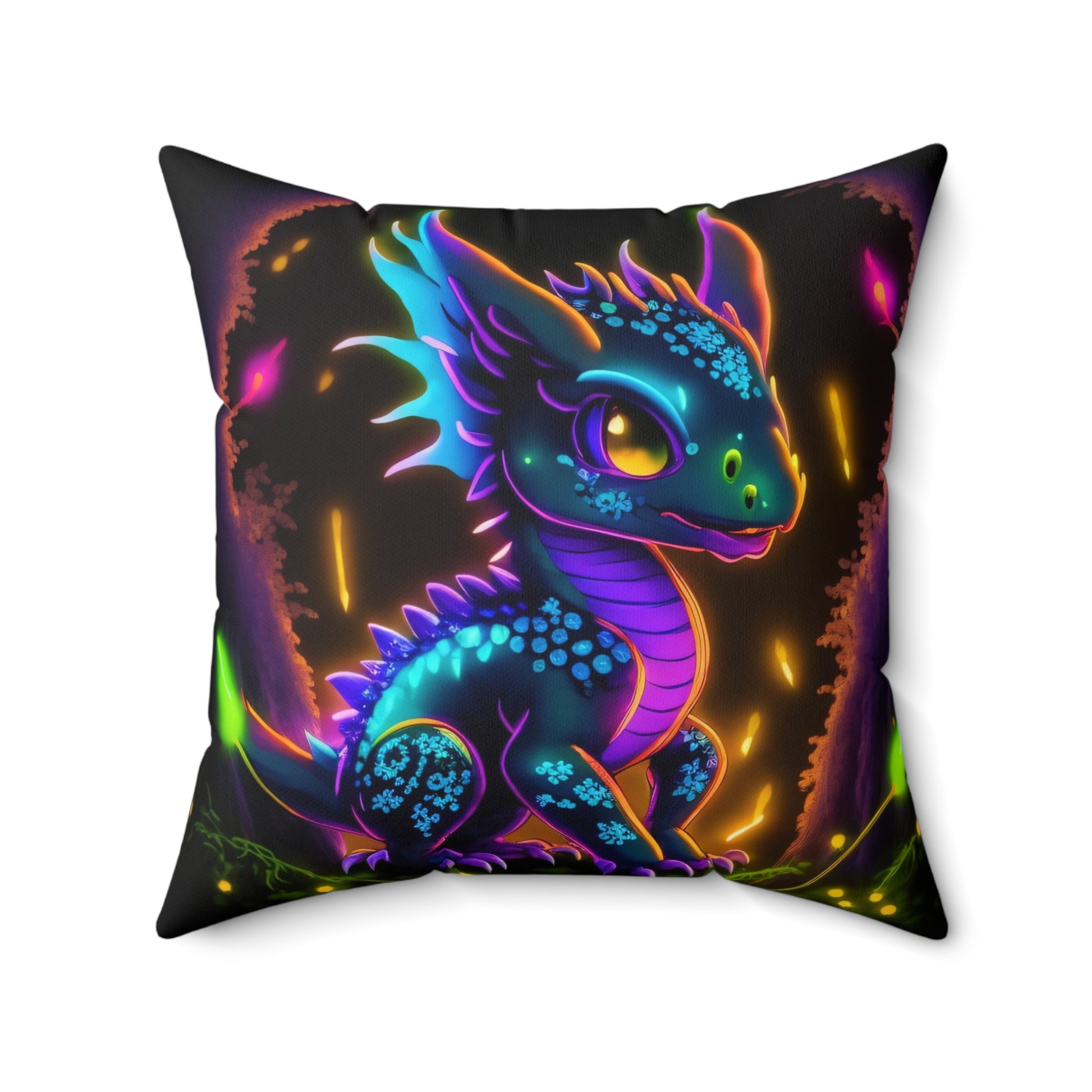 Neon Baby Dragon, Spun Polyester Square Pillow