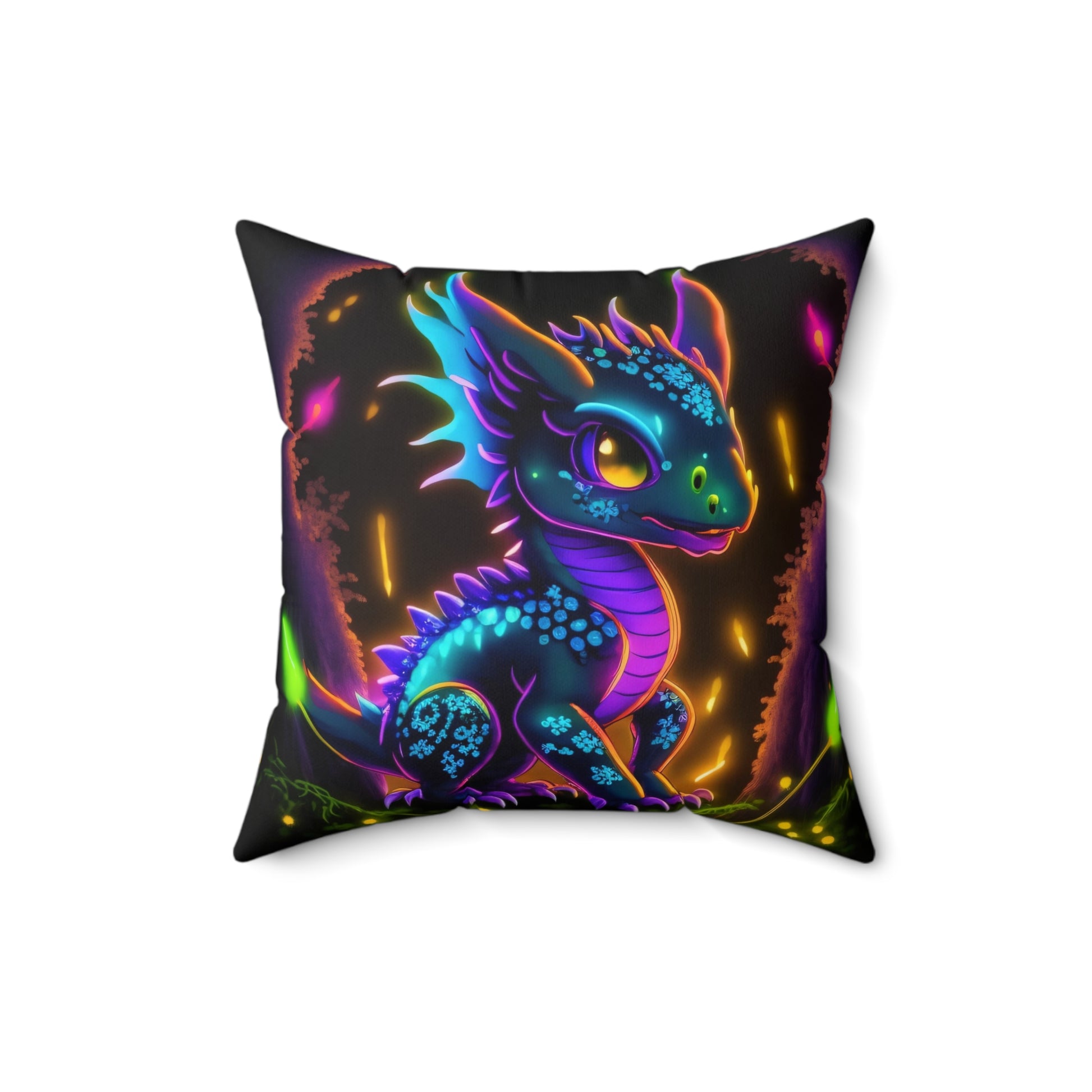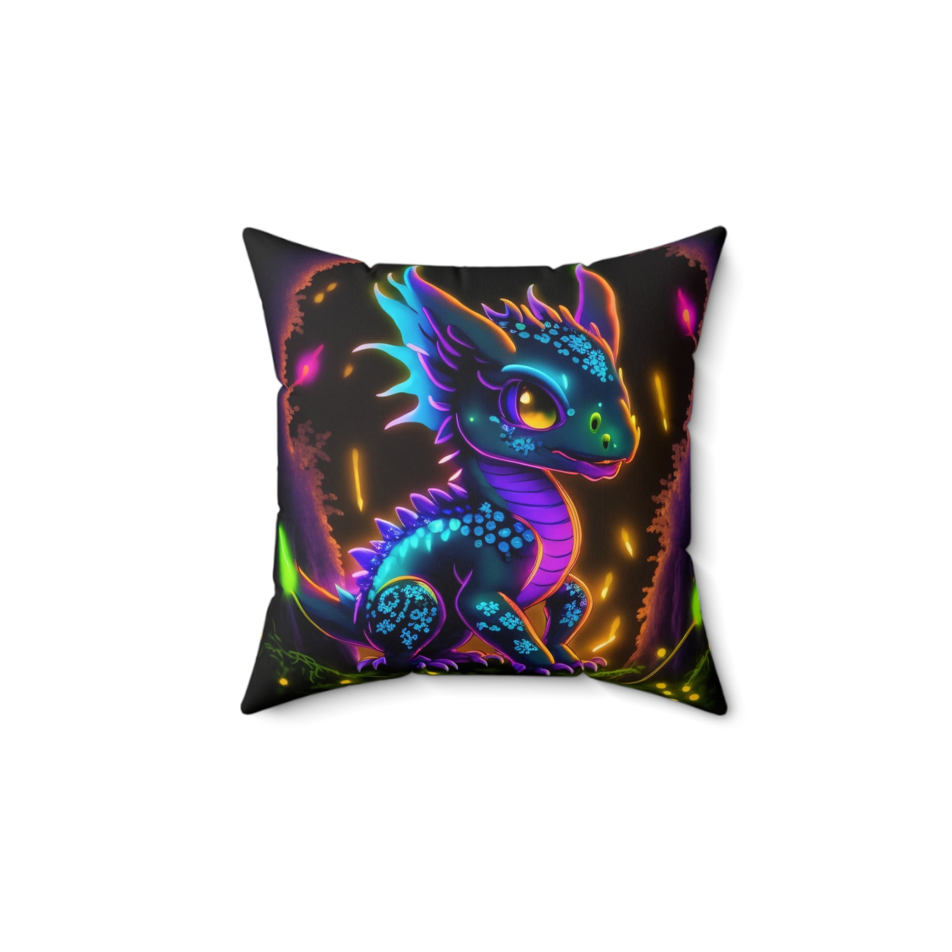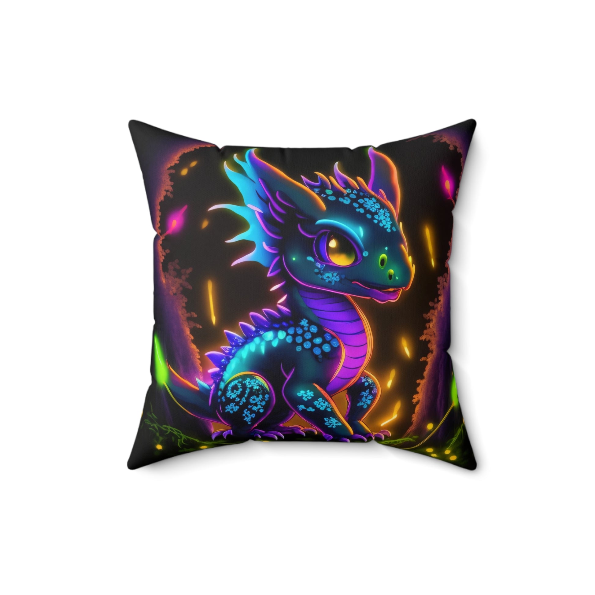 Neon Baby Dragon, Spun Polyester Square Pillow
