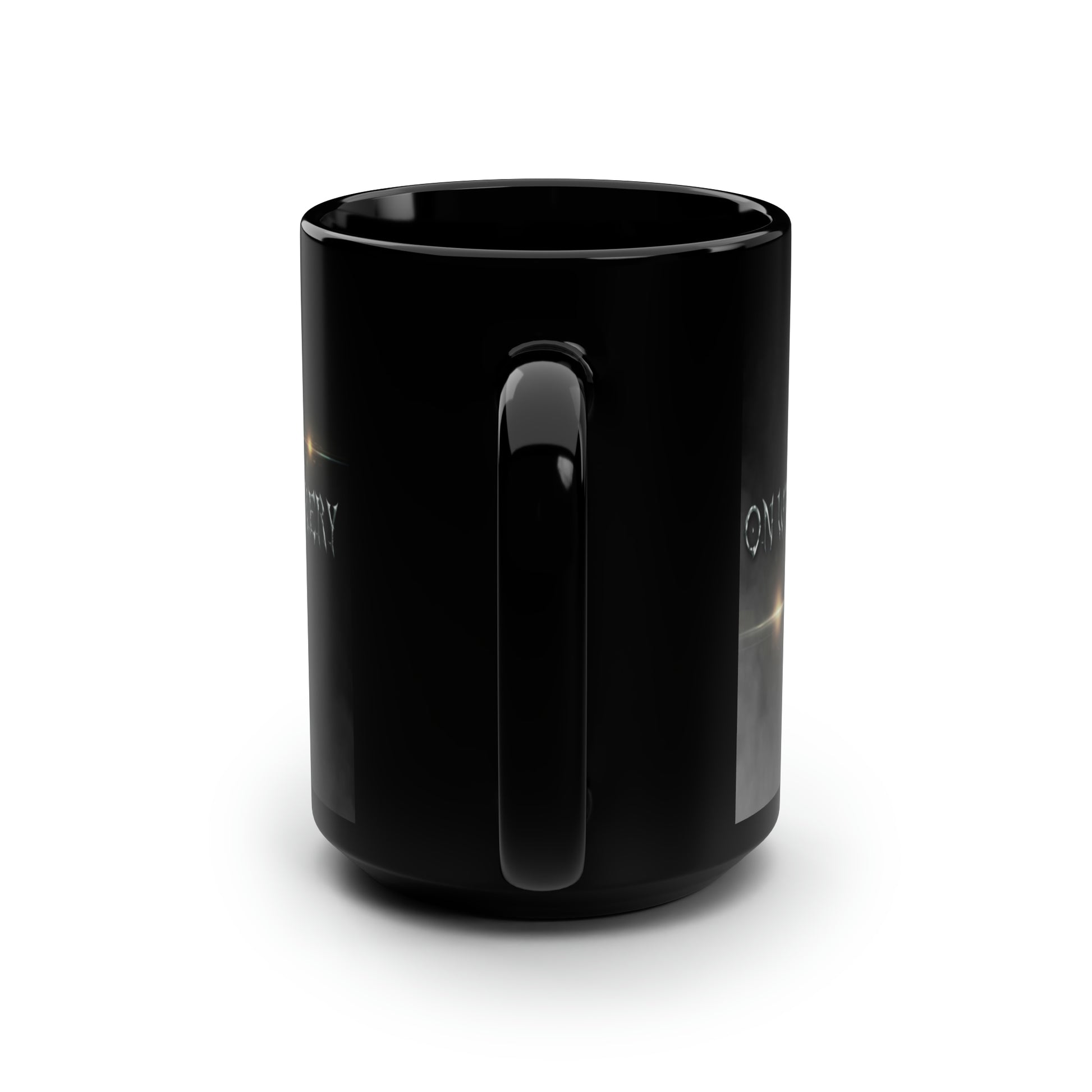 These black mugs come in one size – 15oz (0.44l) – plenty for morning caffeine boosts and hot cups of tea on a rainy day. They're easy to grip and feel sturdy thanks to the C-shaped handle. Printed on the black ceramic material in picture-perfect quality with a glossy finish.