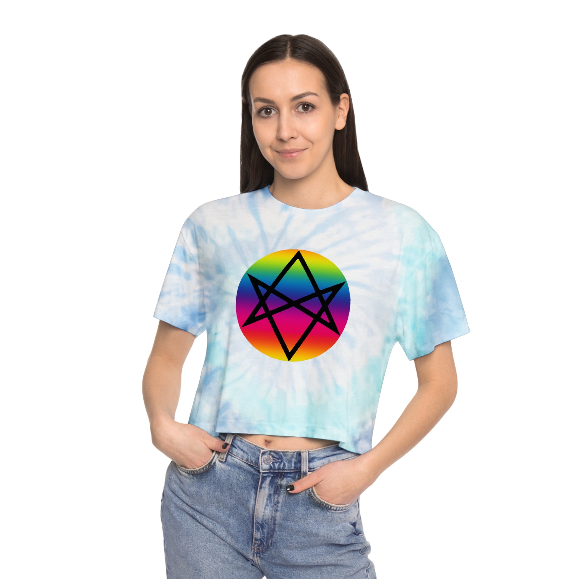 PRIDE Unicursal Hexagram Women's Tie-Dye Crop Tee