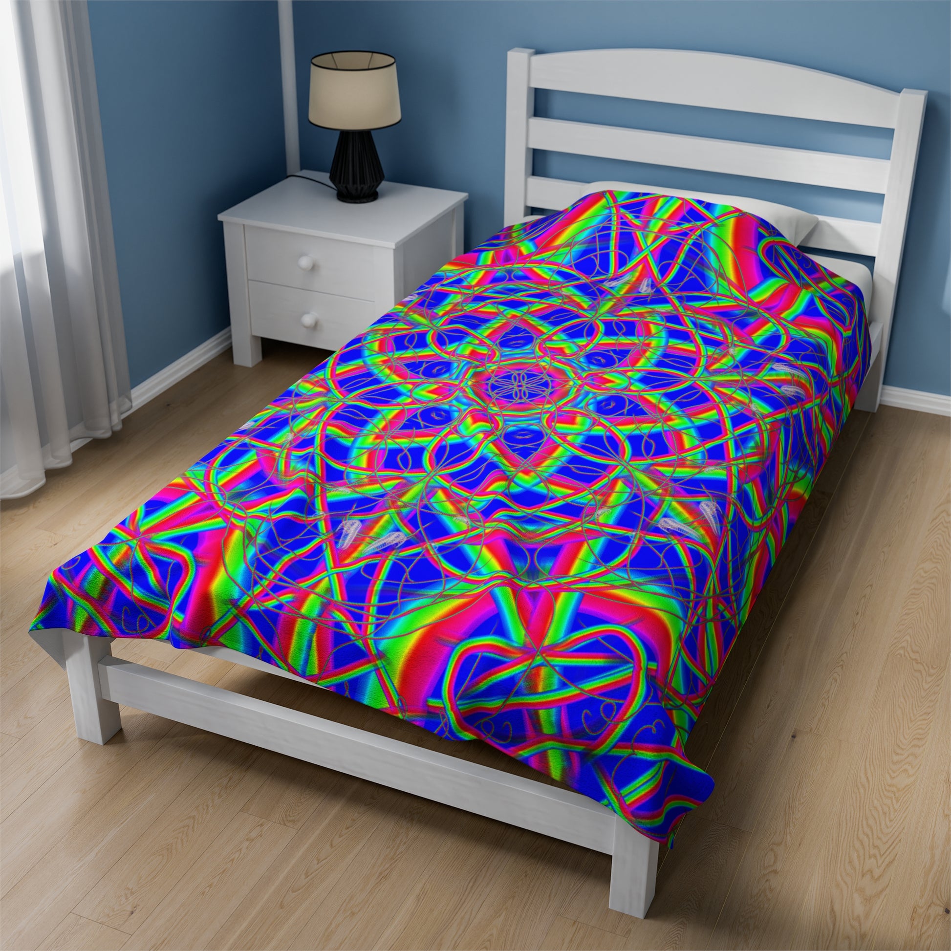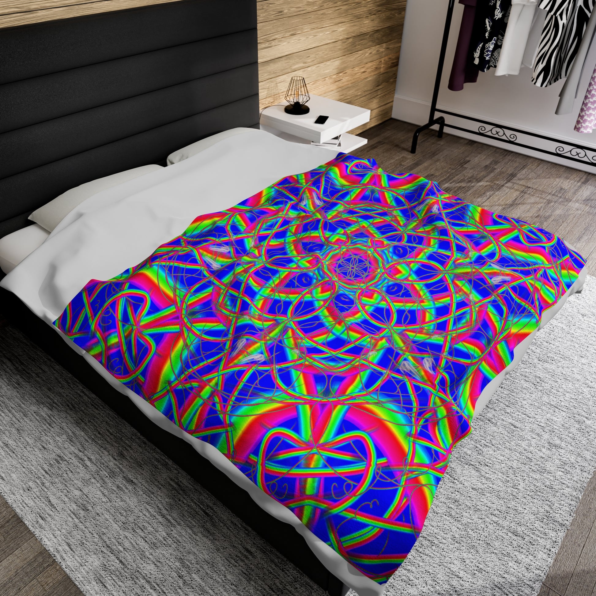 Psychedelic Rainbow Mandala Giant Velveteen Plush Blanket