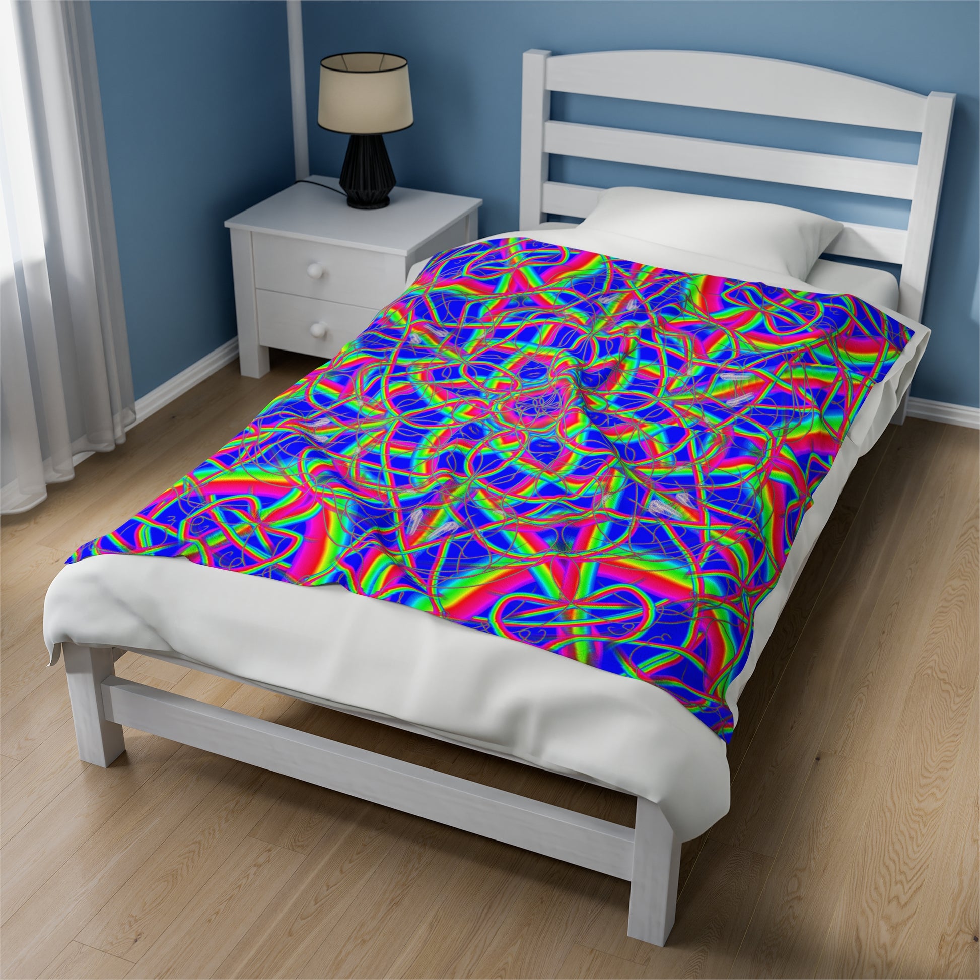 Psychedelic Rainbow Mandala Velveteen Plush Blanket