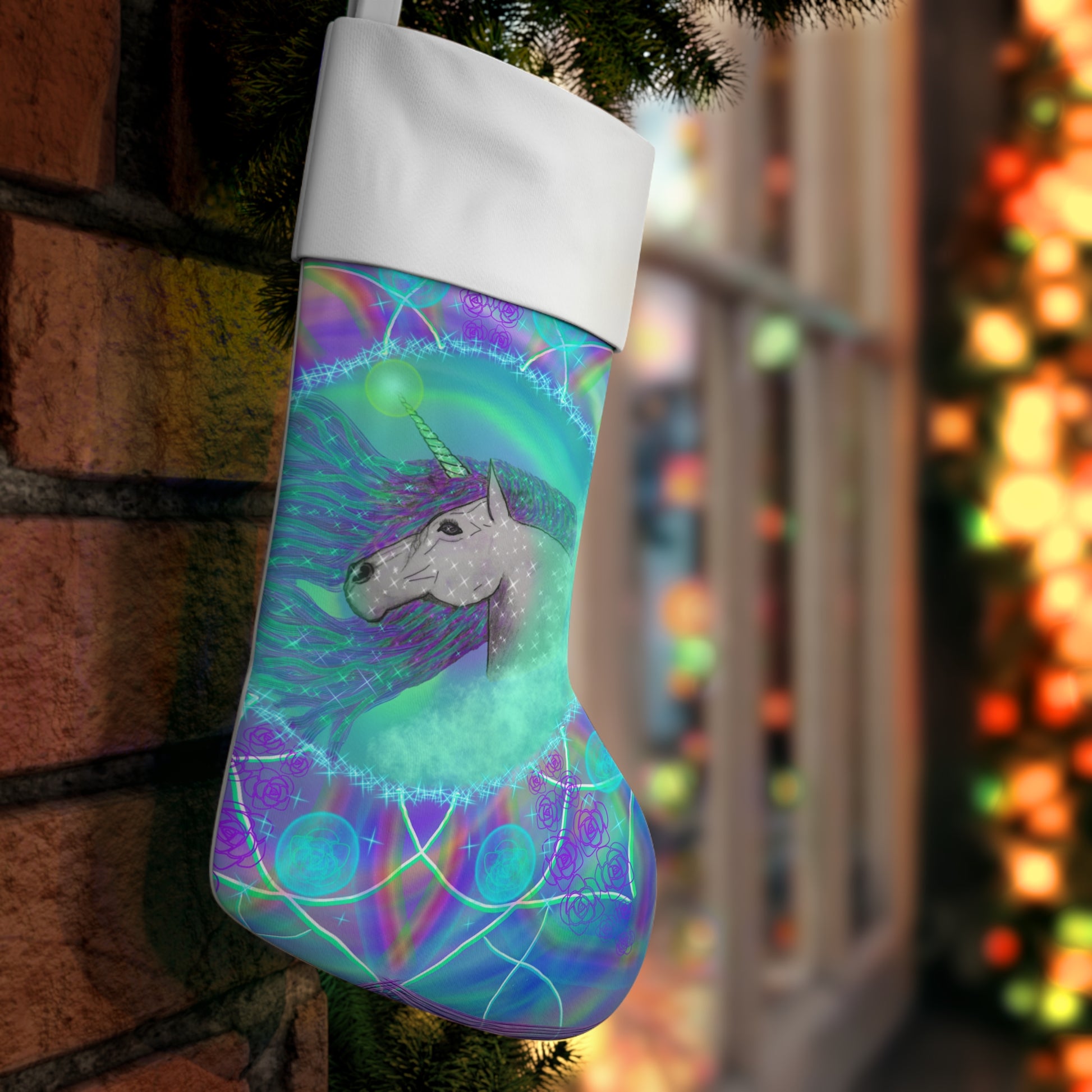 Here to add a festive flair to any fireplace or corner of a home, this Christmas stocking is the perfect way to store small gifts for loved ones. Featuring a white fold on top and a hanging loop for convenient placement.