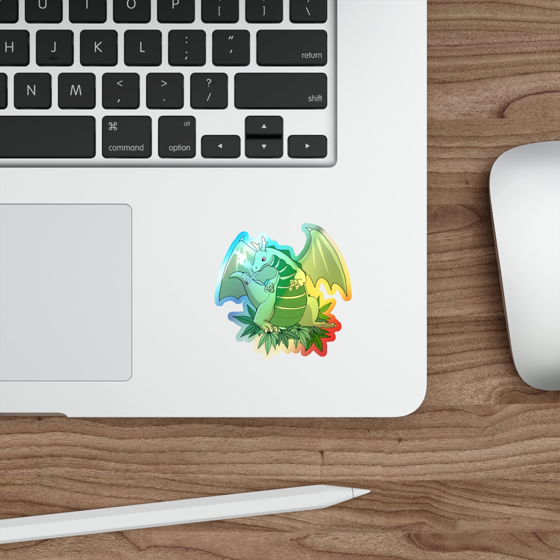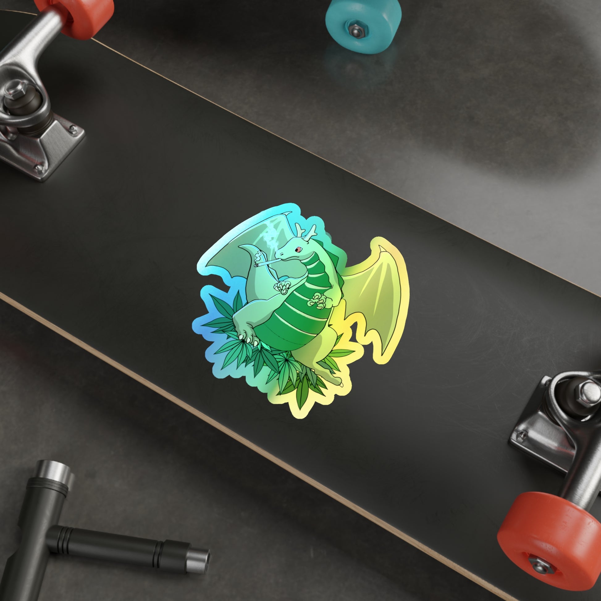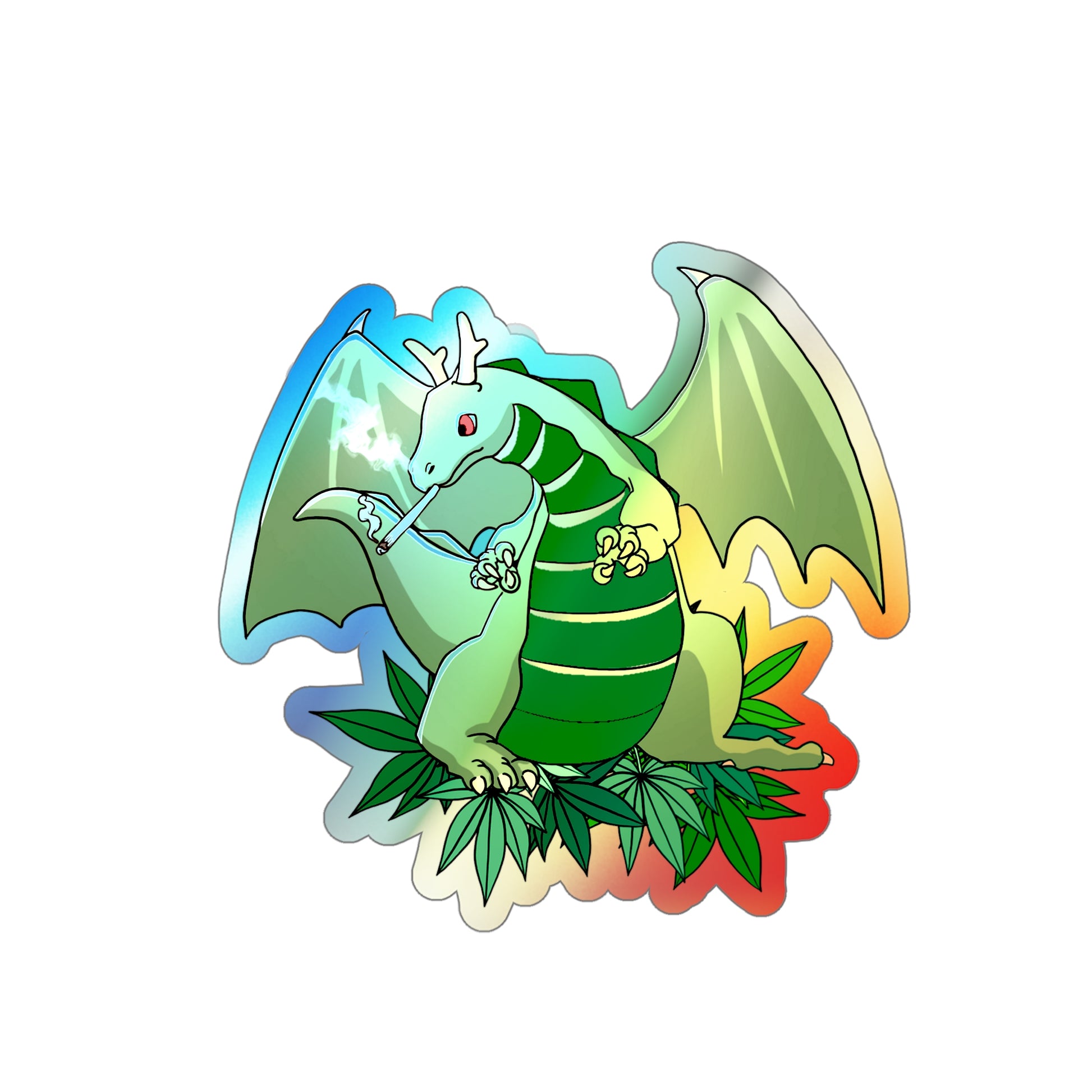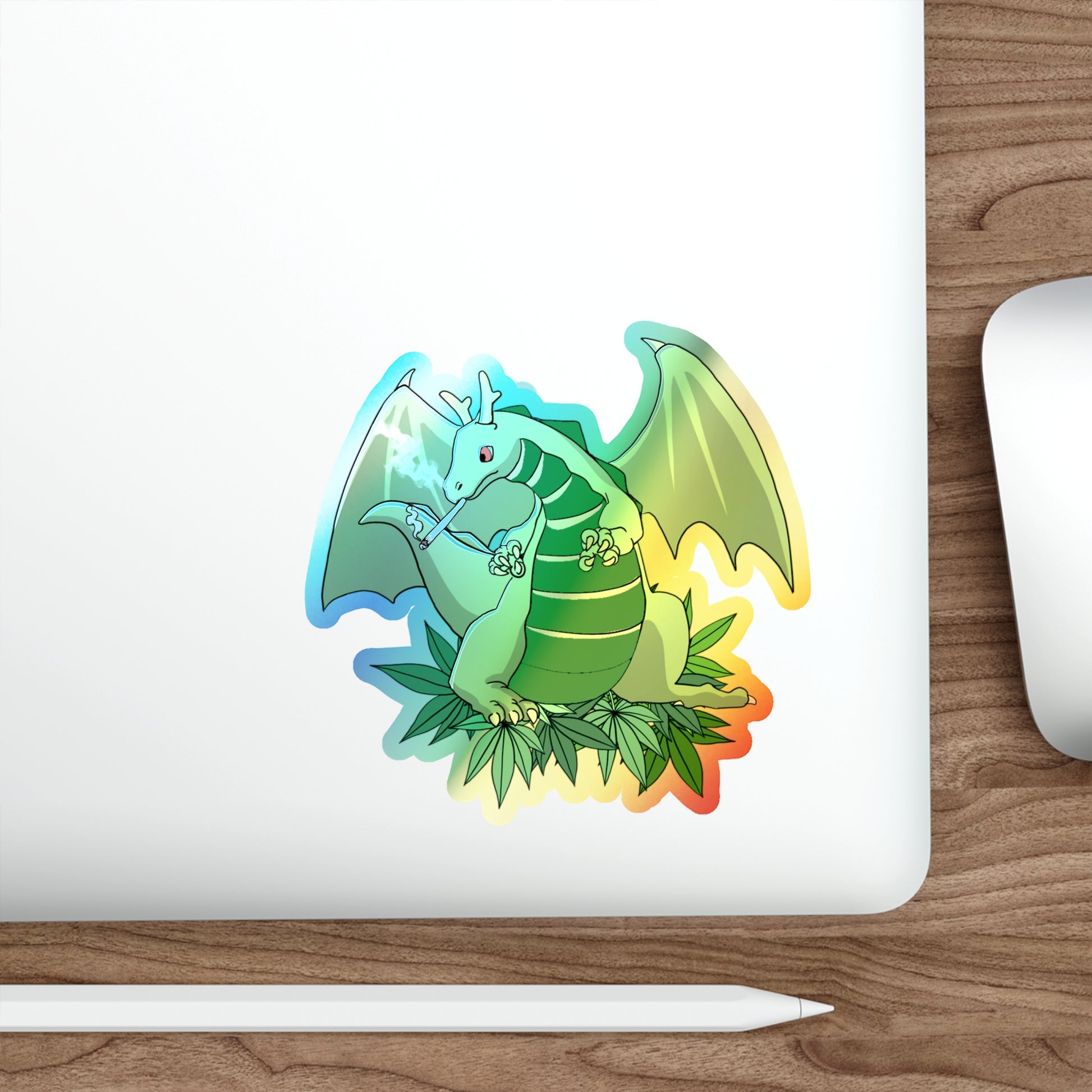 Puff Puff Smokin Dragon Rainbow Holographic Die-cut Vinyl Stickers