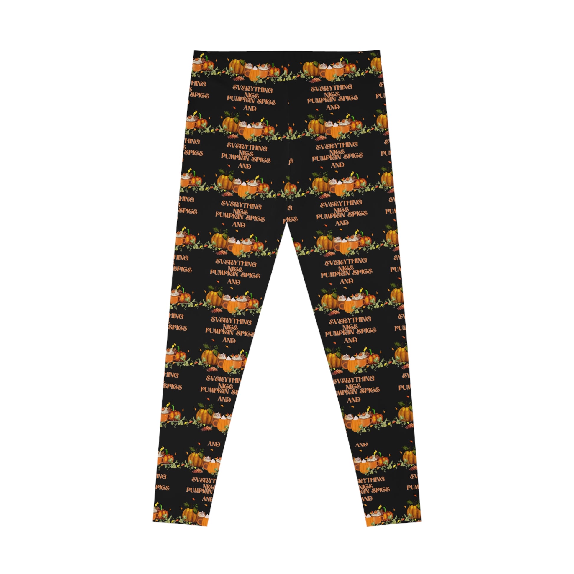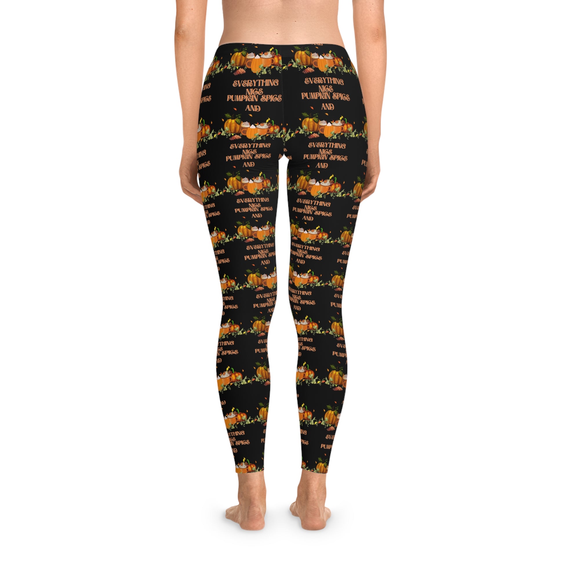 Pumpkin Spice and Everything Nice Halloween Stretchy Leggings Black