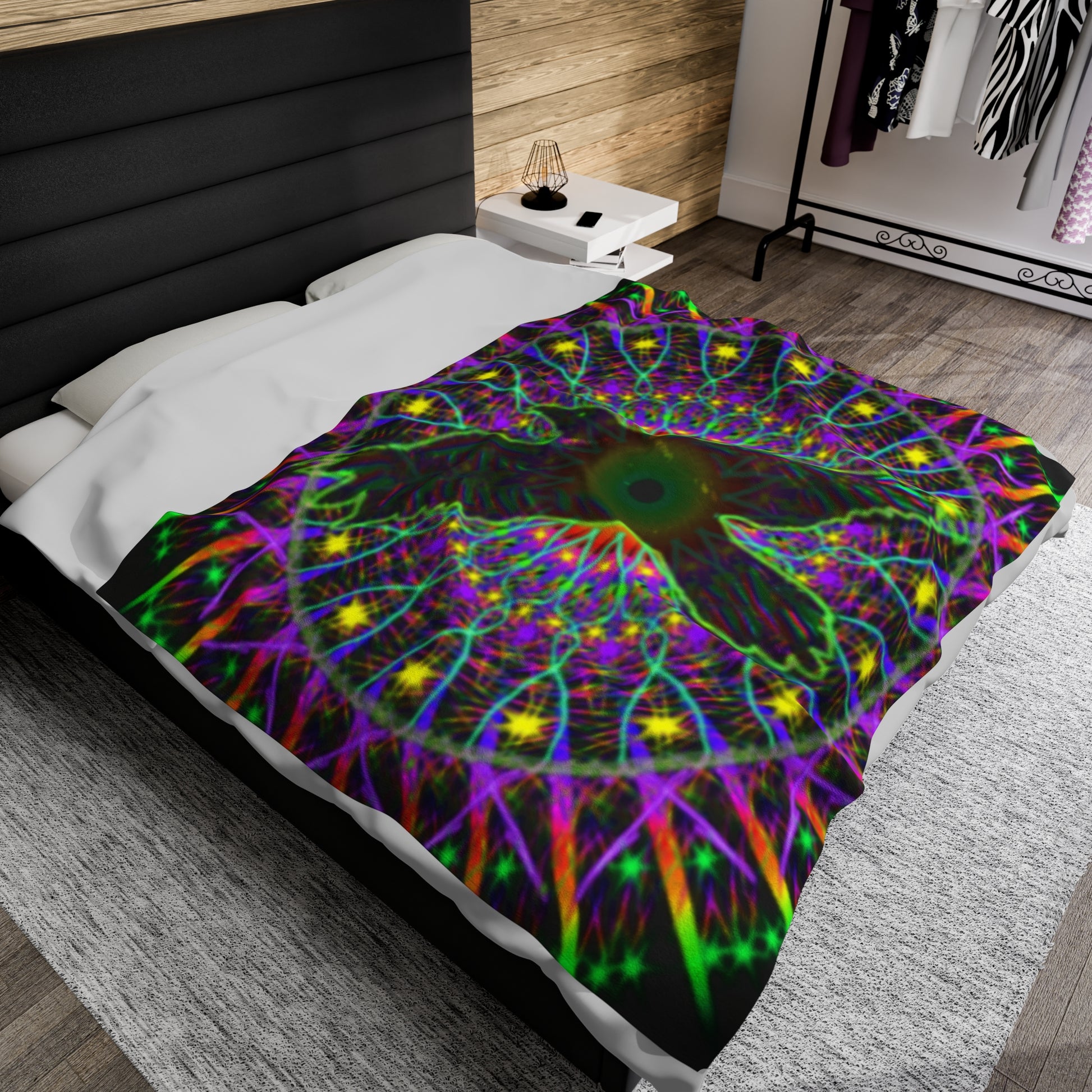 Rainbow Raven Mandala Giant Velveteen Plush Blanket
