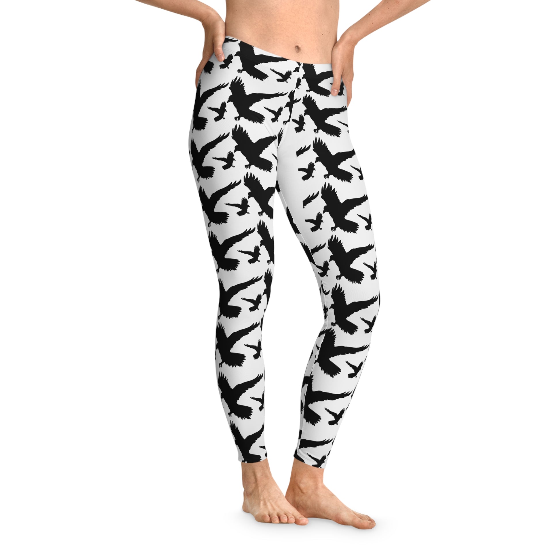 Raven Halloween Stretchy Leggings white