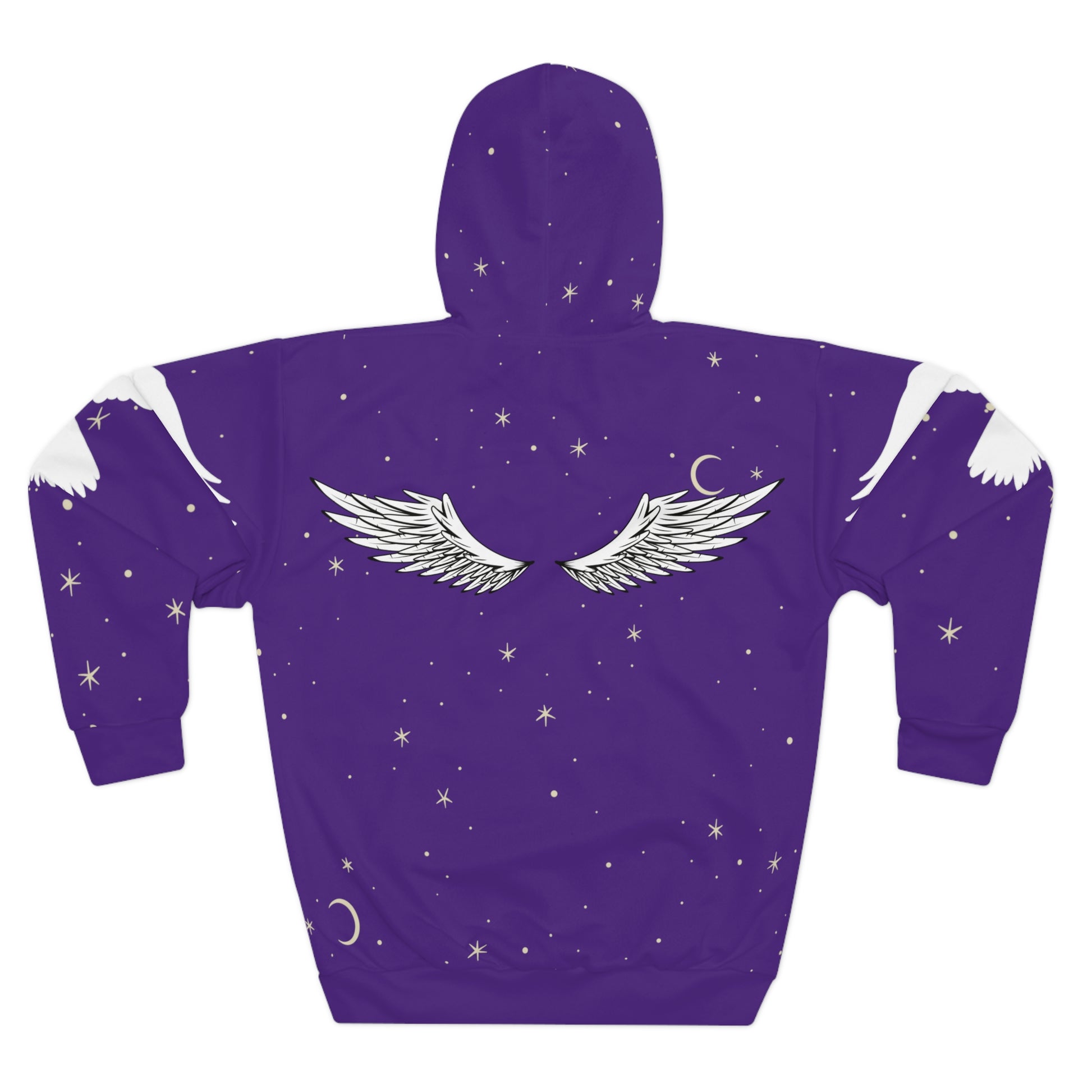 Raven skull with moon and stars Halloween Pullover Hoodie