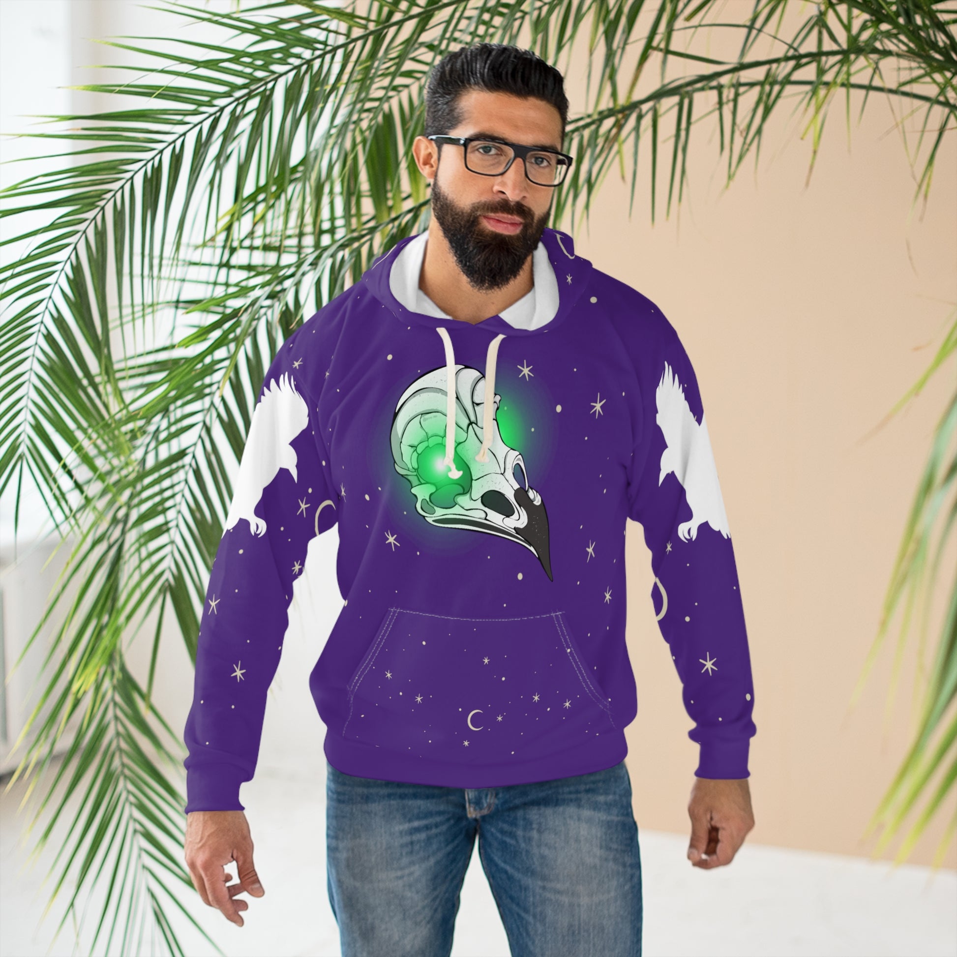 Raven skull with moon and stars Halloween Pullover Hoodie