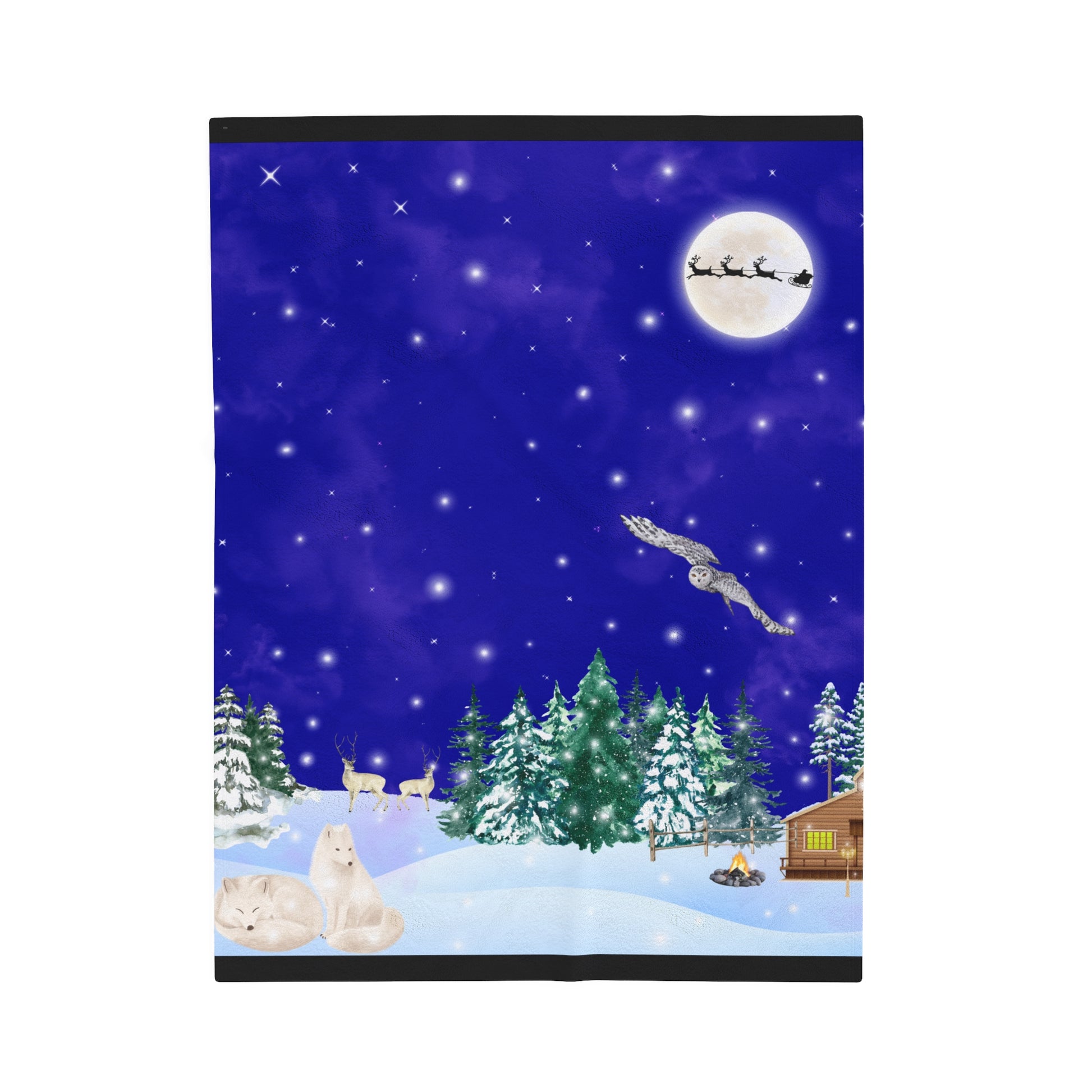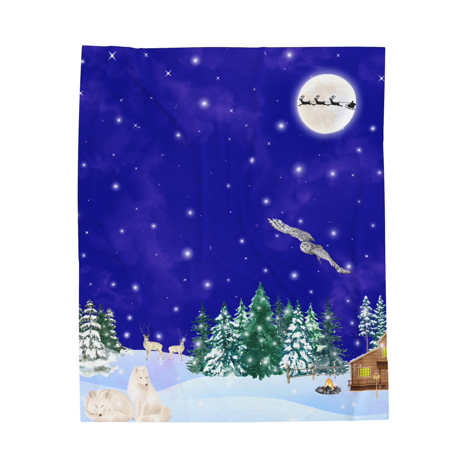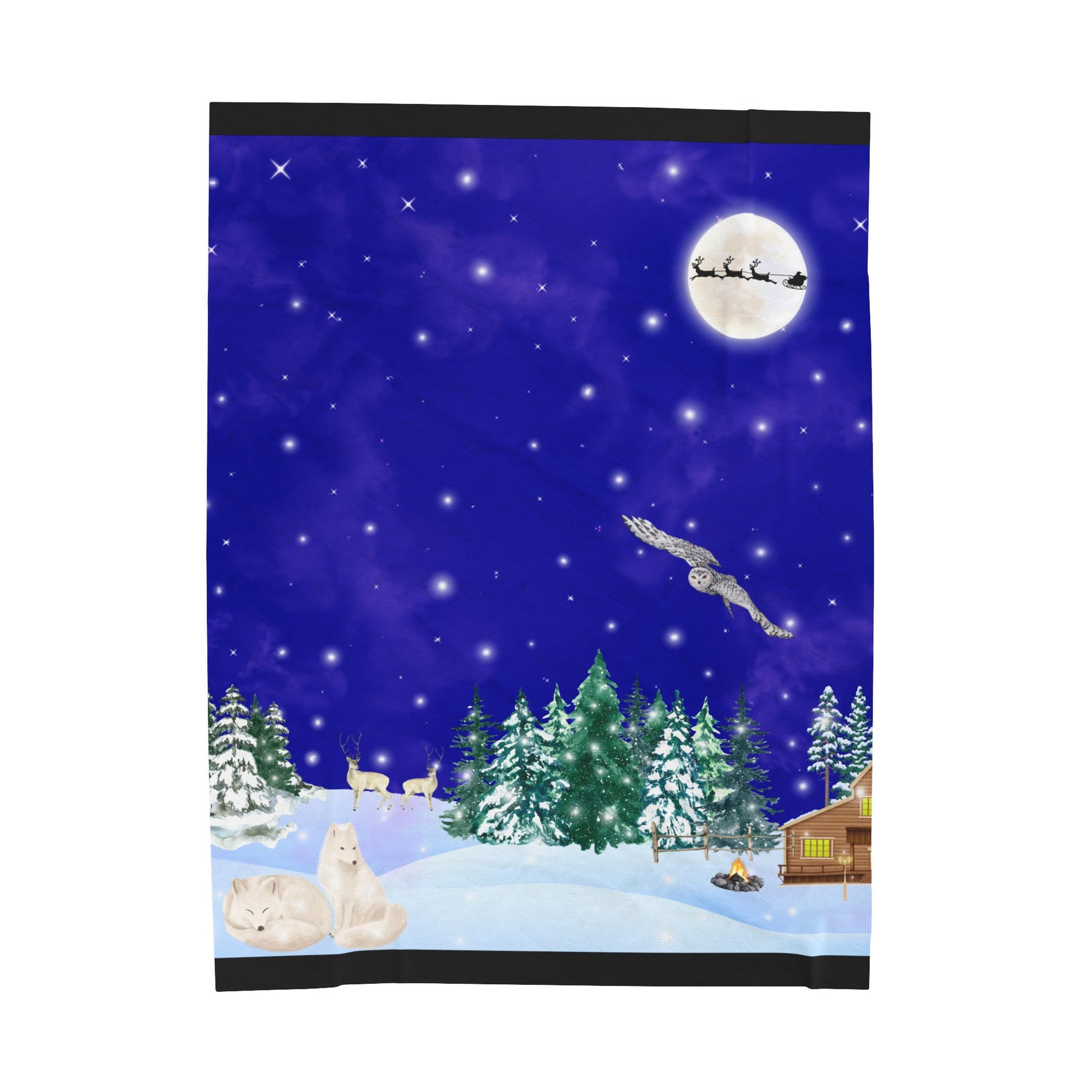 Snowy Christmas Night Velveteen Plush Blanket