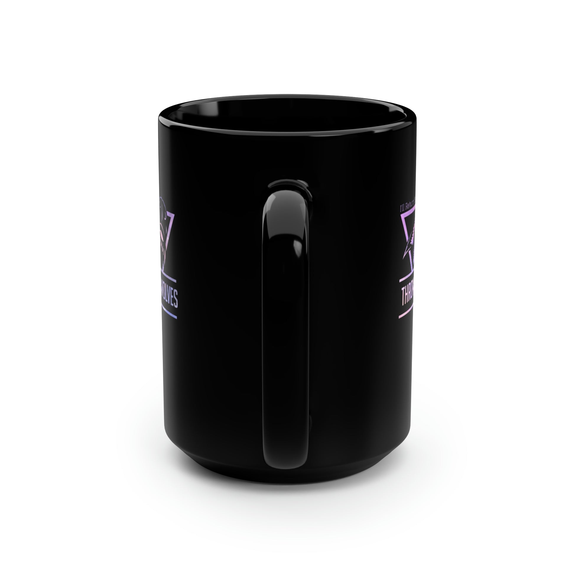 These black mugs come in one size – 15oz (0.44l) – plenty for morning caffeine boosts and hot cups of tea on a rainy day. They're easy to grip and feel sturdy thanks to the C-shaped handle. Printed on the black ceramic material in picture-perfect quality with a glossy finish. .: One size: 15oz (0.44 l) .: C-shaped easy-grip handle .: Black ceramic material with a glossy finish