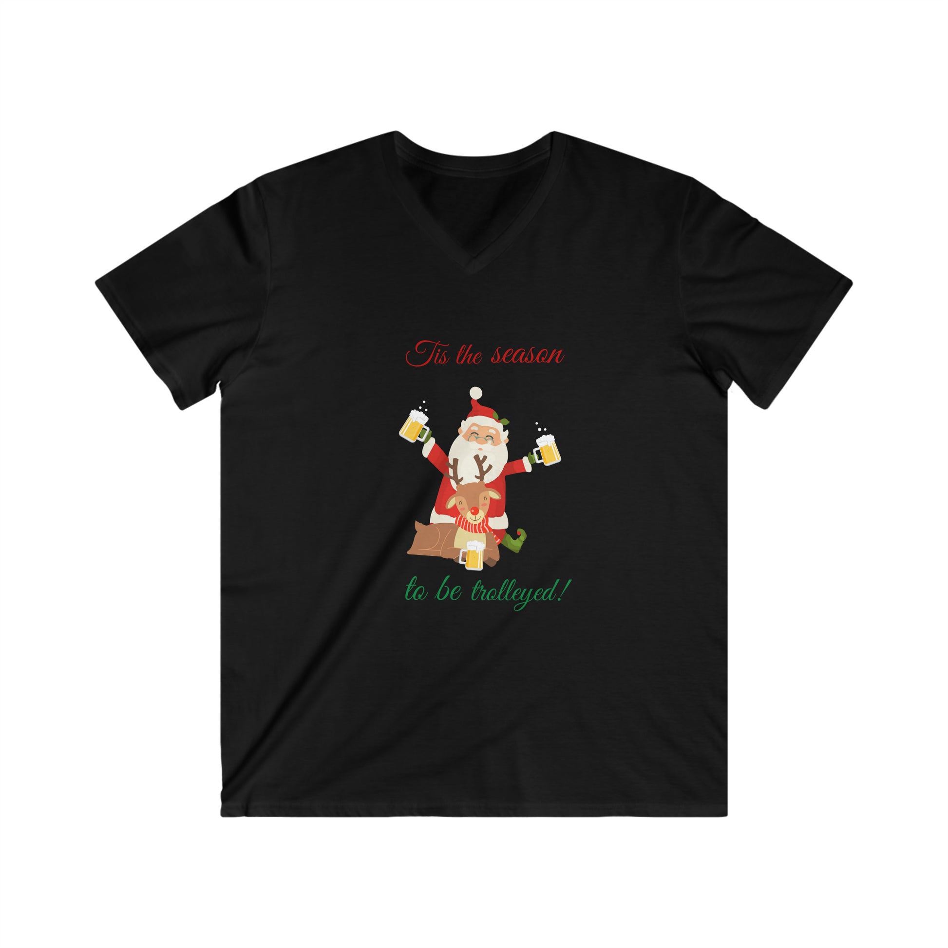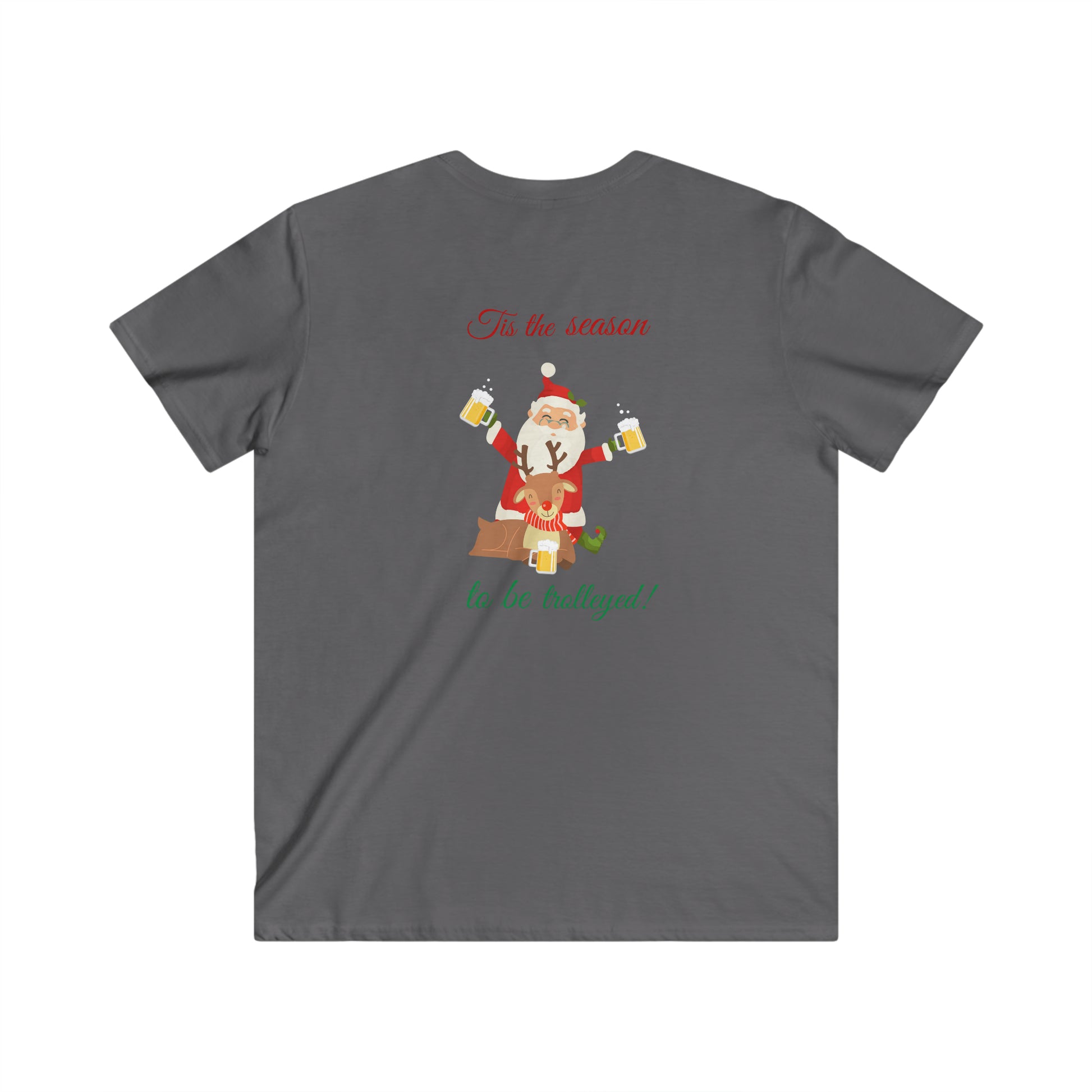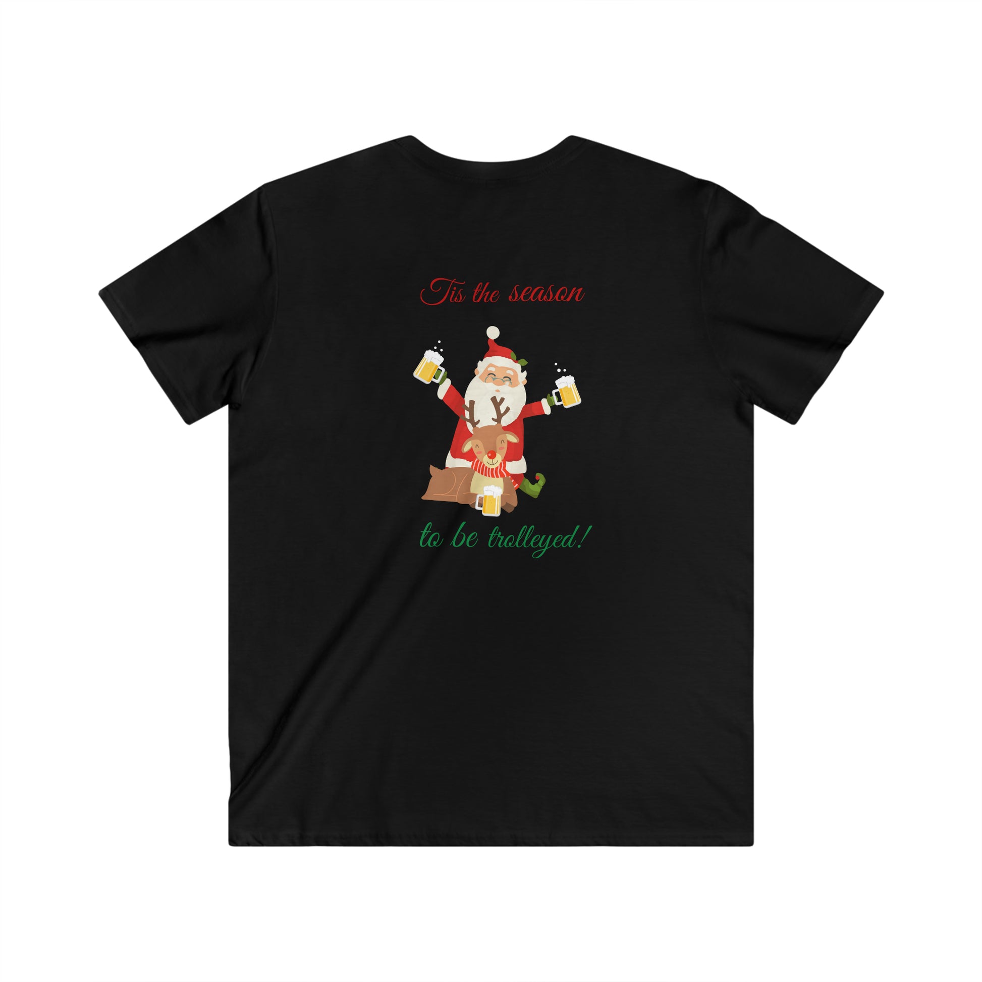 Tis the Season to be Trolleyed Men's Fitted V-Neck Short Sleeve Tee Christmas Top