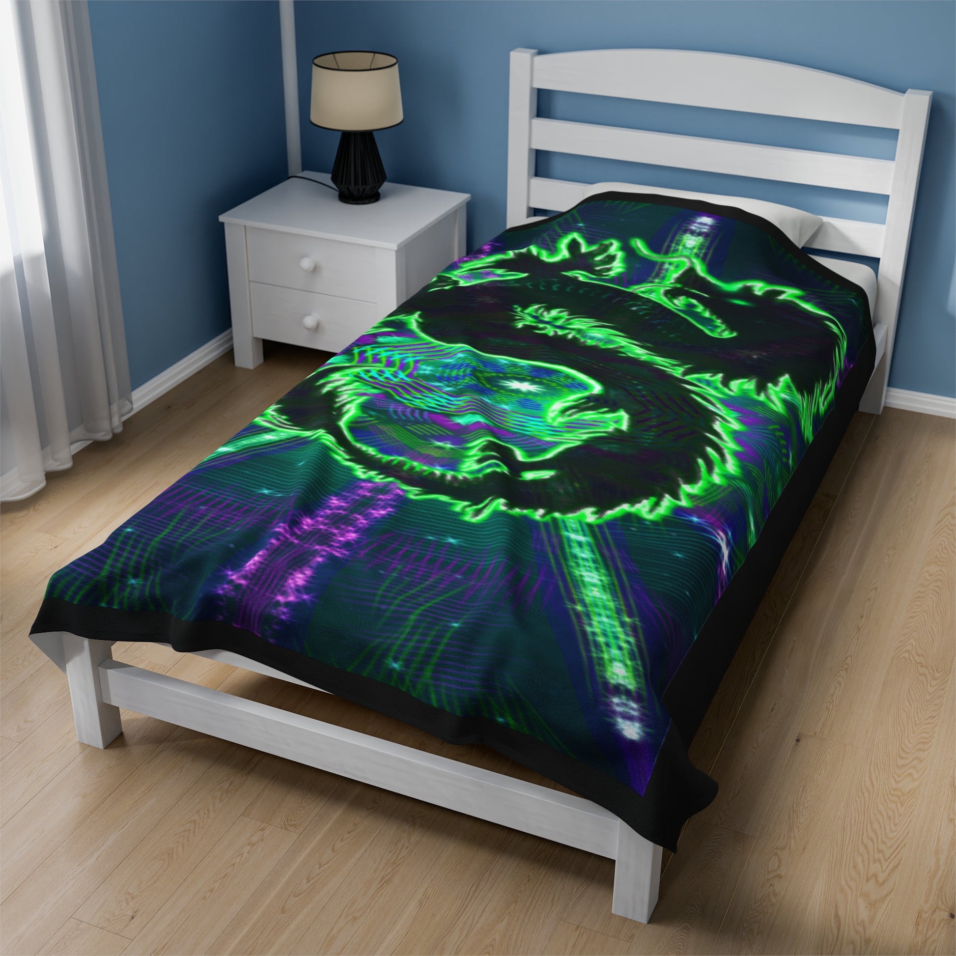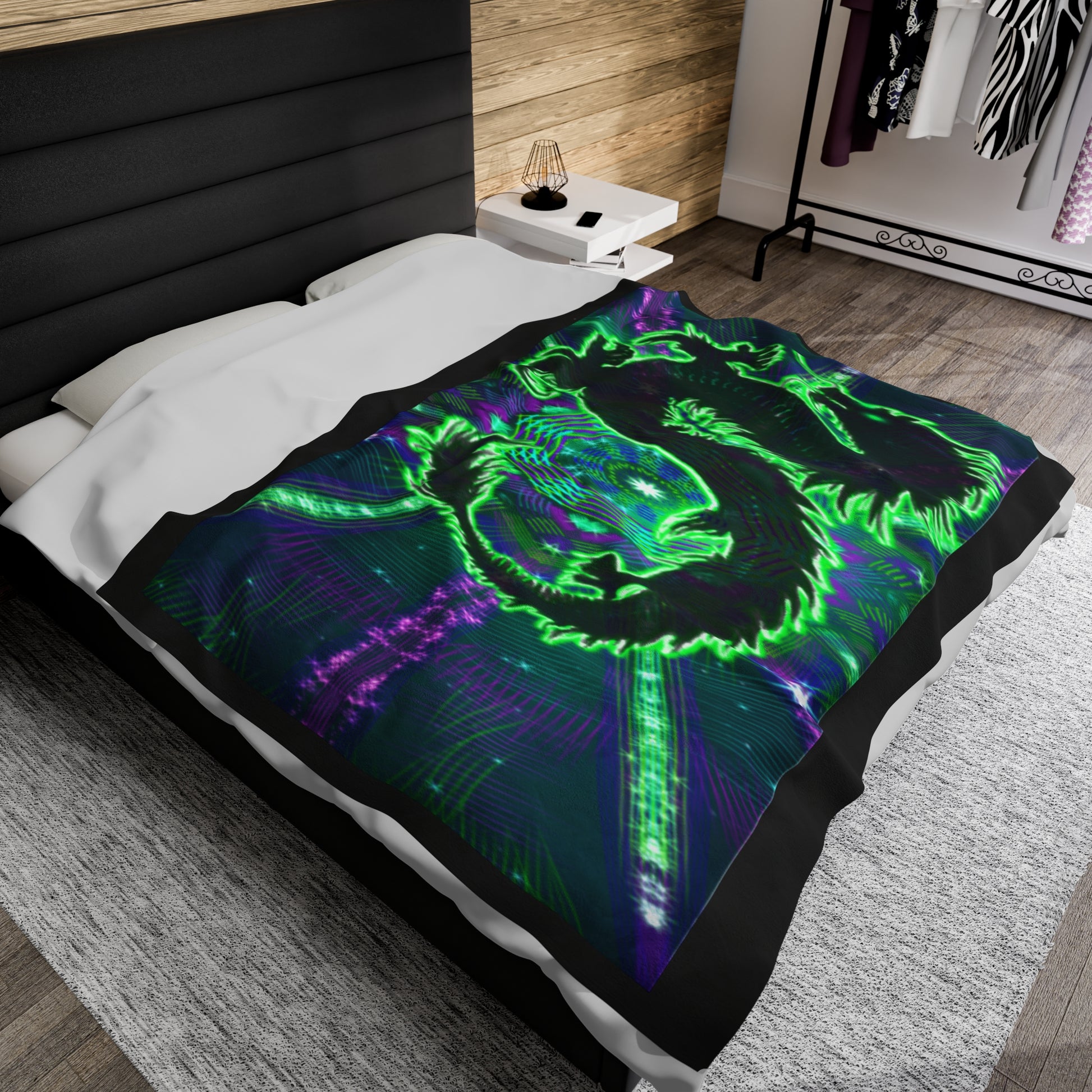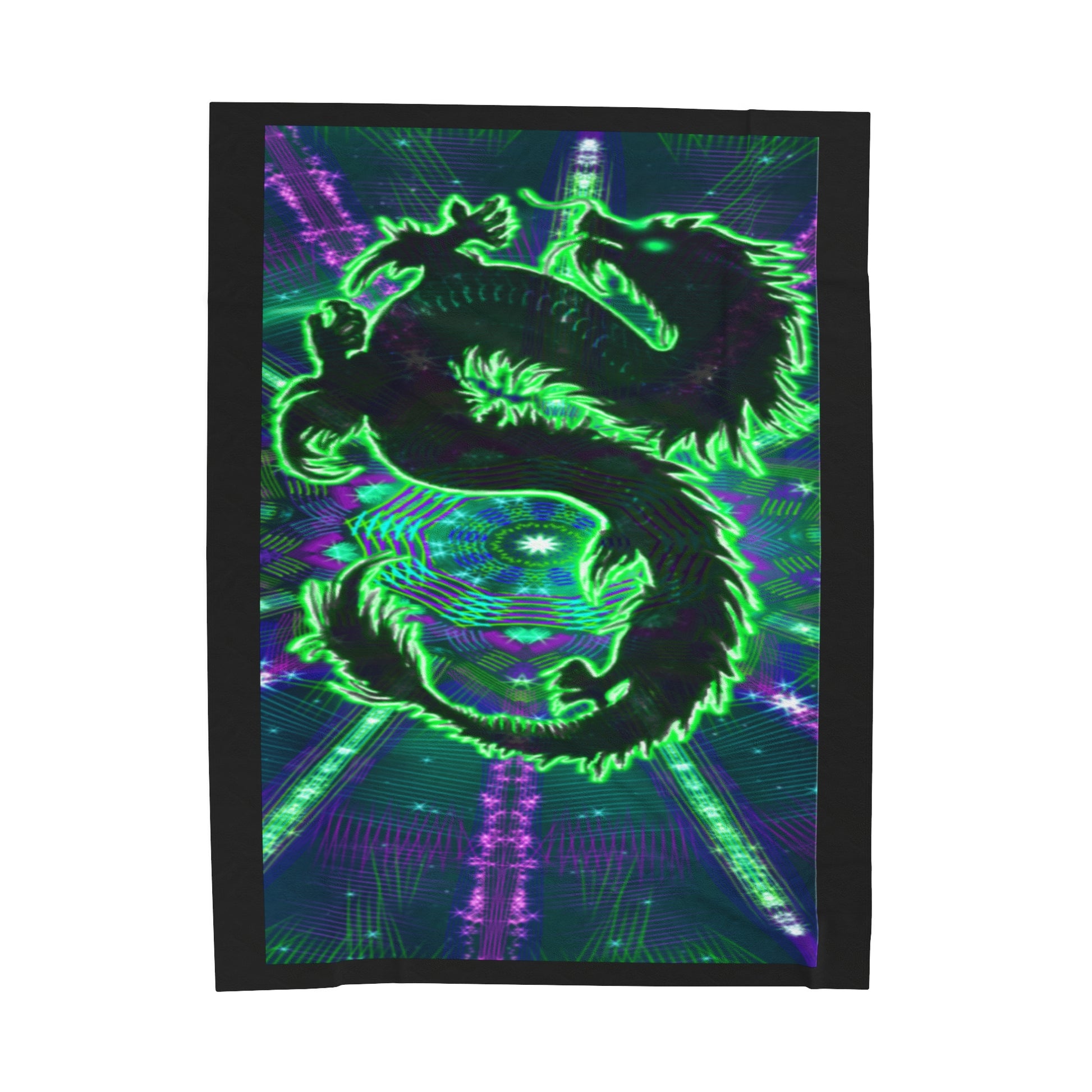 Violet and Emerald Giant Dragon Velveteen Plush Blanket