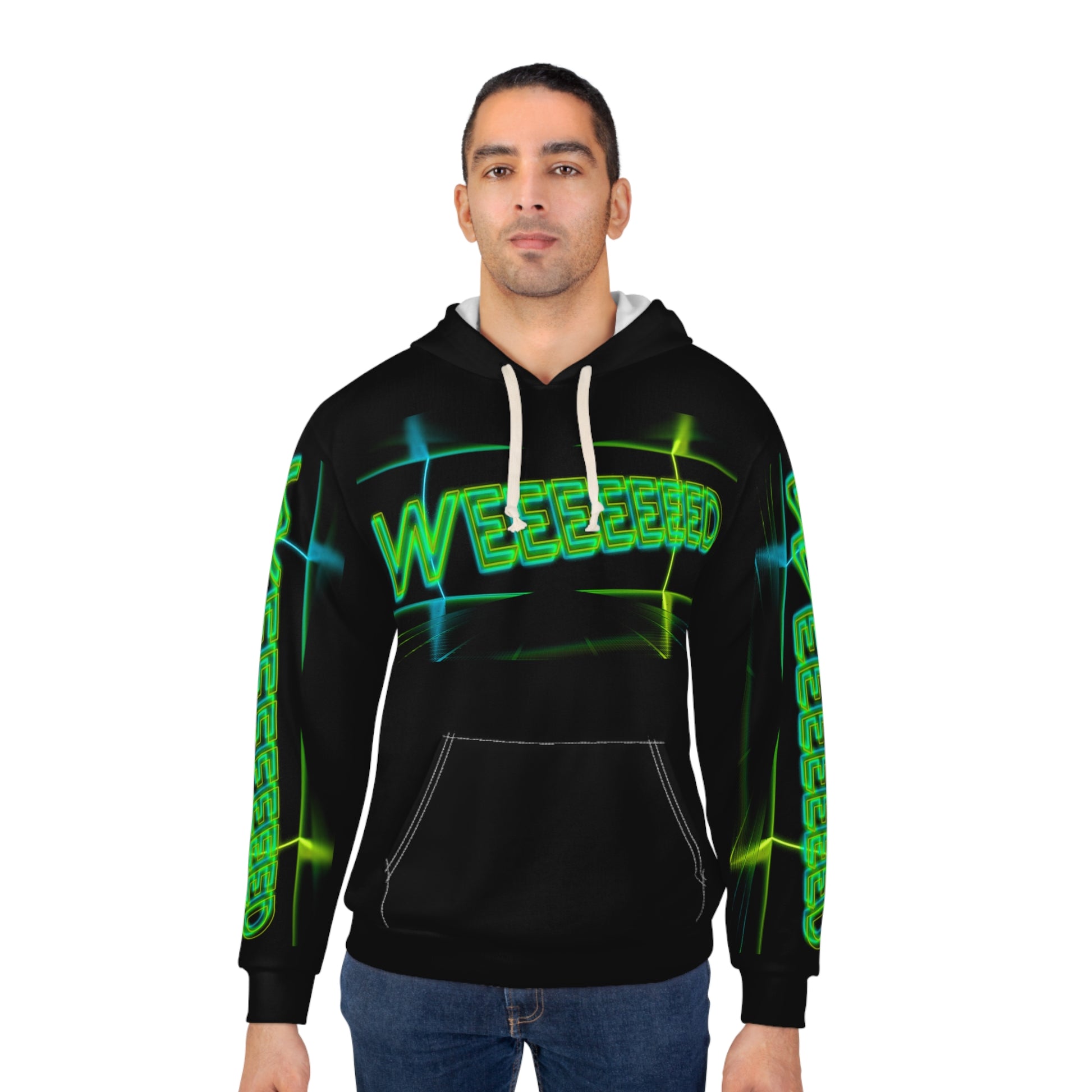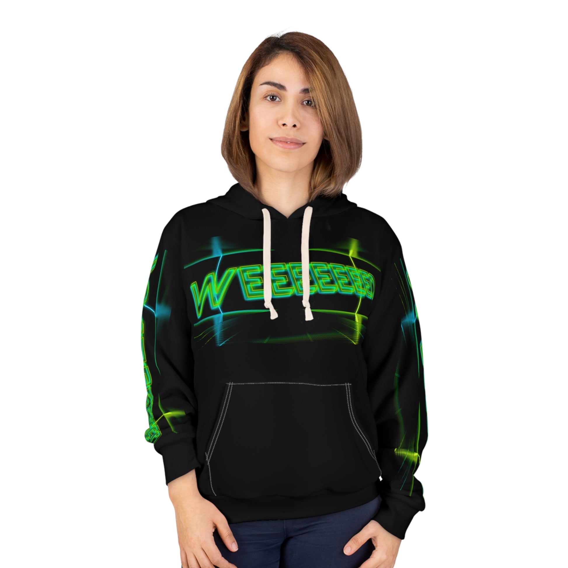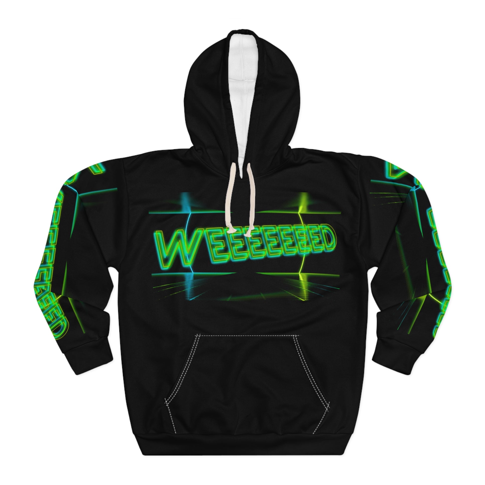 This Pullover Hoodie is made for warmth and comfort. Made to be easily customizable without white lines at the seams, this all-over print pullover hoodie is waiting for you to add a great design and it instantly becomes fashionable. It features a large front pocket, hood with drawstring, and is custom cut and sewn.