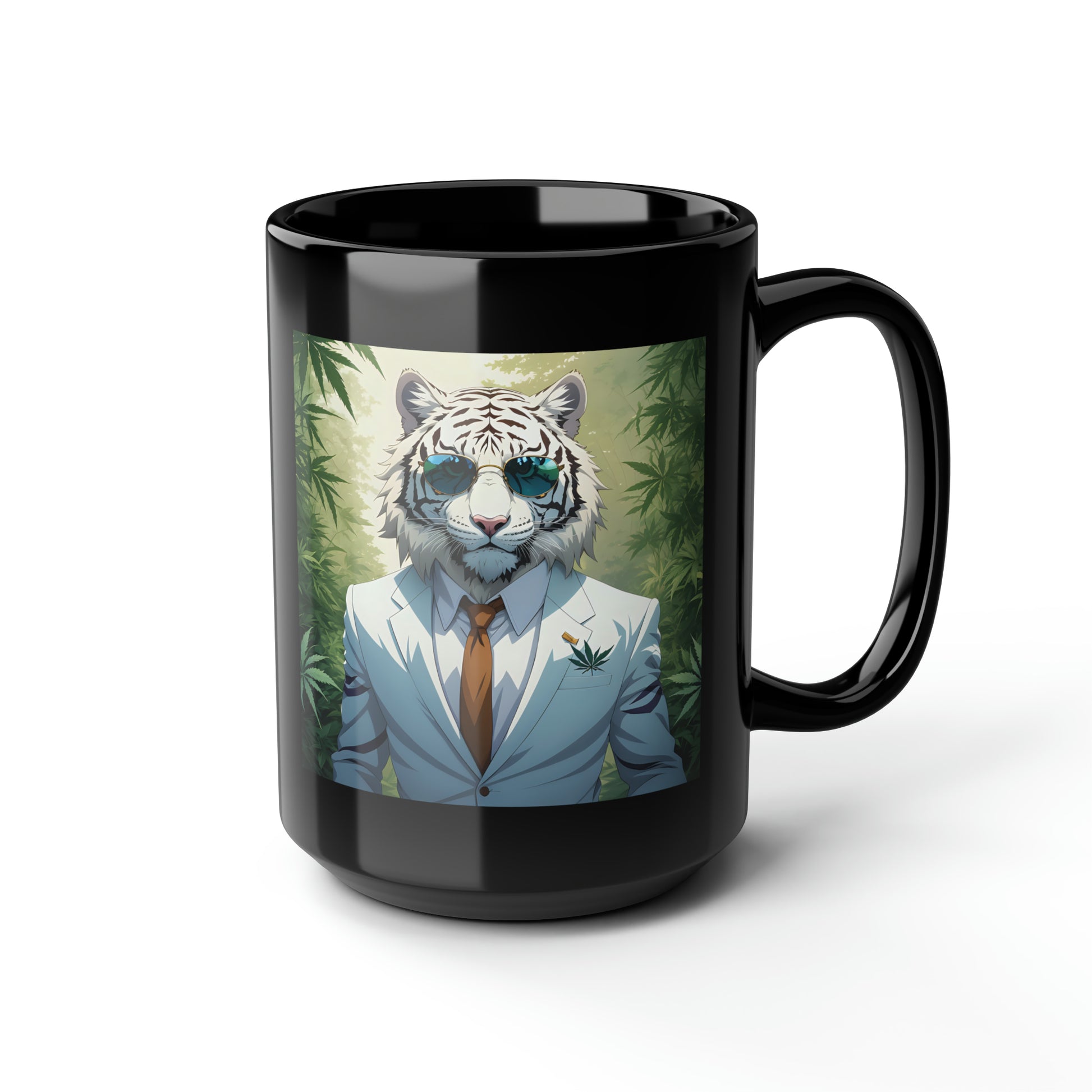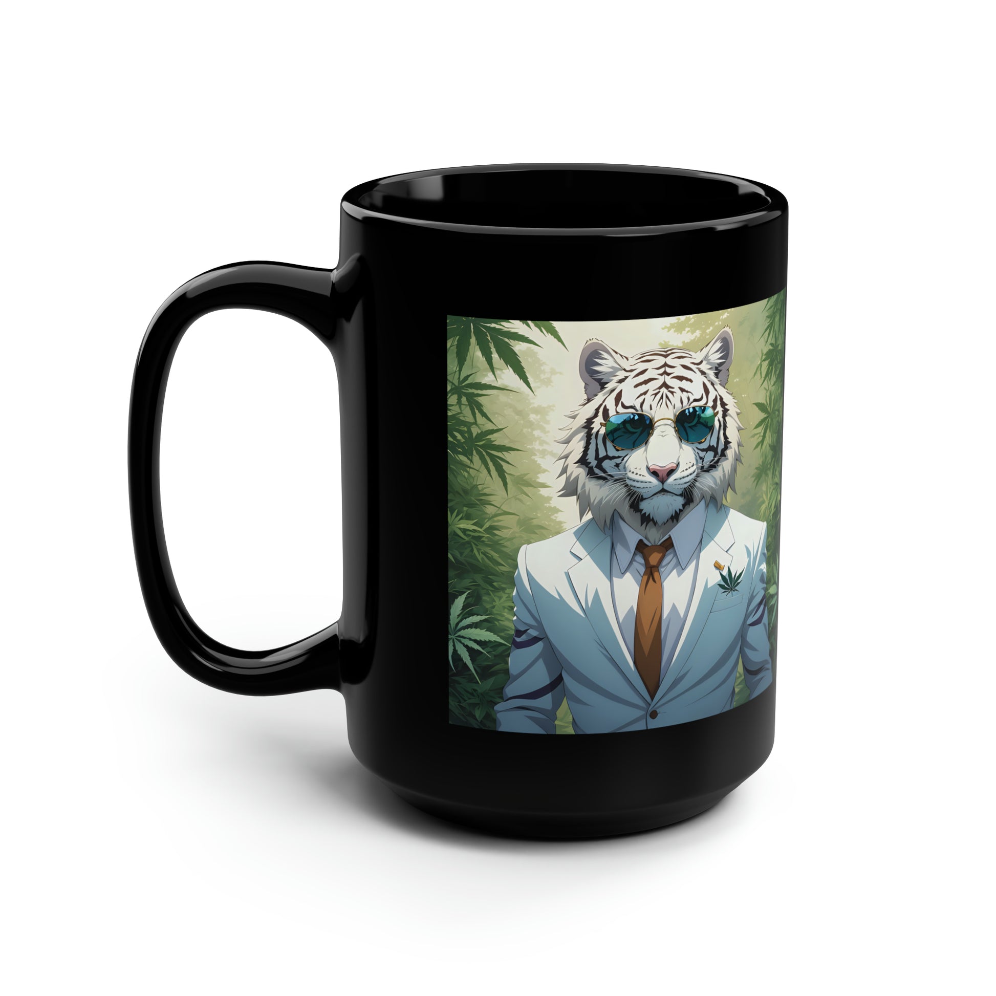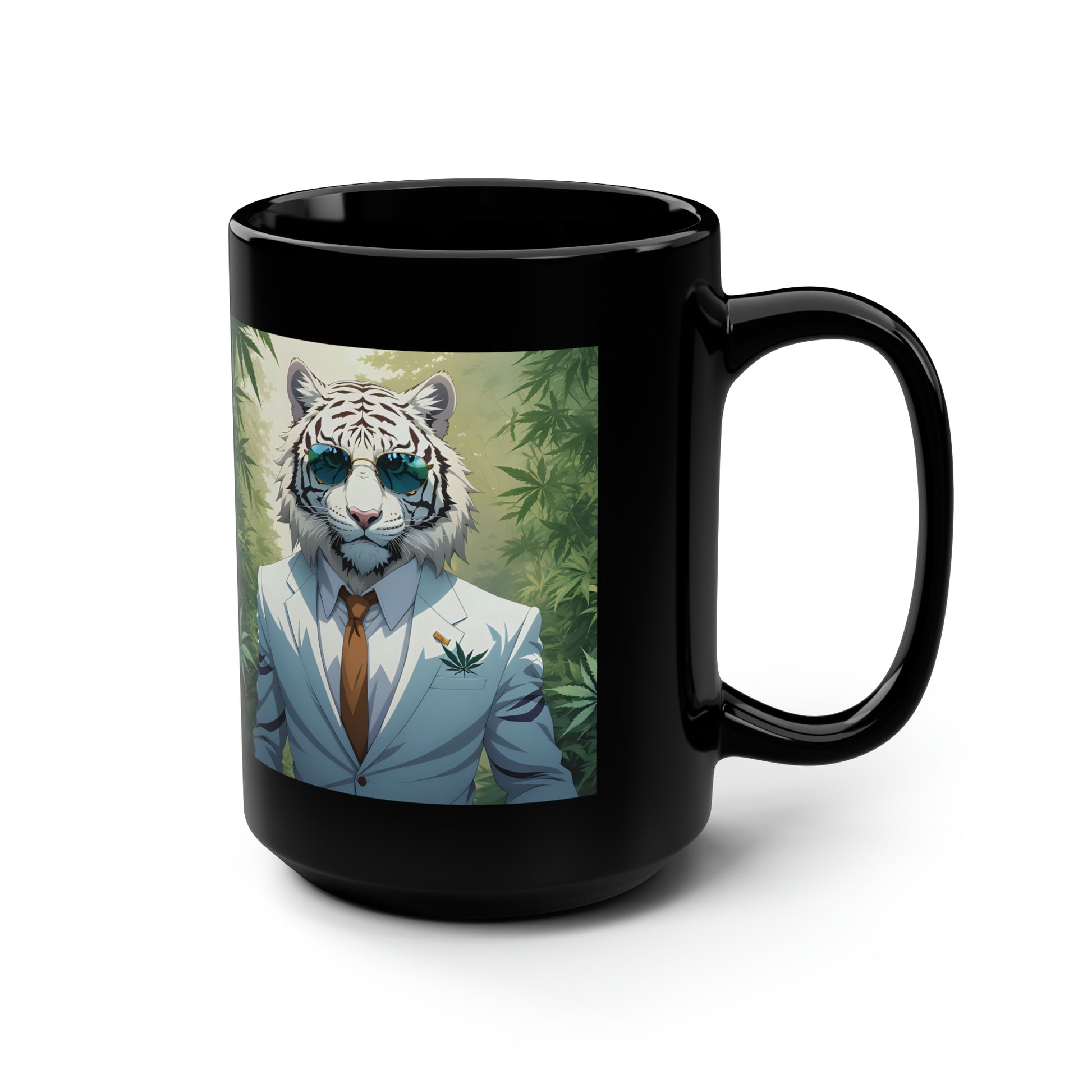 White Tiger, Black Mug, 15oz, 420 Gift