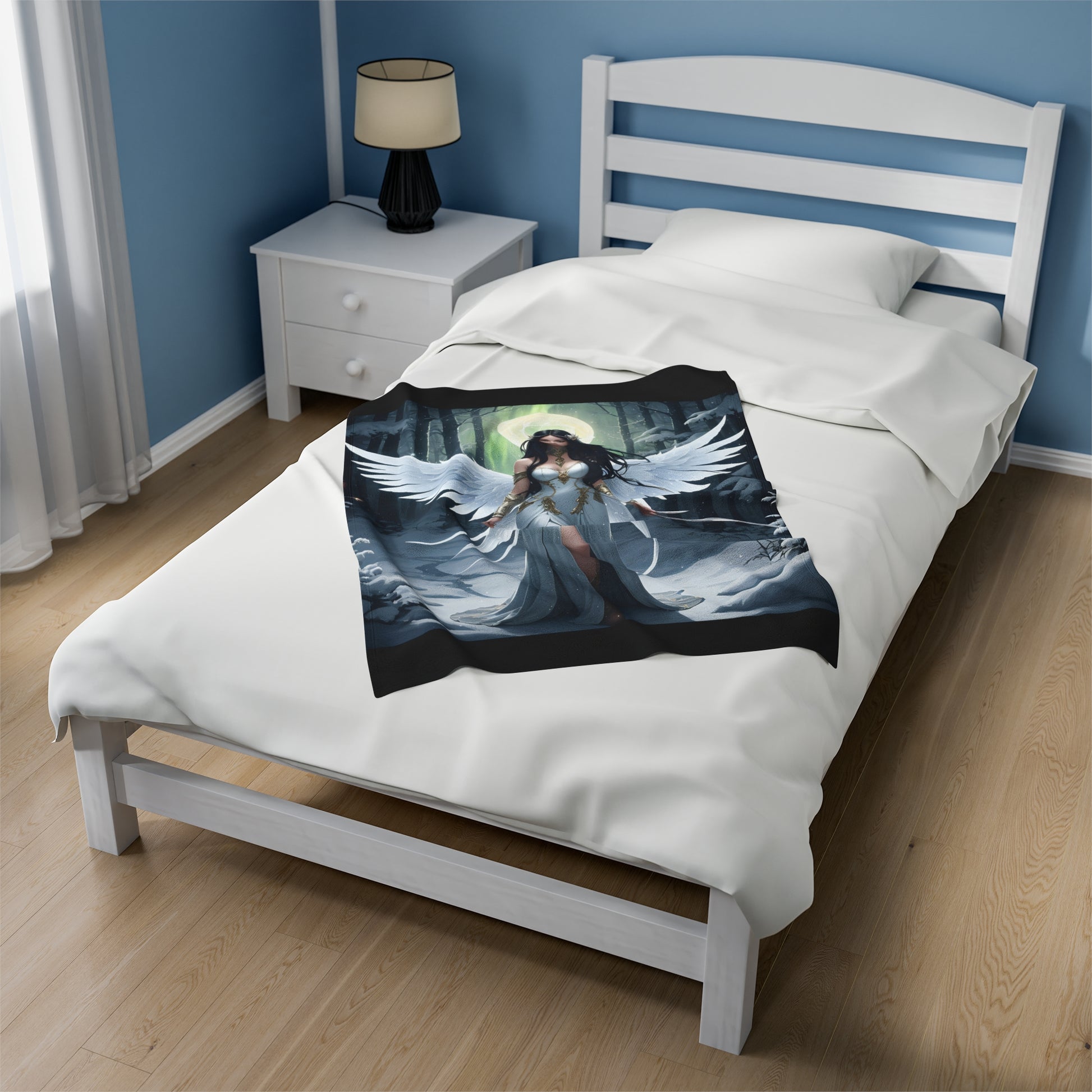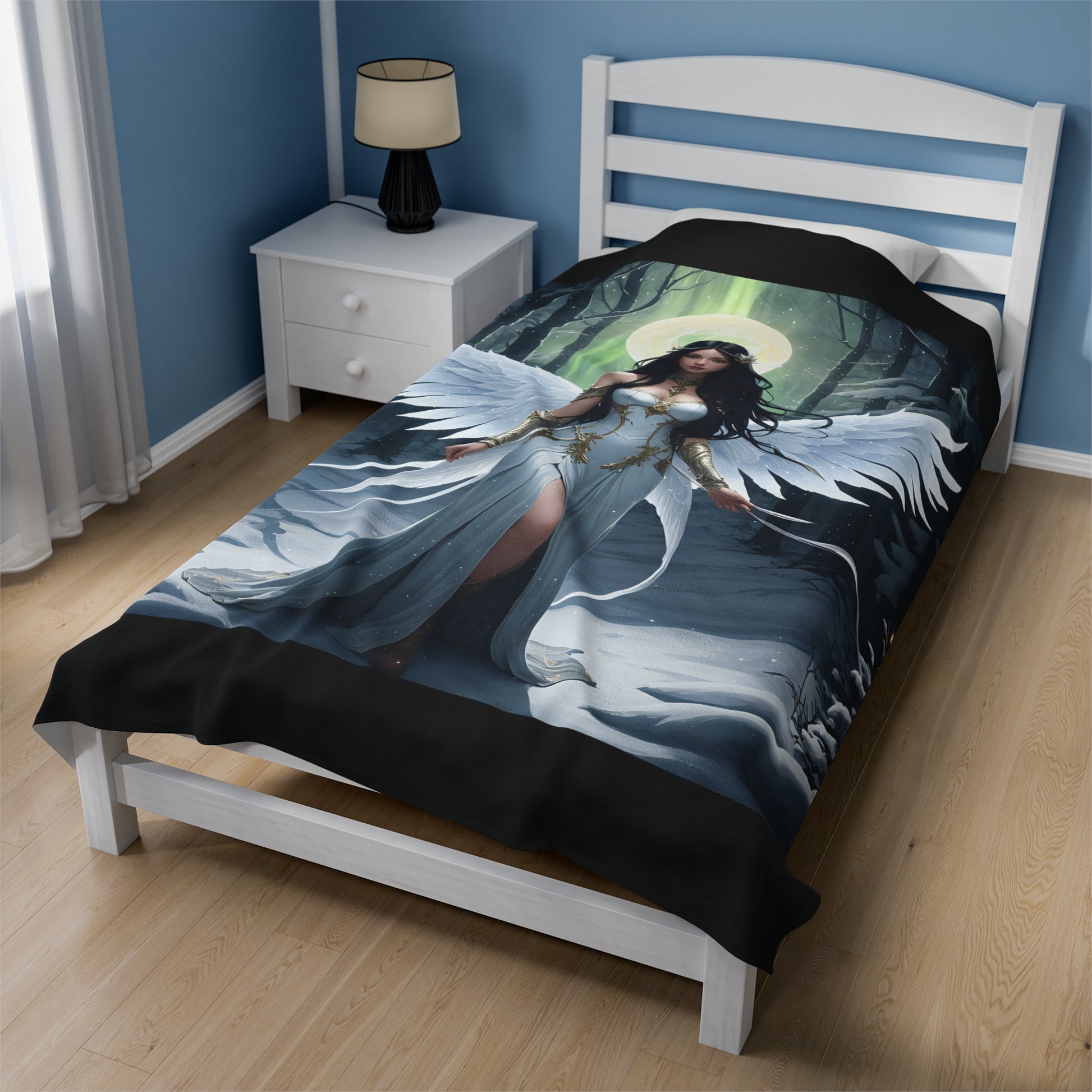 Create a cozy and warm atmosphere at home with this plush velveteen blanket. It is soft to touch and perfect for any home. Customize with an all-over print to add your personal touch or create a gift for your friends and family. Available in three sizes: 30x40", 50x60", 60x80". Due to variations in the production process, blankets may arrive up to 3" shorter than their listed size. .: 100% Polyester .: One sided print .: 3 sizes