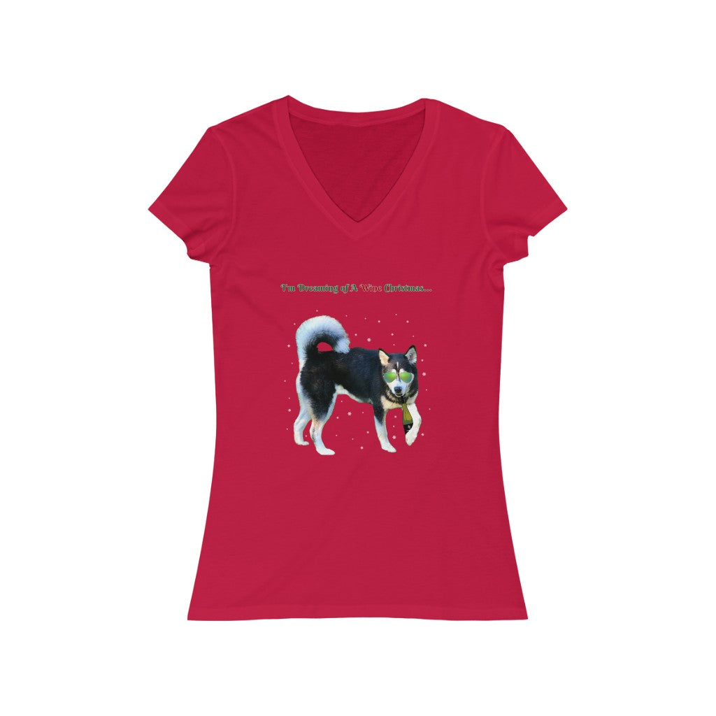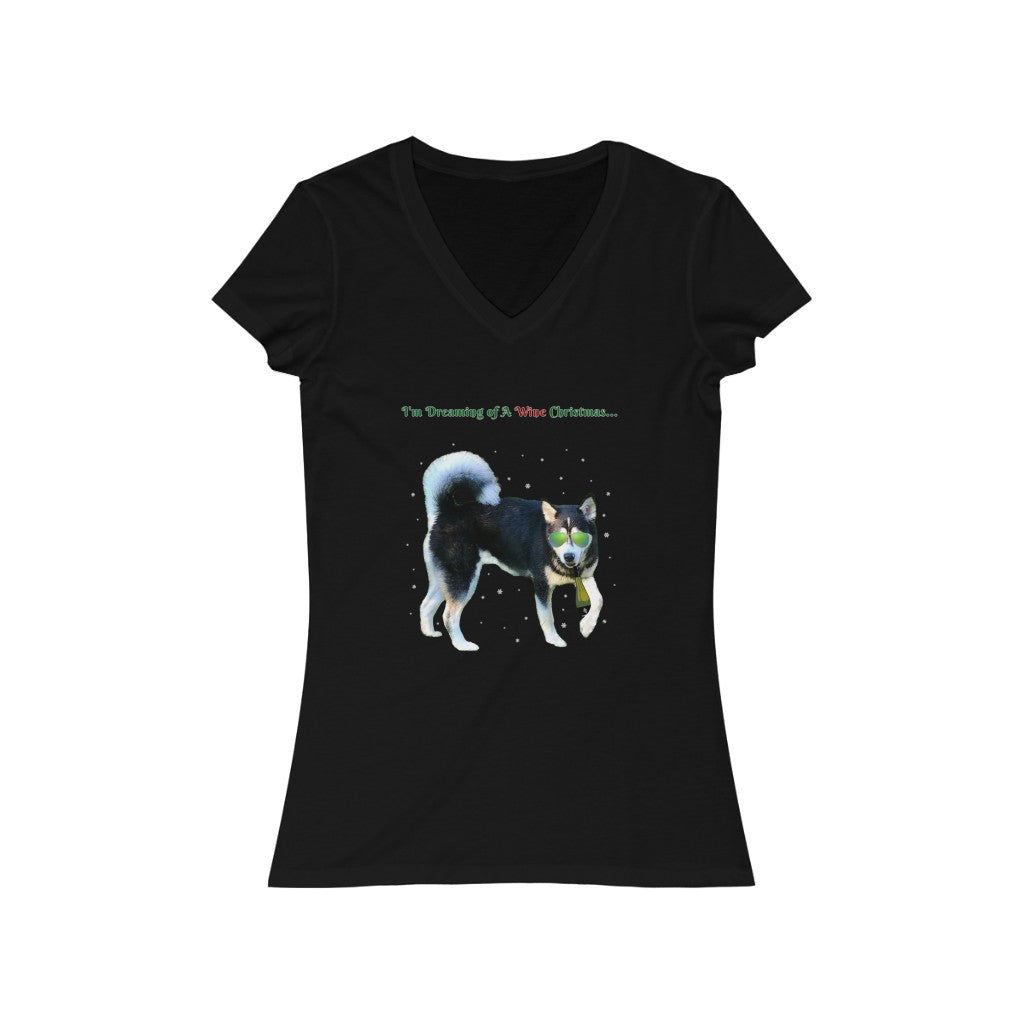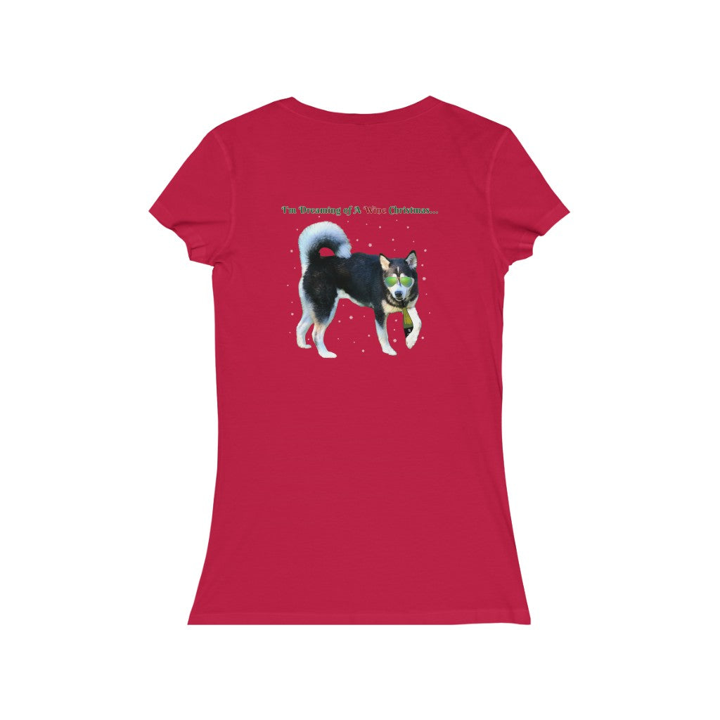 Women's Christmas Jersey "Wine Christmas" Short Sleeve V-Neck Tee